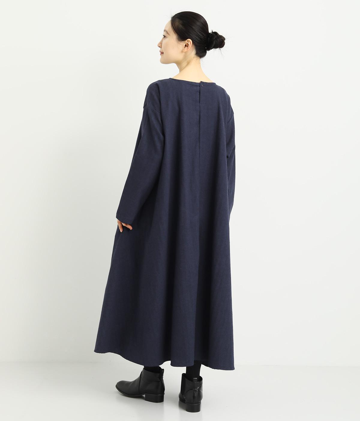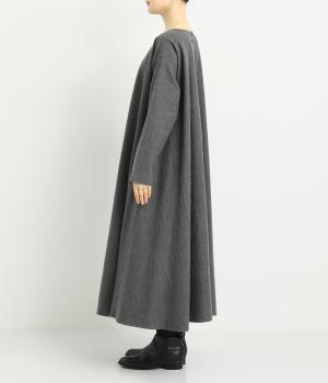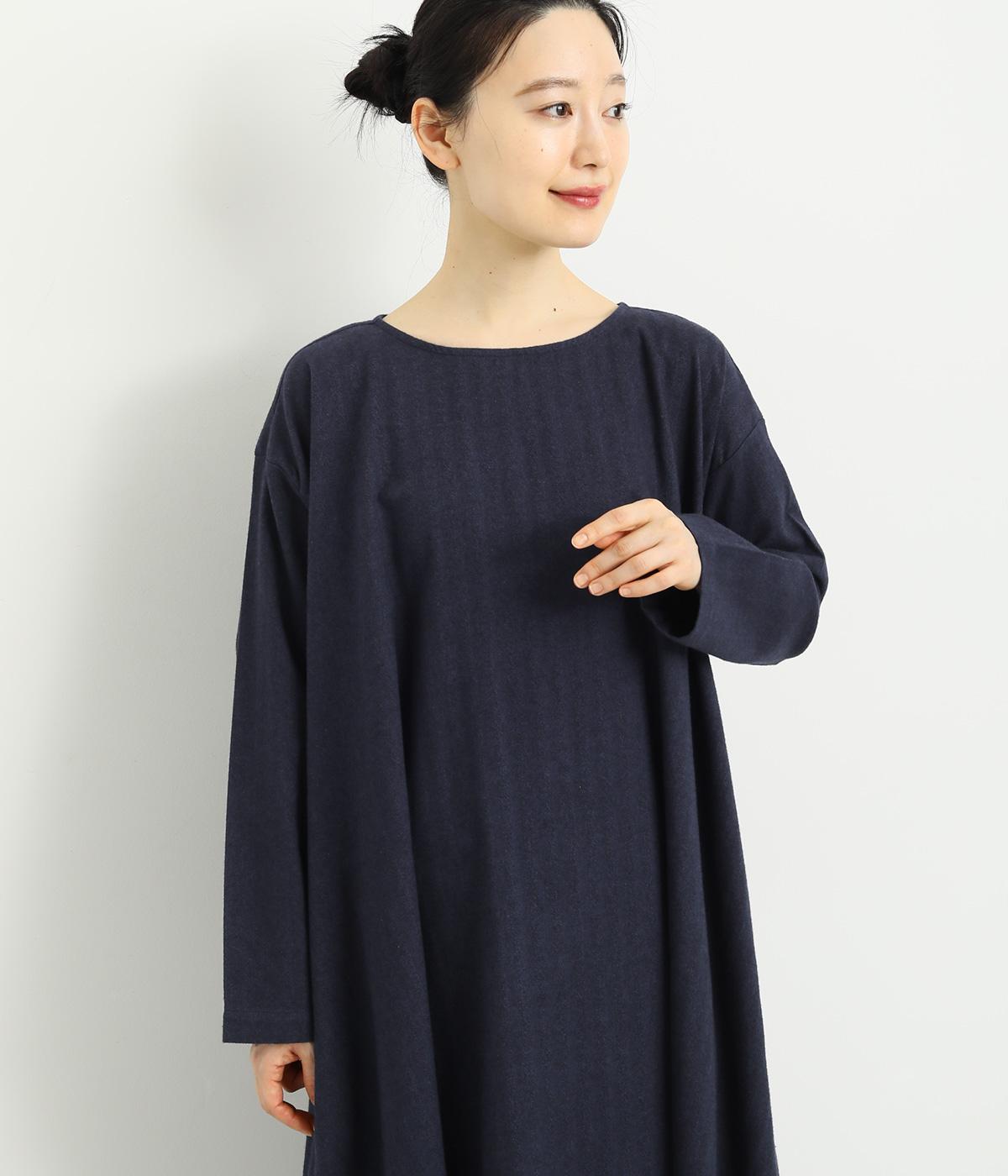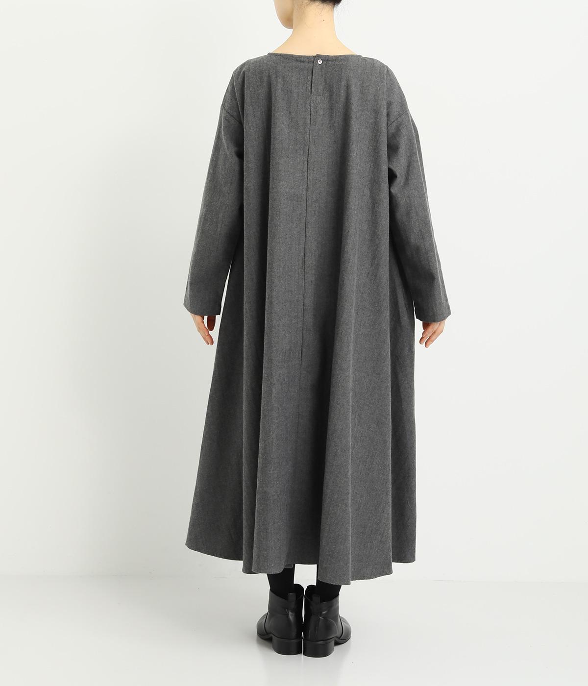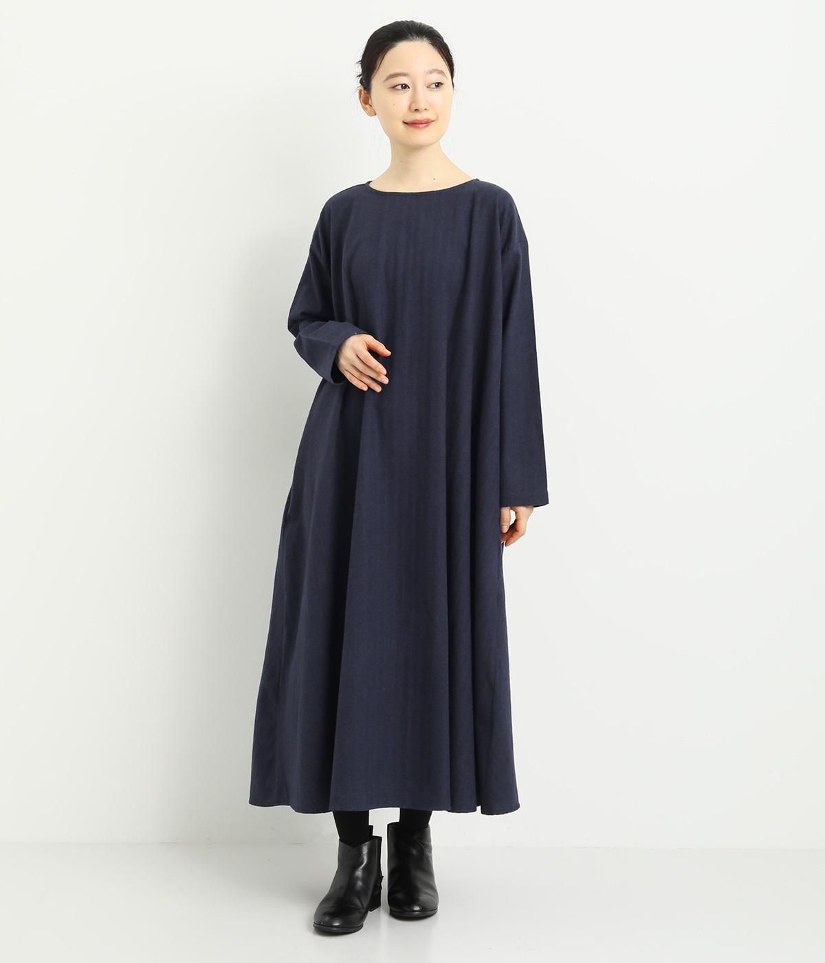シンプルながらも自然なドレープや立体感が存在感を放つAラインワンピース。生地感も相まってクラシカルな印象を与え、パールなど品のいいアクセサリーとも相性抜群。襟ぐりはすっきりとしているのでシャツ合わせも◎。