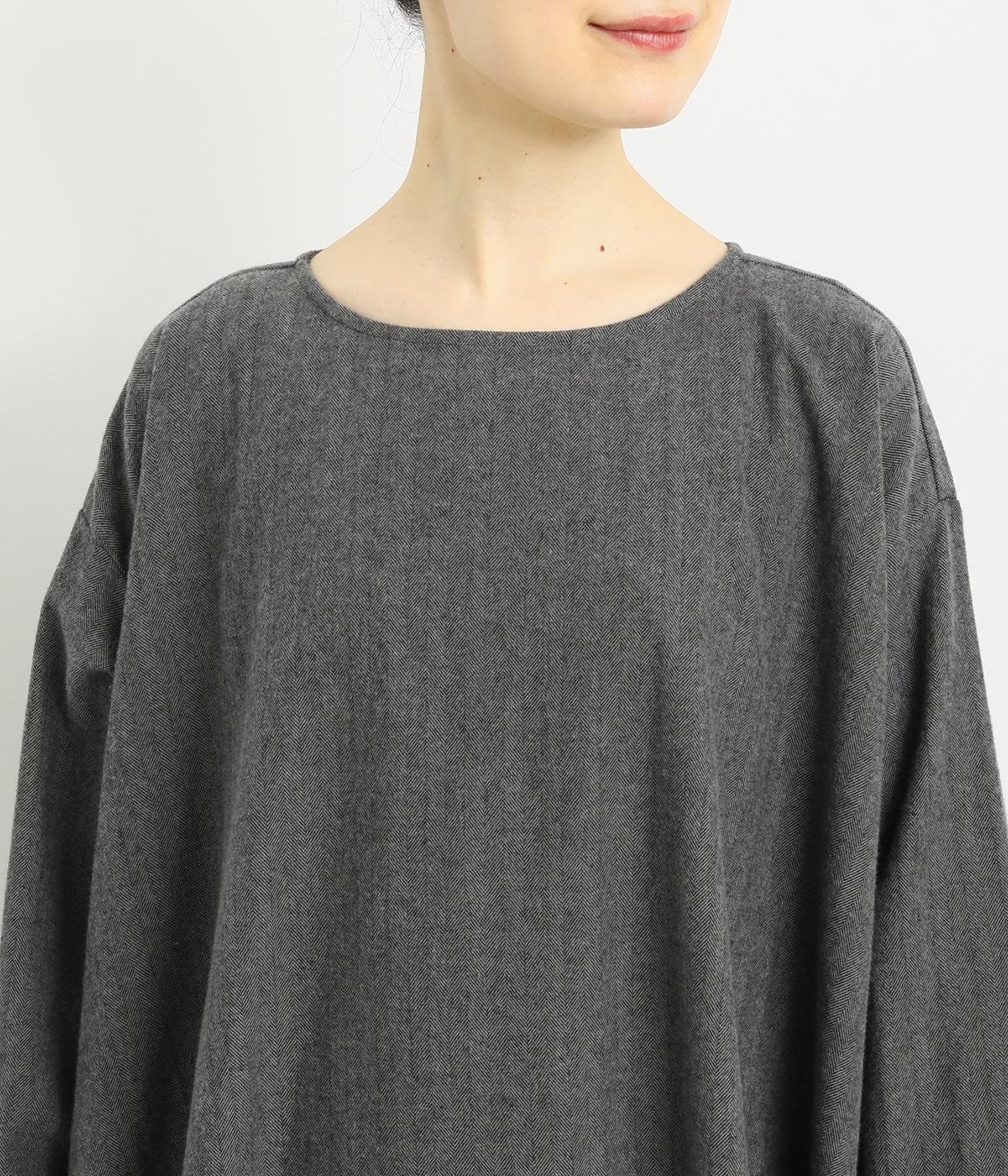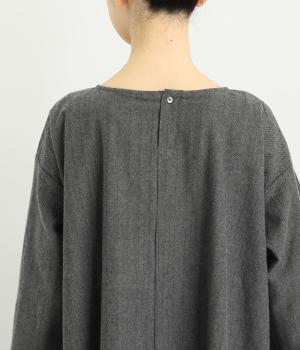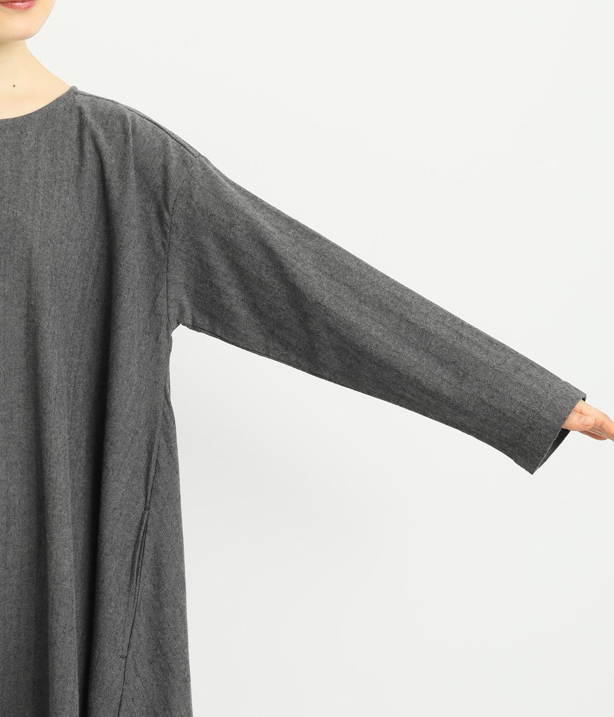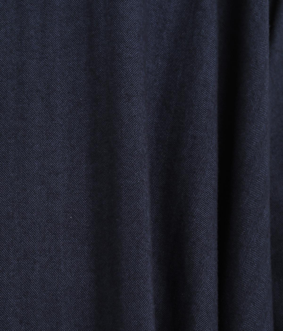 V字が連なるジグザグ模様が特徴的なヘリンボーンのコットン生地を使用しています。ほのかな起毛があたたかみややさしい風合いをプラス。ちょうどいい中厚手で着こなしやすい仕上がり。