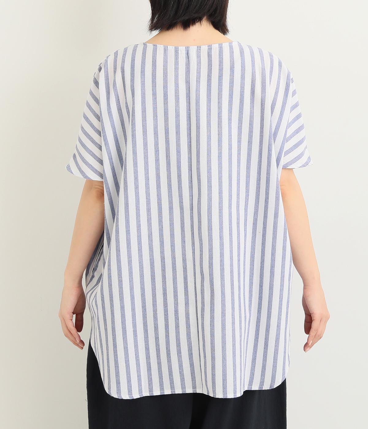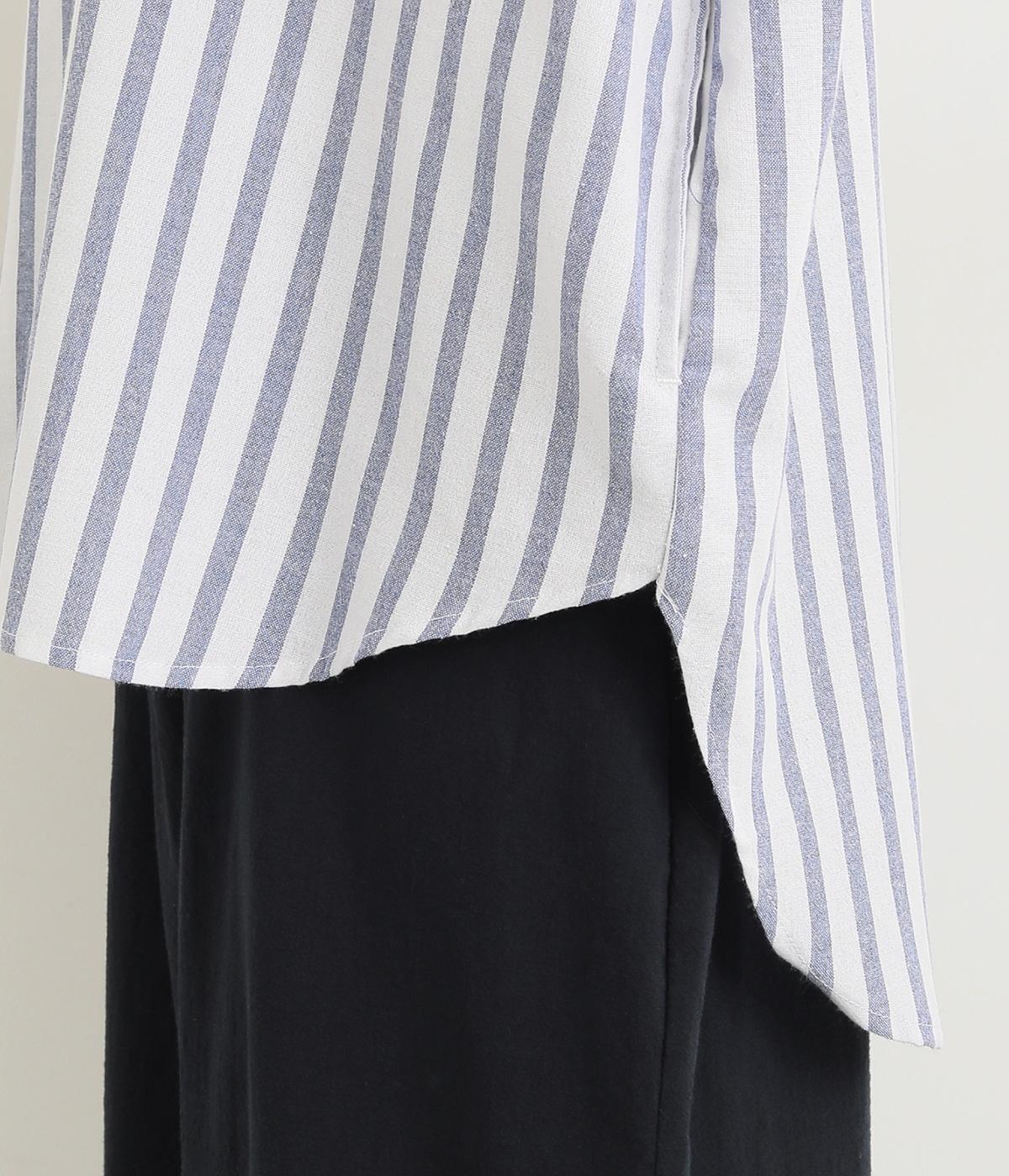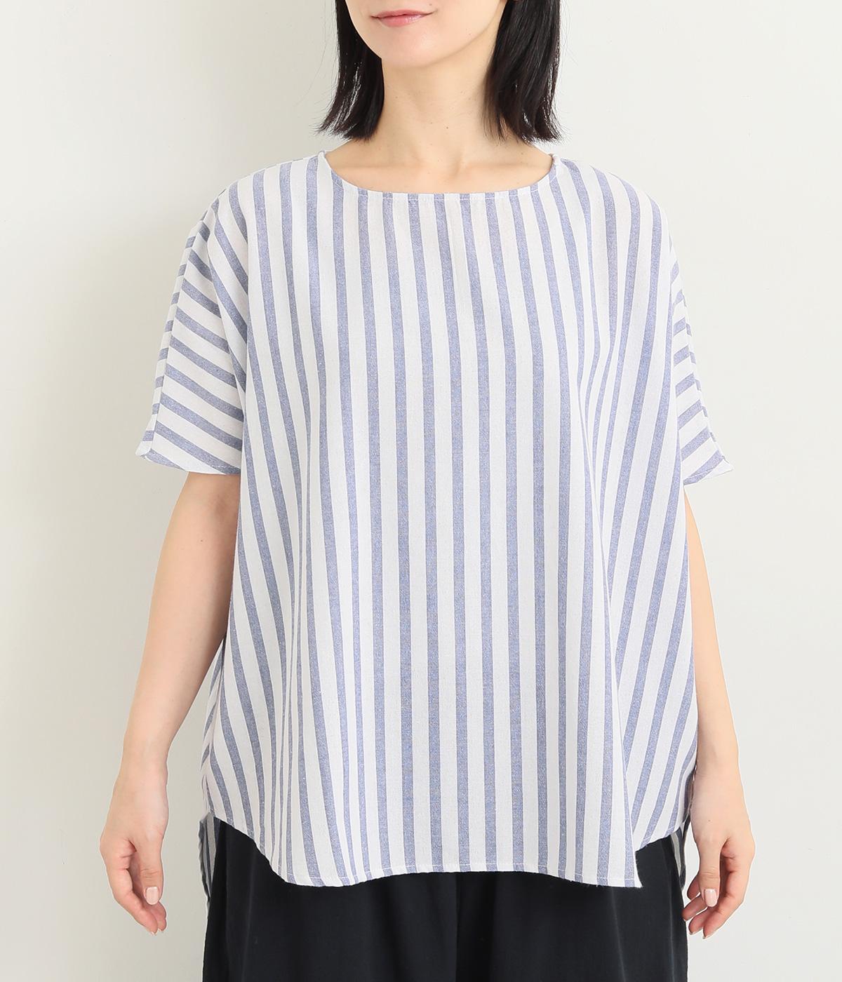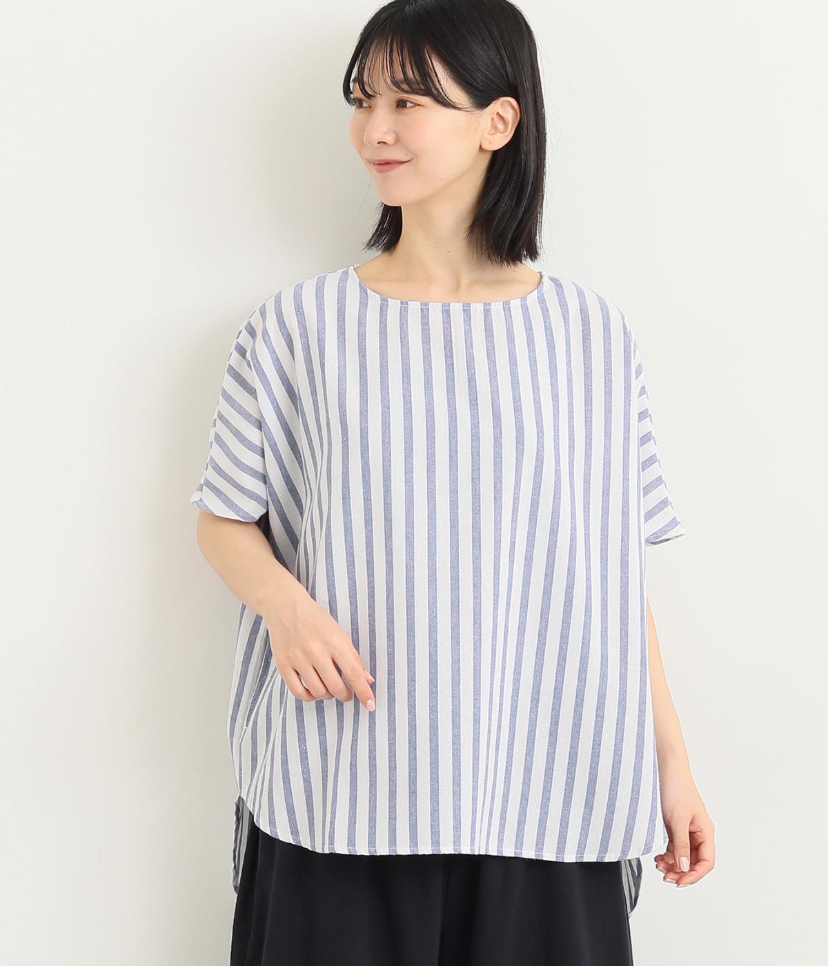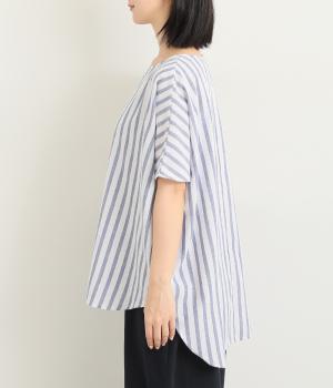 洗いざらしのようなドライな質感が心地よいコットンワッシャー生地をセレクトしました。褪せたようなストライプ柄がナチュラル&さわやかムードを盛り上げます。