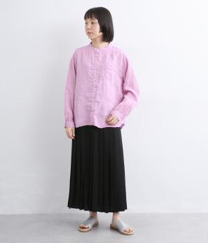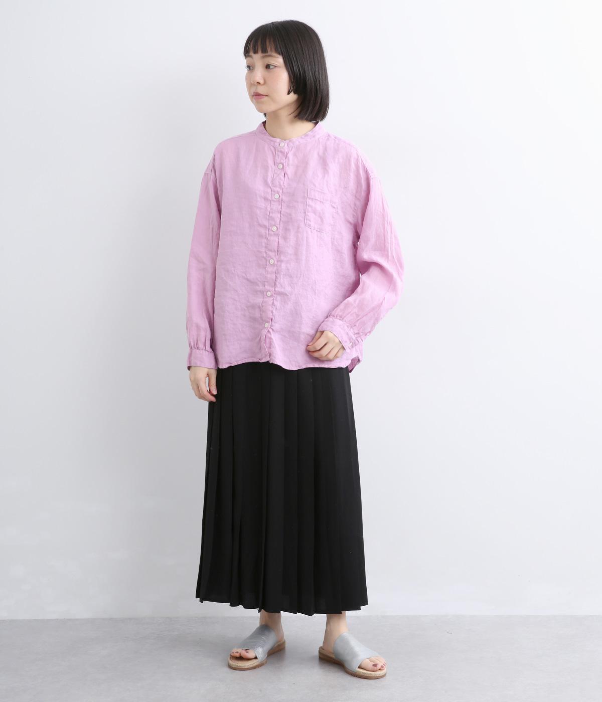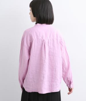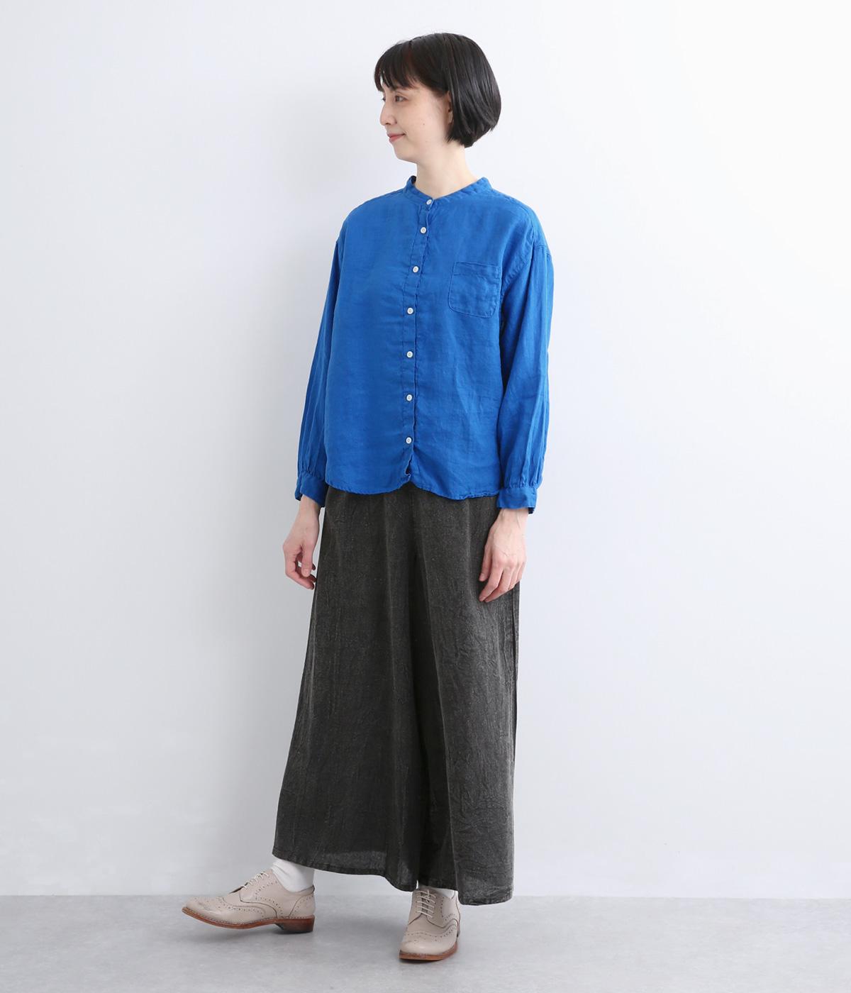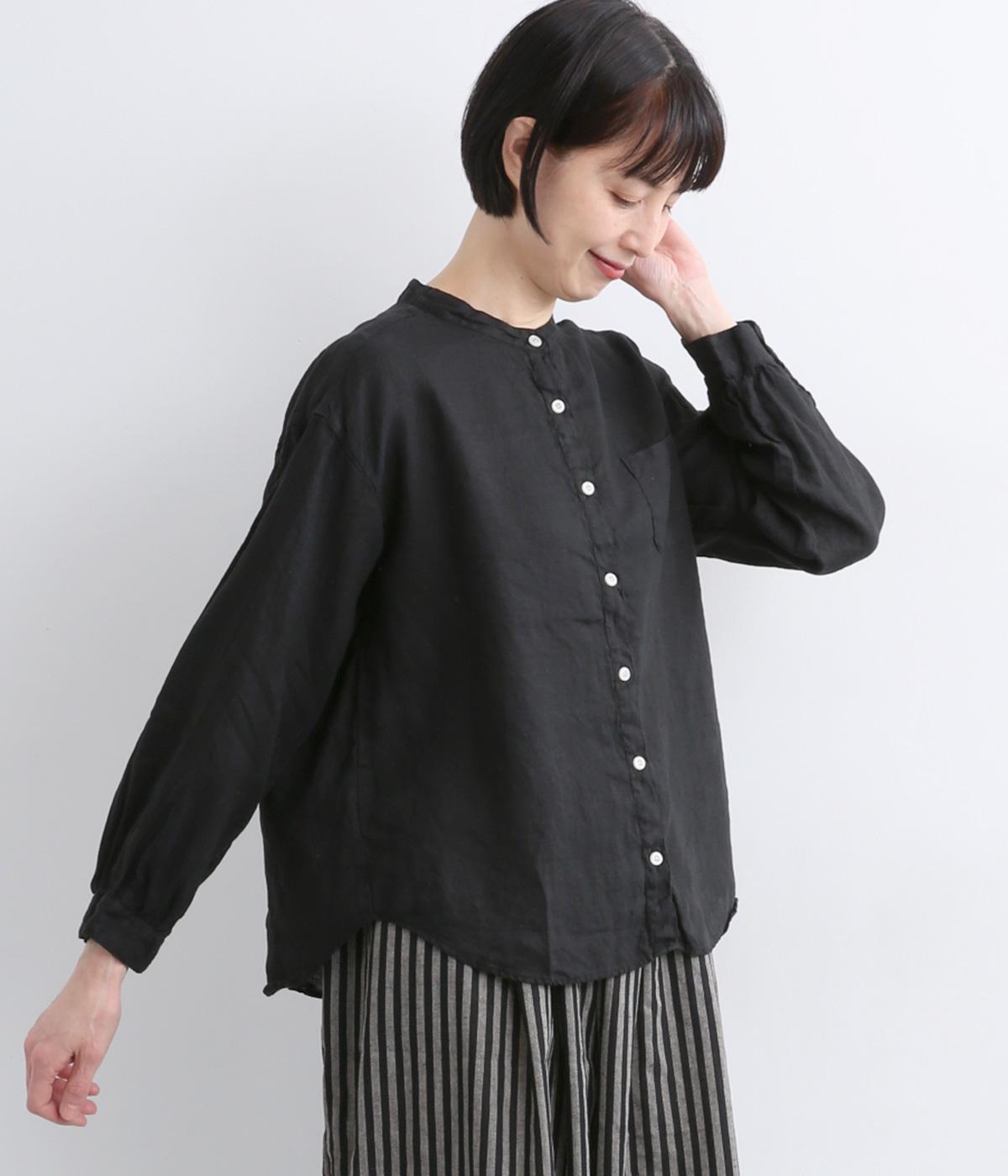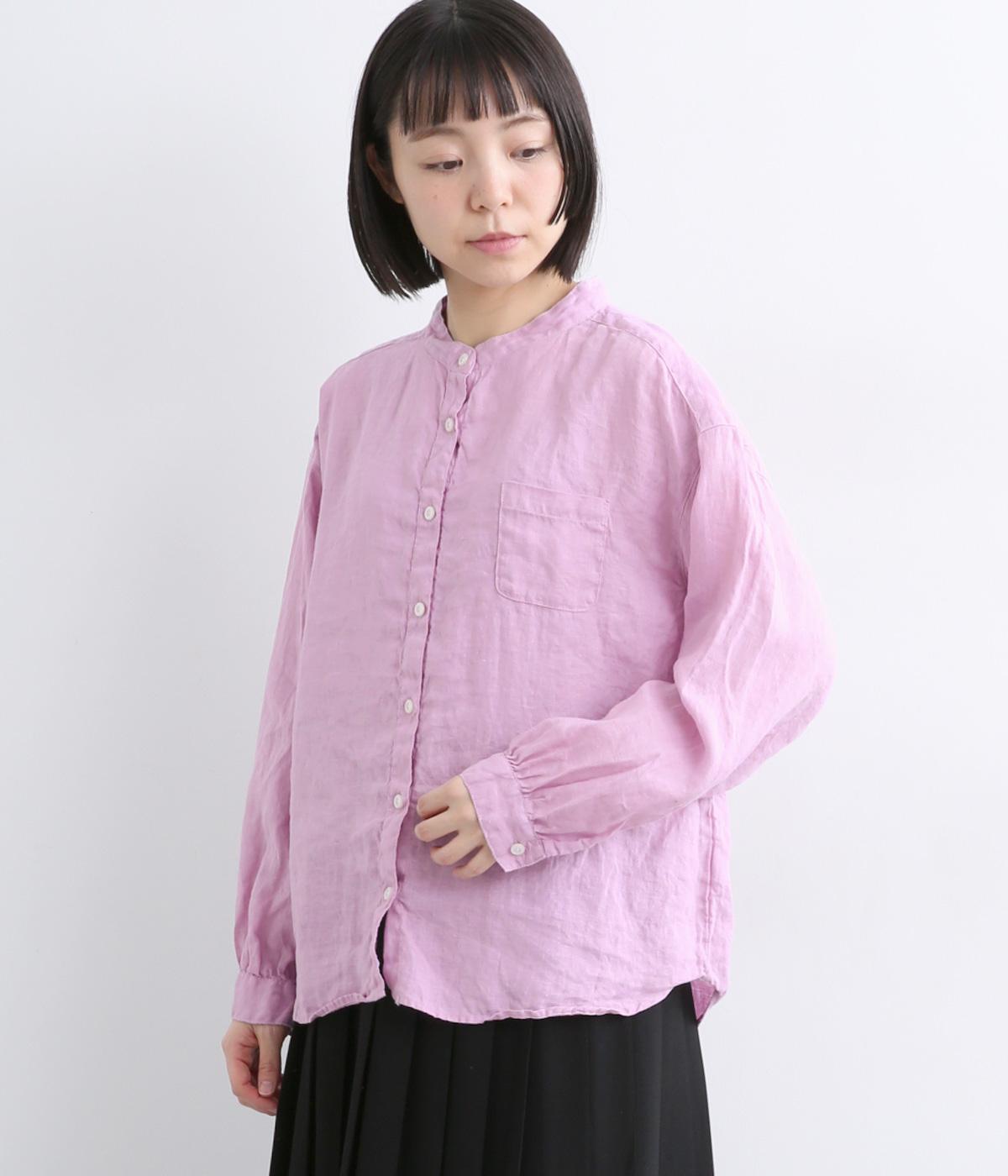 リネン生地の独特な風合いを引き立てたシンプルなシャツ。低めのスタンドカラーと左胸のポケットがきちんと感を添えてくれます。袖口にはギャザーをあしらってフェミニンなポイントに。さまざまなボトムスとなじみやすくする、緩やかに曲線を描くヘムラインも◎です。
