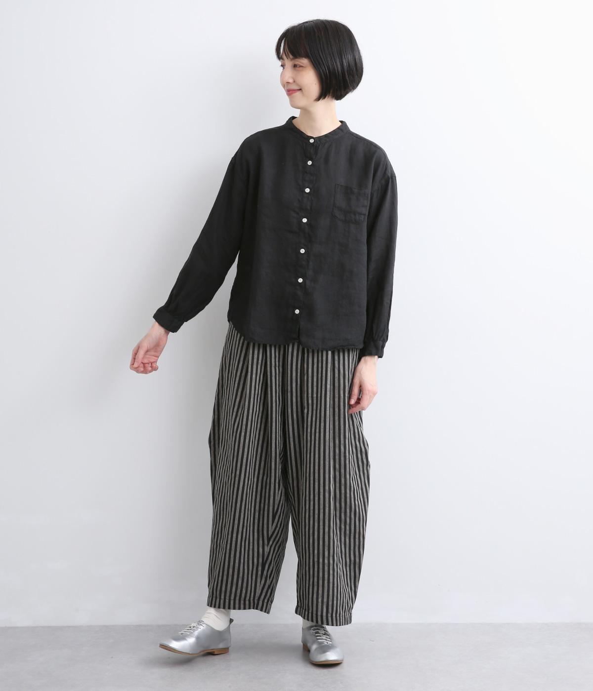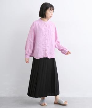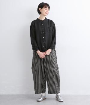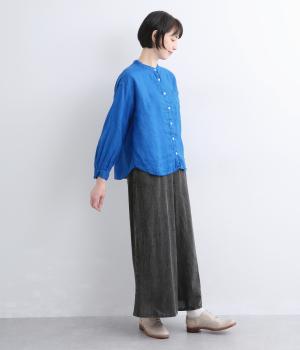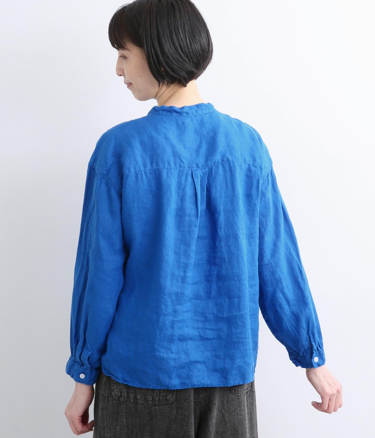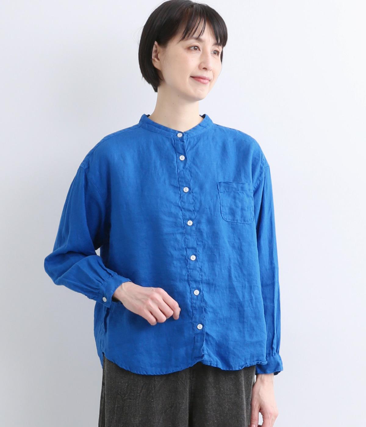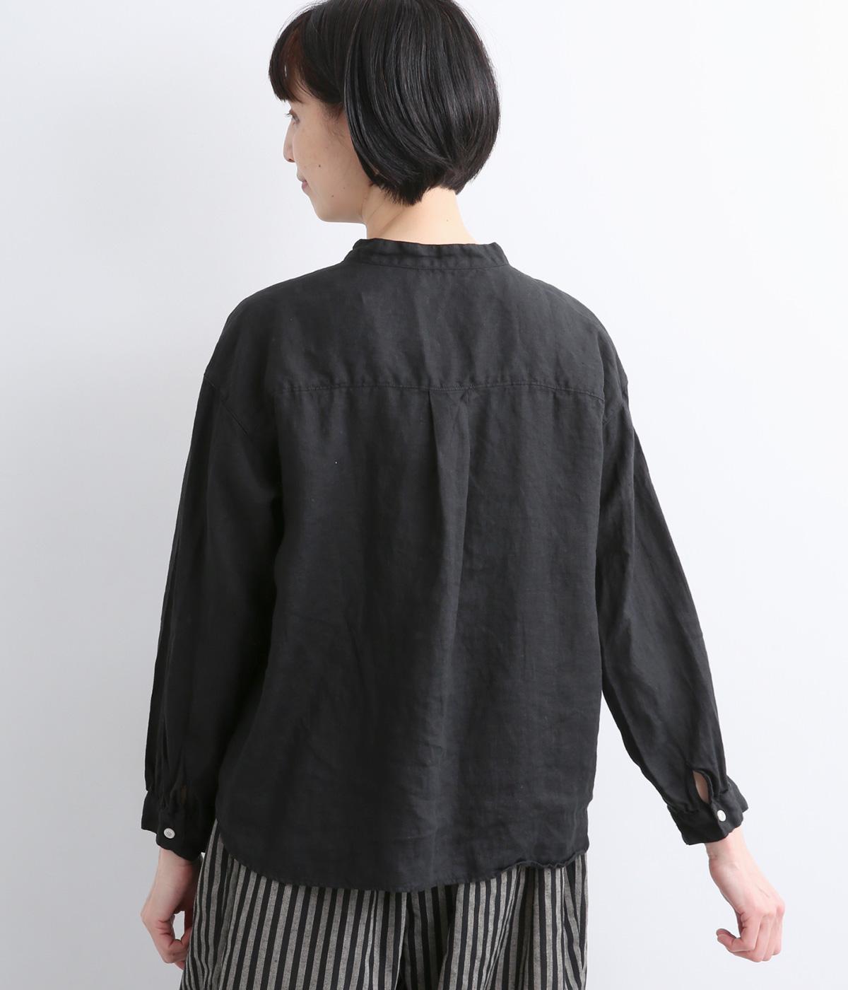 リネン生地の独特な風合いを引き立てたシンプルなシャツ。低めのスタンドカラーと左胸のポケットがきちんと感を添えてくれます。袖口にはギャザーをあしらってフェミニンなポイントに。さまざまなボトムスとなじみやすくする、緩やかに曲線を描くヘムラインも◎です。