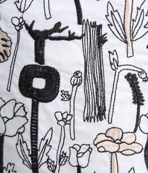 高密度に織り上げたコットン生地はハリがあり、柄刺しゅうがきれいに映えます。肌ばなれよく快適な着心地で、きちんと見えする素材感です。