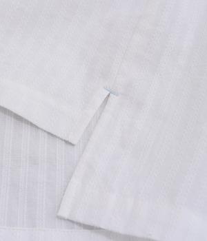 オフホワイトとブラックはハリのあるコットン生地でに刺しゅうをあしらい、ストライプはなめらかなポリエステル混生地にプリントをほどこしました。どちらも軽やかで日常に取り入れやすい素材感です。