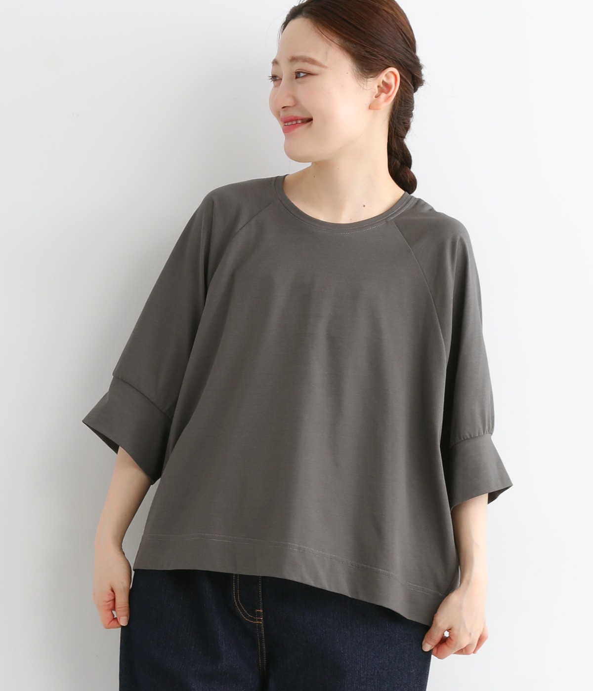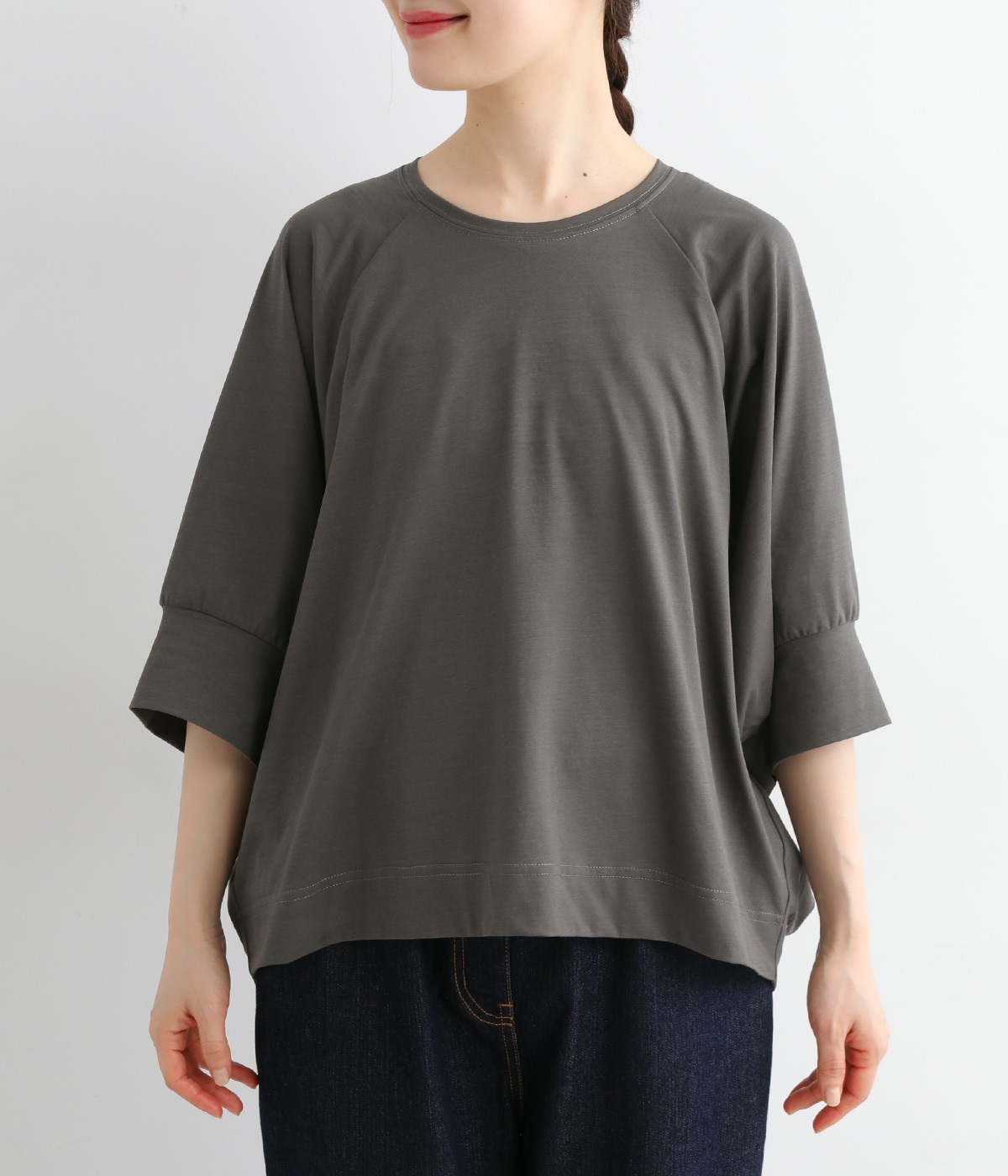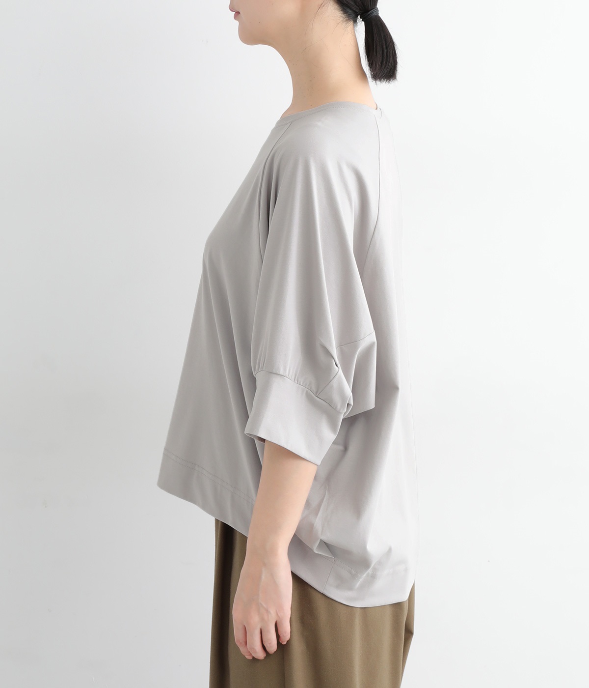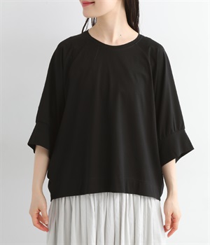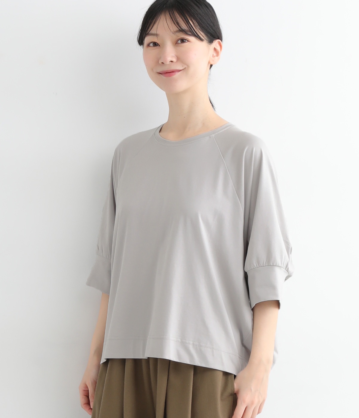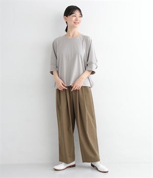ほのかに光沢のある生地のため、カジュアルなプルオーバーもきちんと感のある仕上がりに。気軽に着られて、きれい見えも叶えてくれる優秀アイテムです。