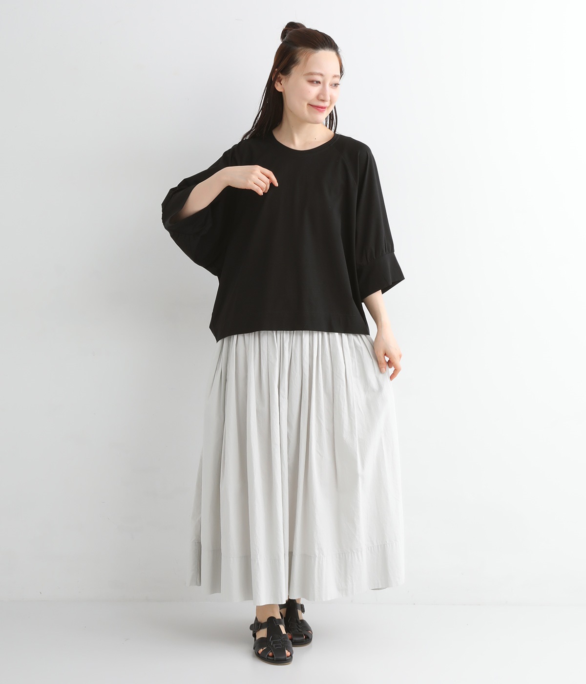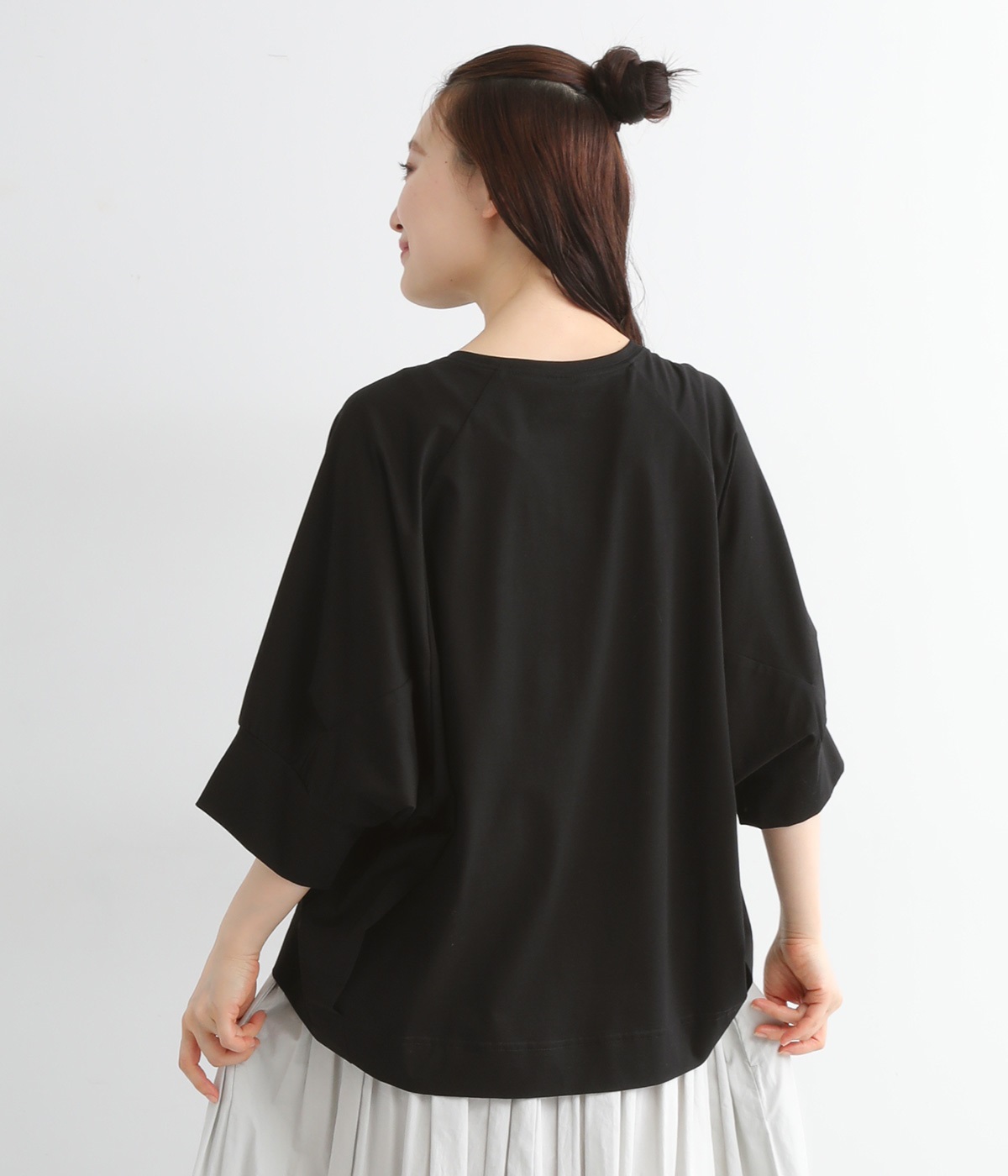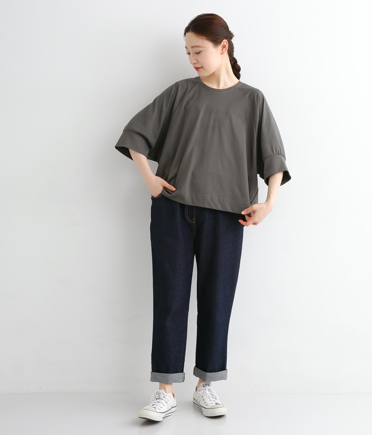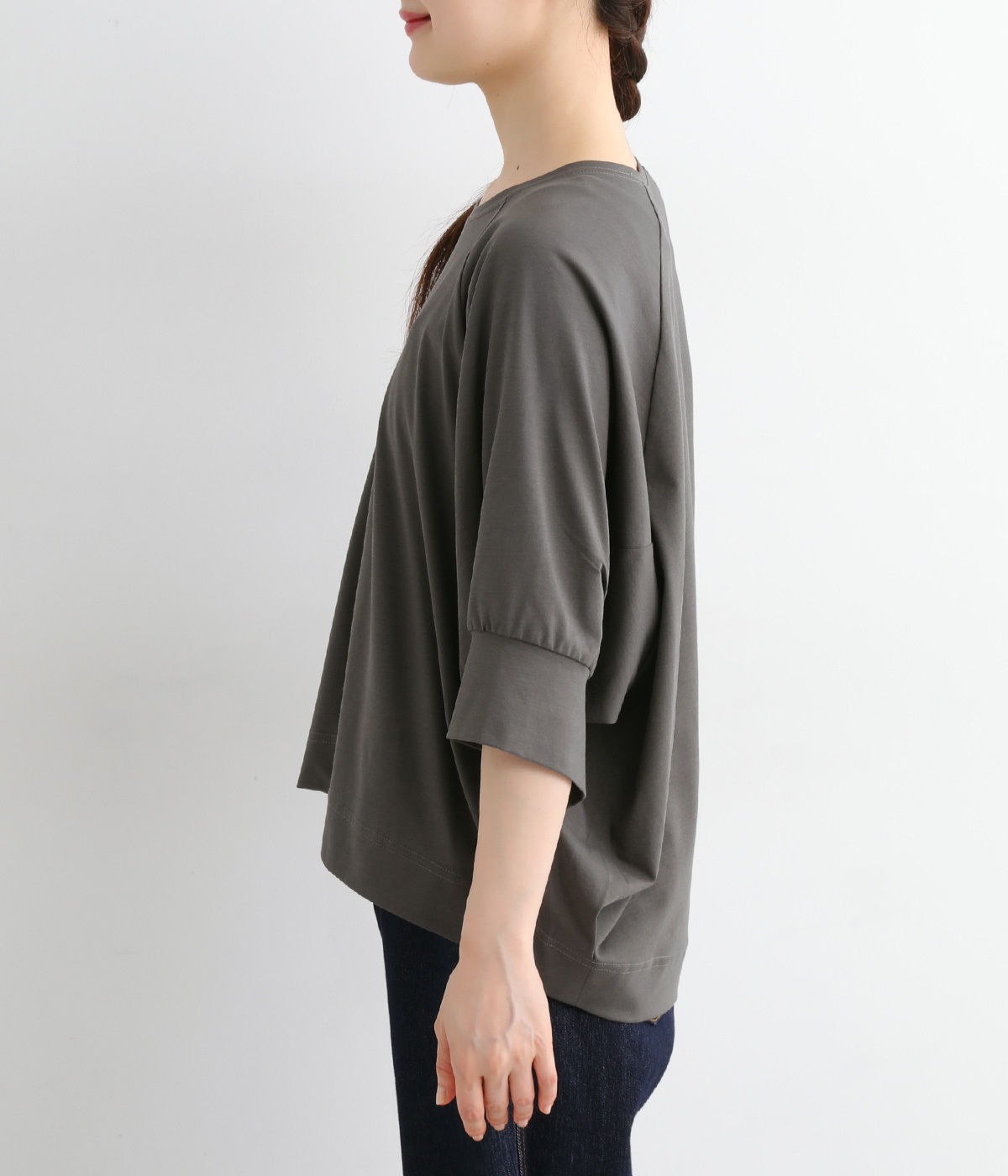 ほのかに光沢のある生地のため、カジュアルなプルオーバーもきちんと感のある仕上がりに。気軽に着られて、きれい見えも叶えてくれる優秀アイテムです。
