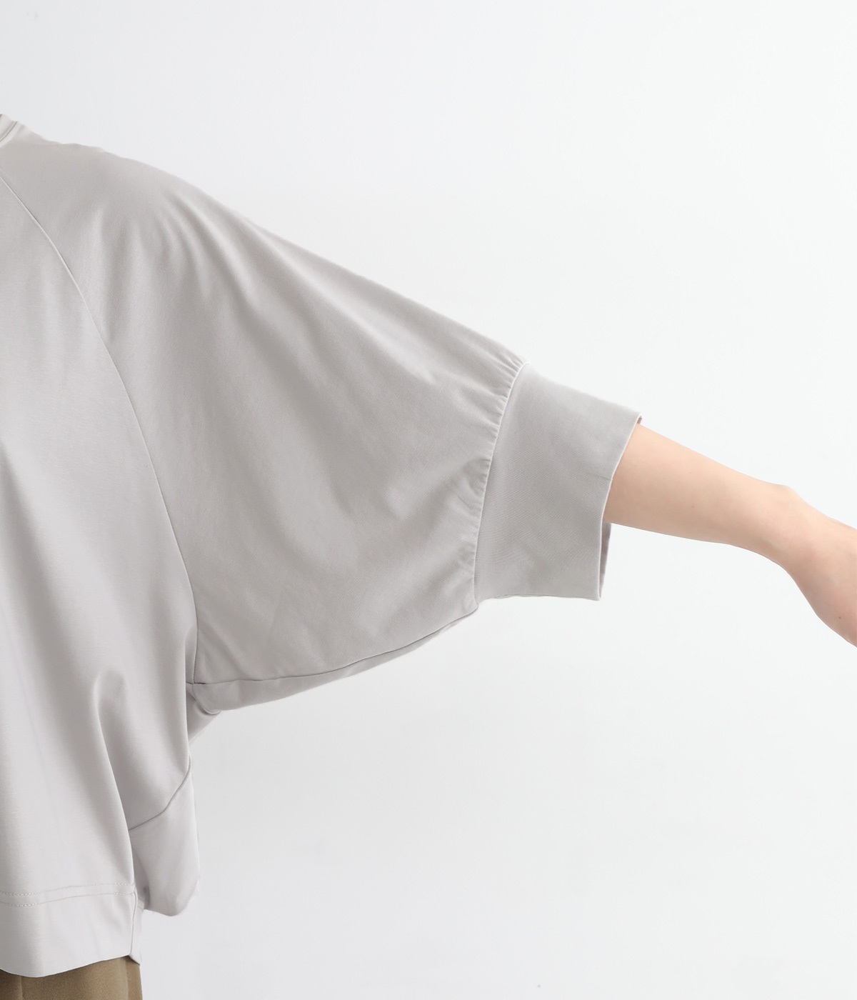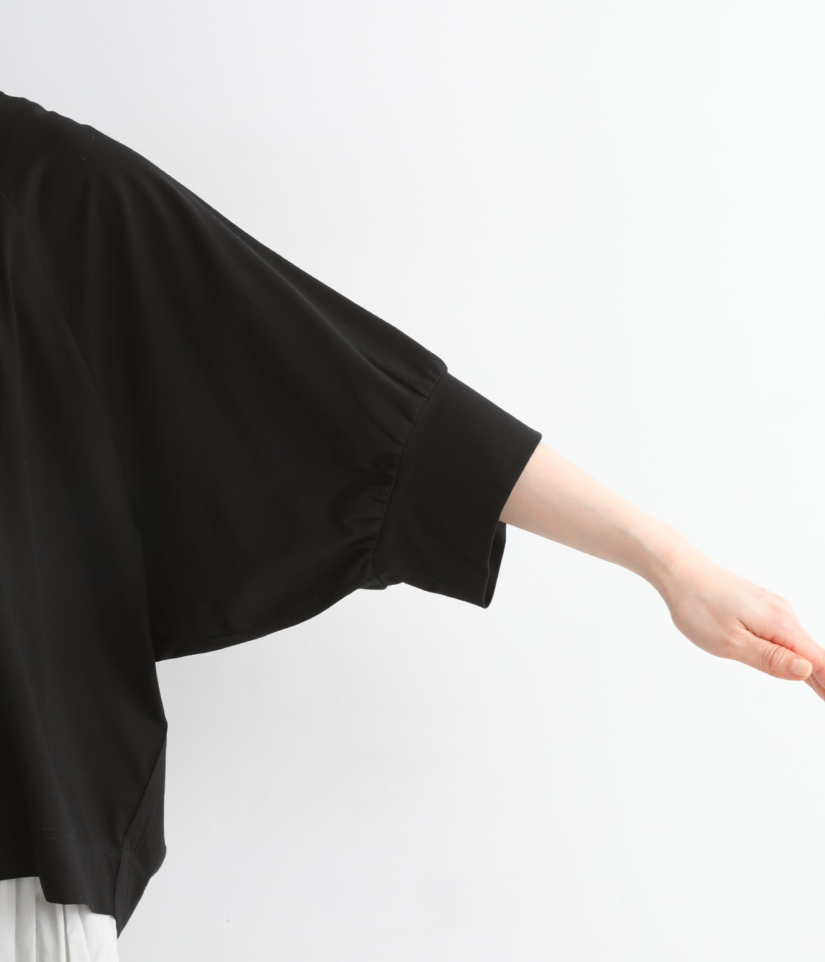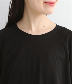 肘がしっかり隠れる安心の袖丈。長袖だと暑く感じる季節でも、接触冷感素材のおかげで見た目の美しさと快適さを両立します。