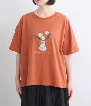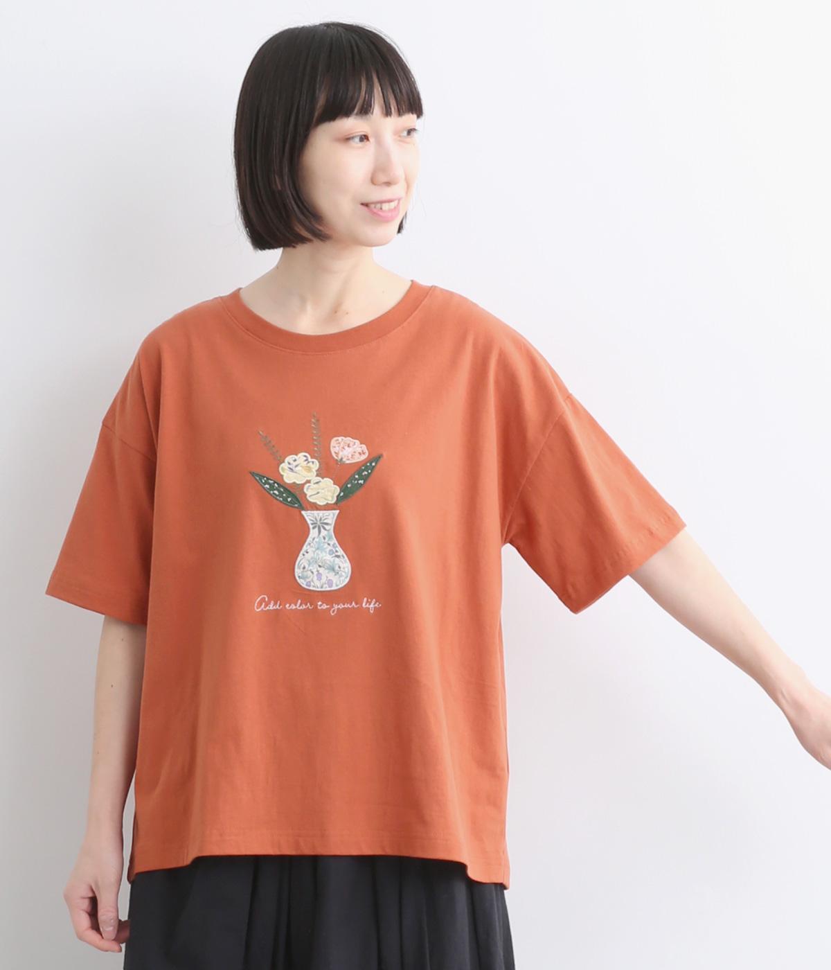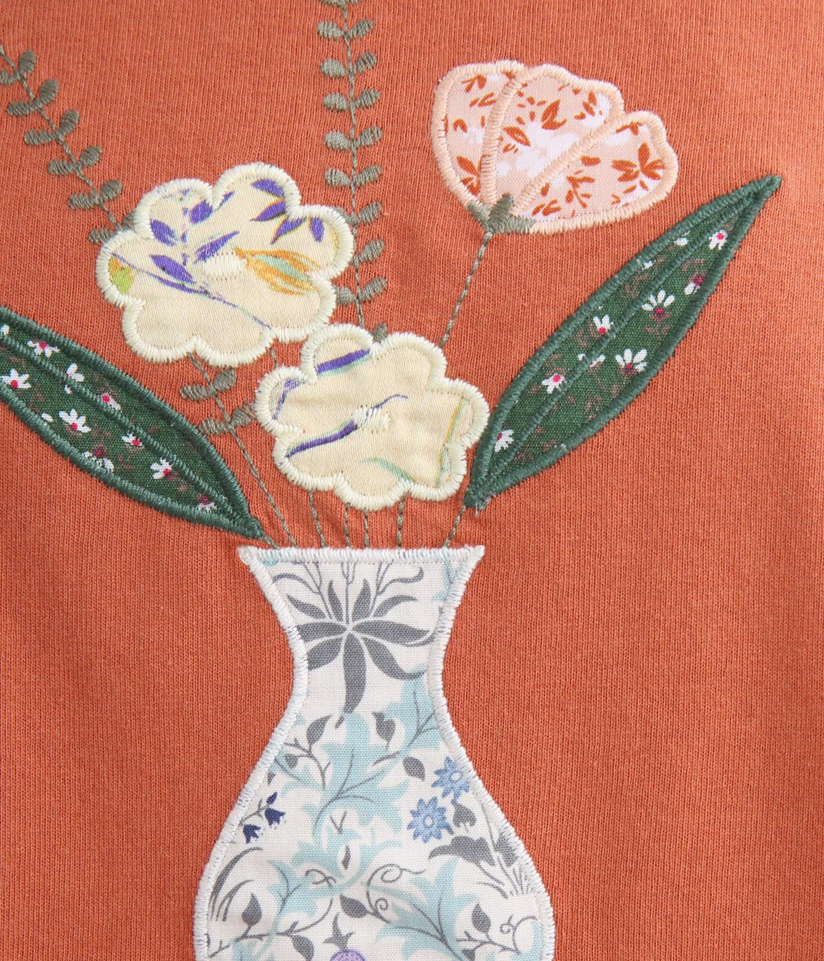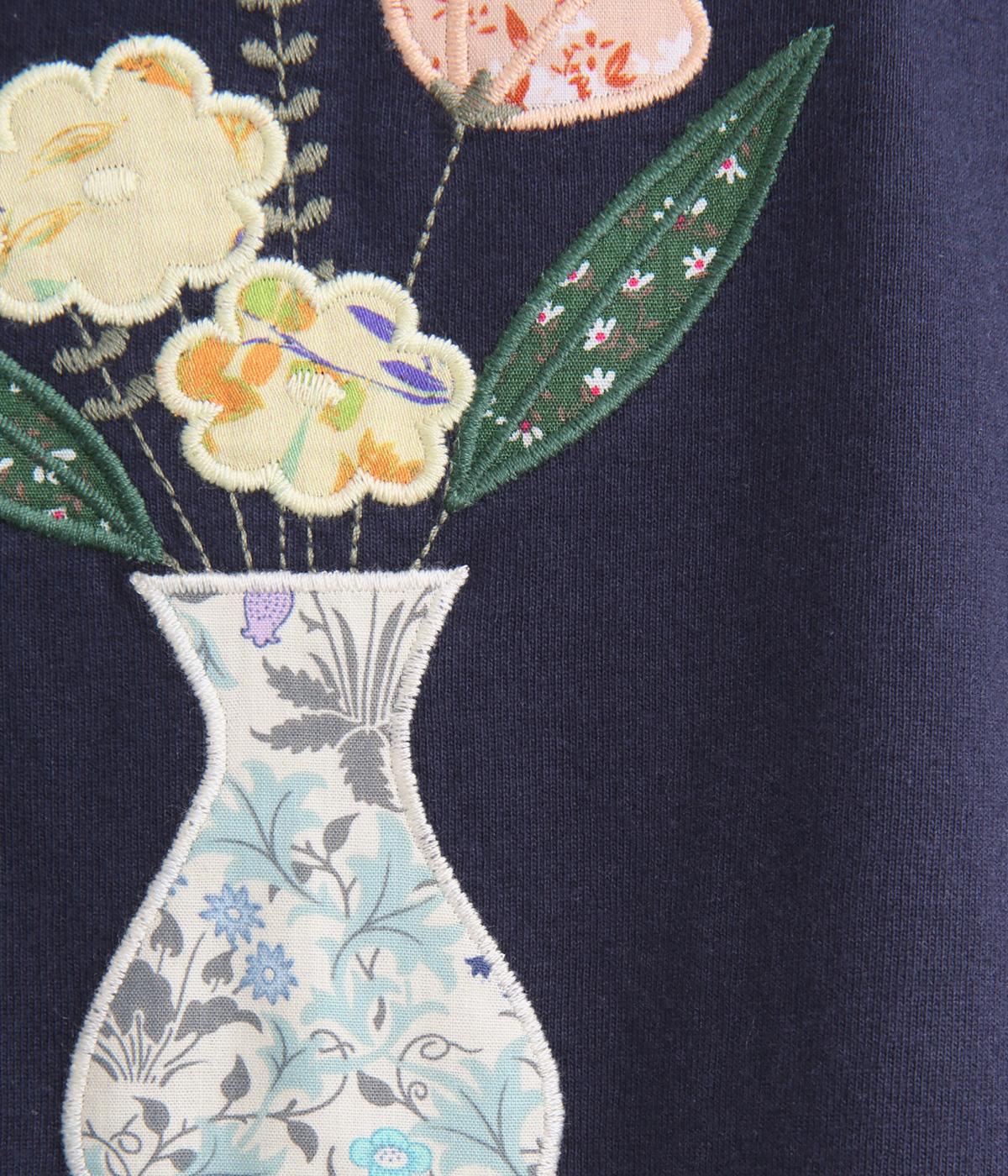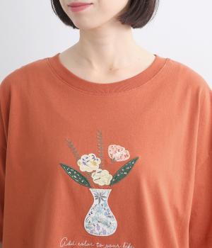 ゆったりシルエットなボディにさまざまな柄生地をアップリケのように組み合わされた花柄モチーフが目を惹きます。ベーシックなボックス型でボトム合わせもしやすく、ひじにかかるほどの袖丈でカジュアル感を軽減。