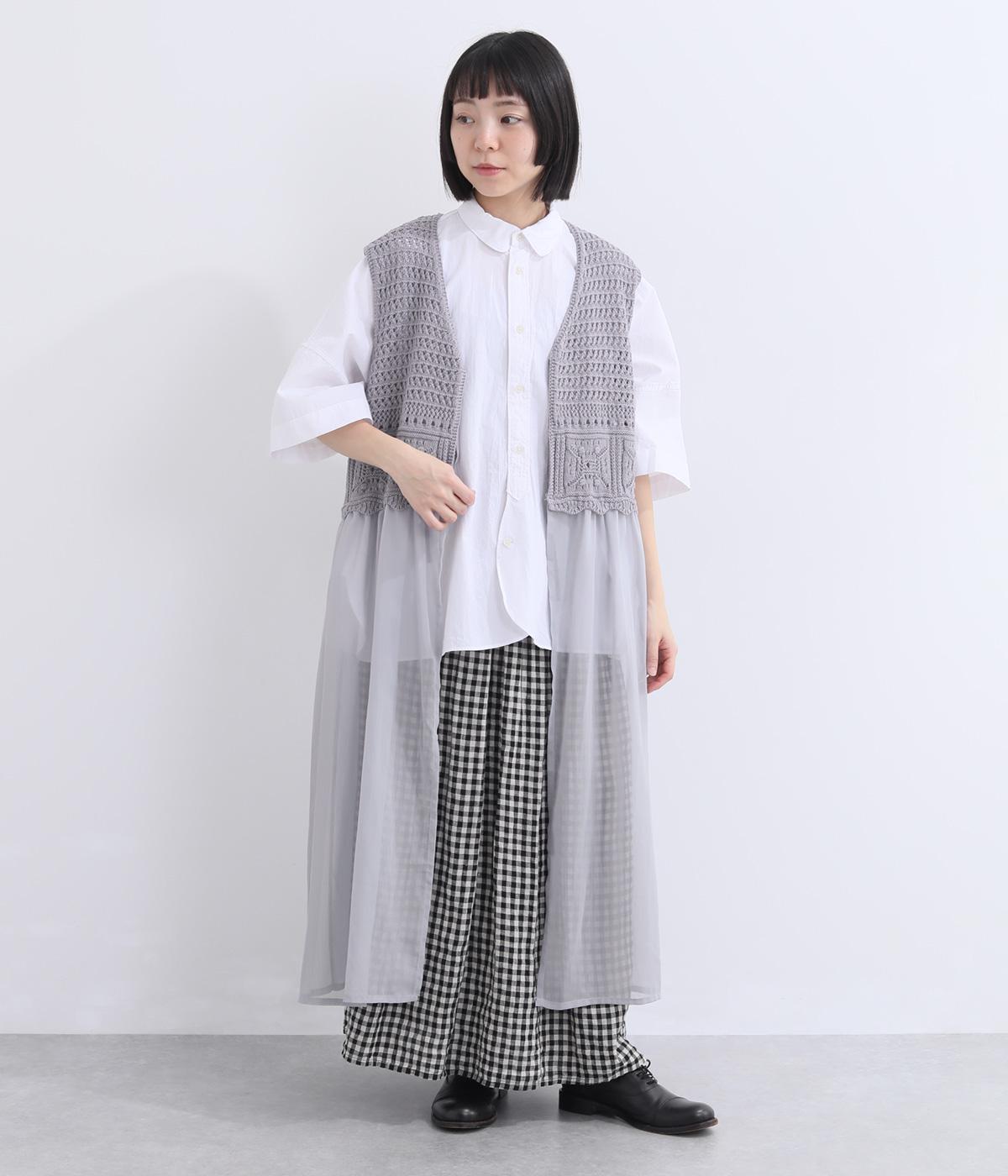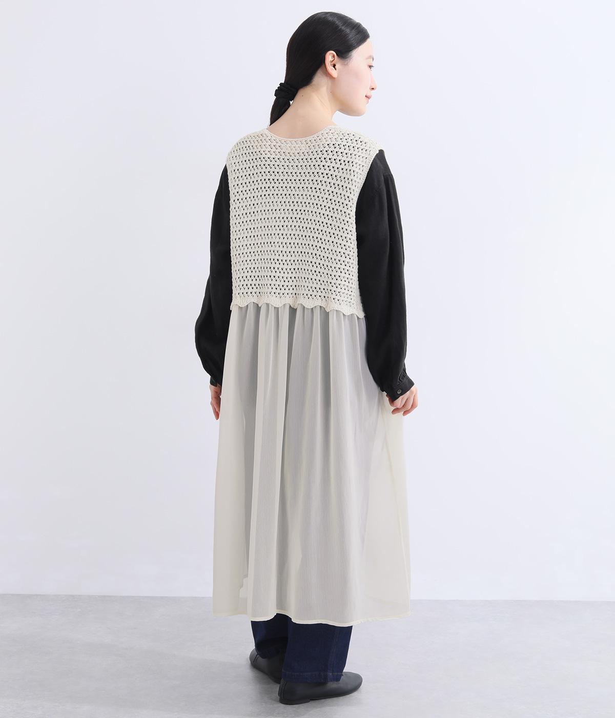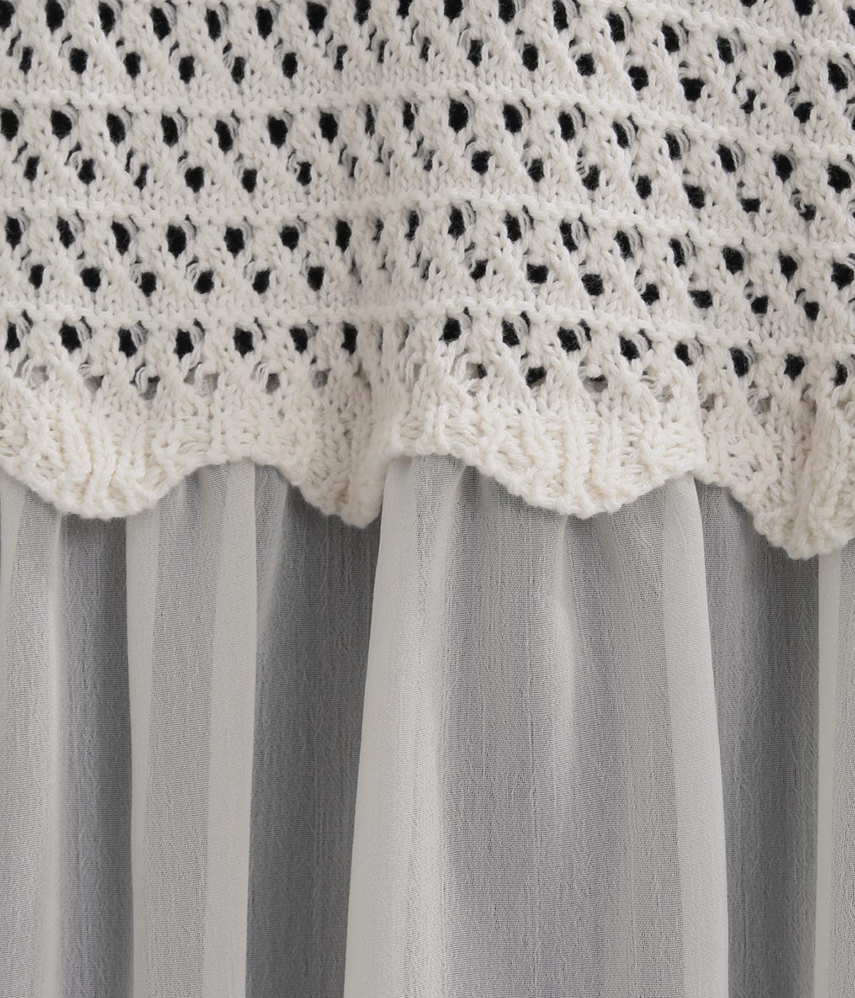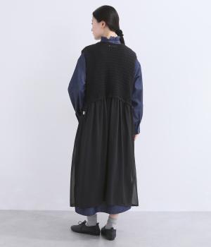 やわらかな風合いのコットンニットと、さらりとした楊柳生地を組み合わせました。編み地のやさしい肌ざわりに、布帛の軽やかな表情が重なり、通気性のよい着心地に仕上げています。