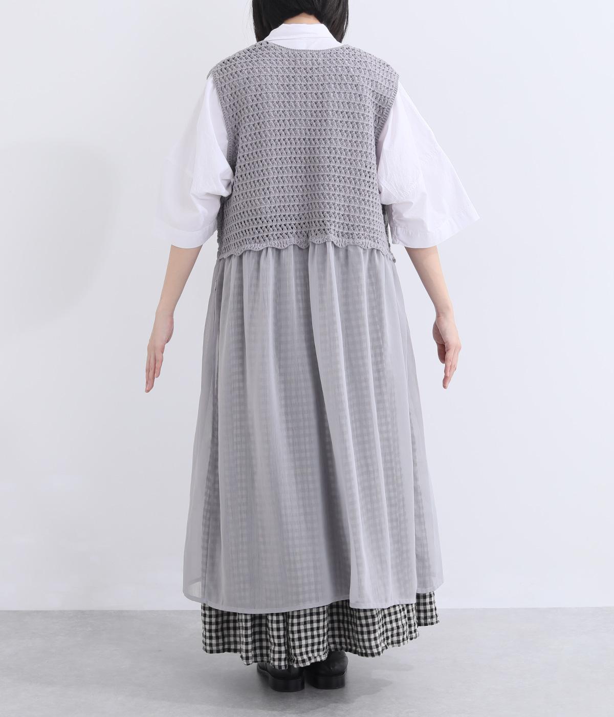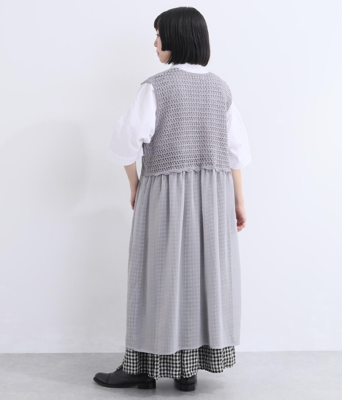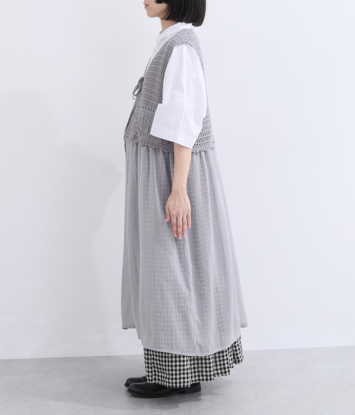 やわらかな風合いのコットンニットと、さらりとした楊柳生地を組み合わせました。編み地のやさしい肌ざわりに、布帛の軽やかな表情が重なり、通気性のよい着心地に仕上げています。