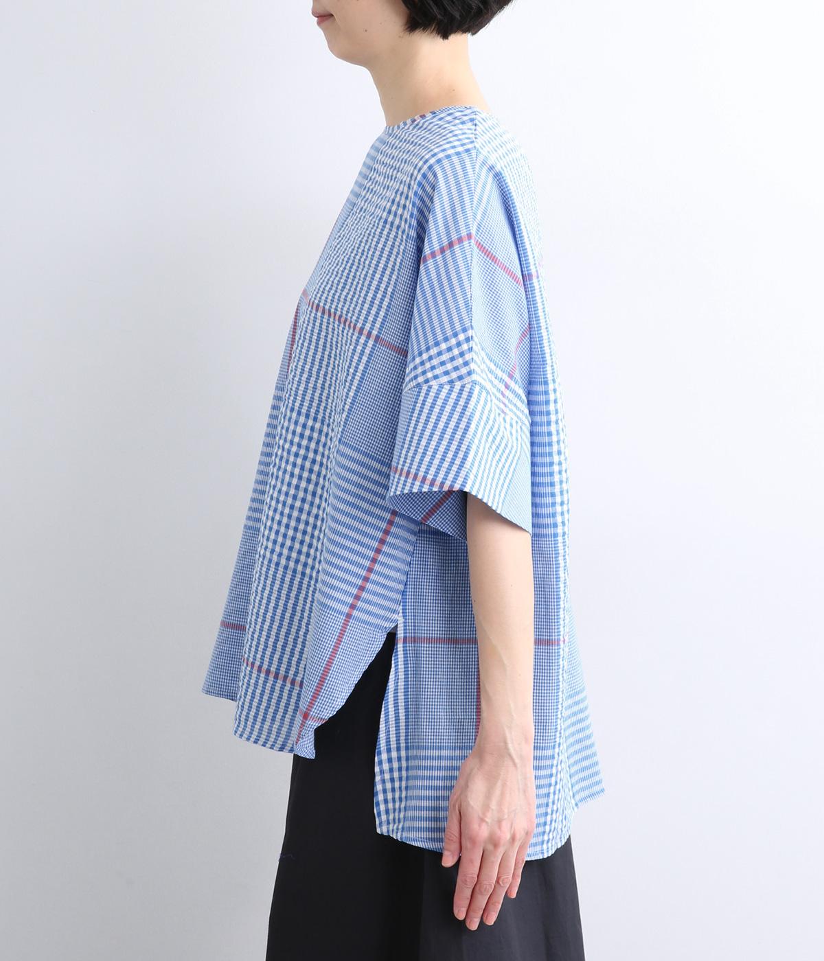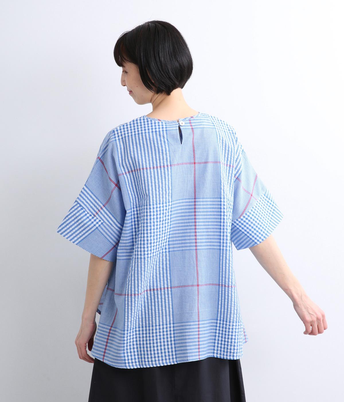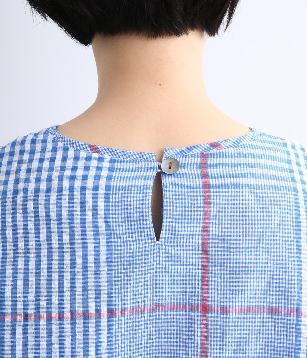 さらりと通気性のよいインド産コットン生地を使用しています。凹凸のある軽やかなサッカー生地を組み合わせ、表情豊かな雰囲気に仕上げました。手しごとならではの素朴であたたかみのある風合いが魅力です。