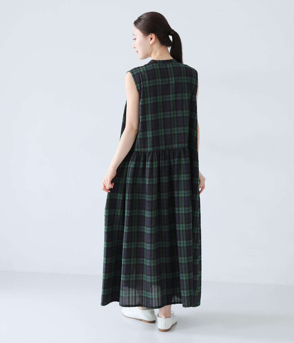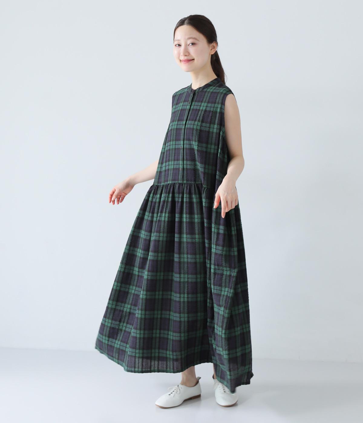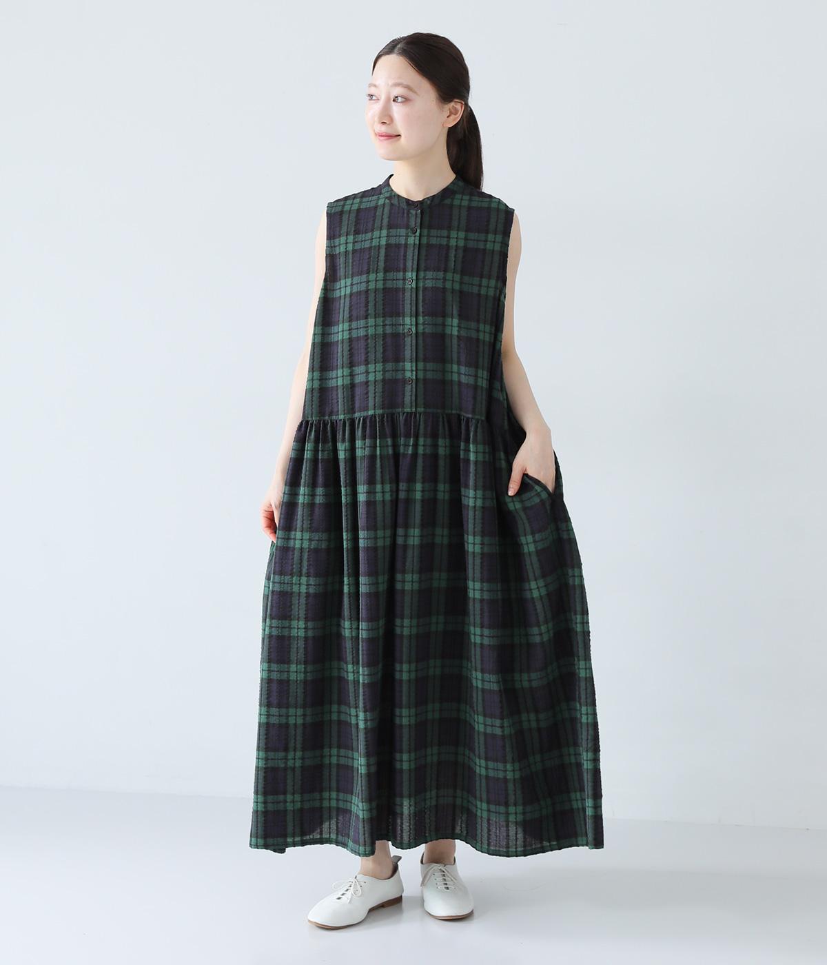 ウエスト位置にたっぷりとギャザーを入れた、女性らしいふわりとしたシルエットが素敵なワンピースです。サッカー生地を使用し、分量感のあるシルエットも軽やかな仕上がりに。一枚着ではもちろん、Tシャツやカーディガンとのレイヤードでロングシーズン着まわせます。