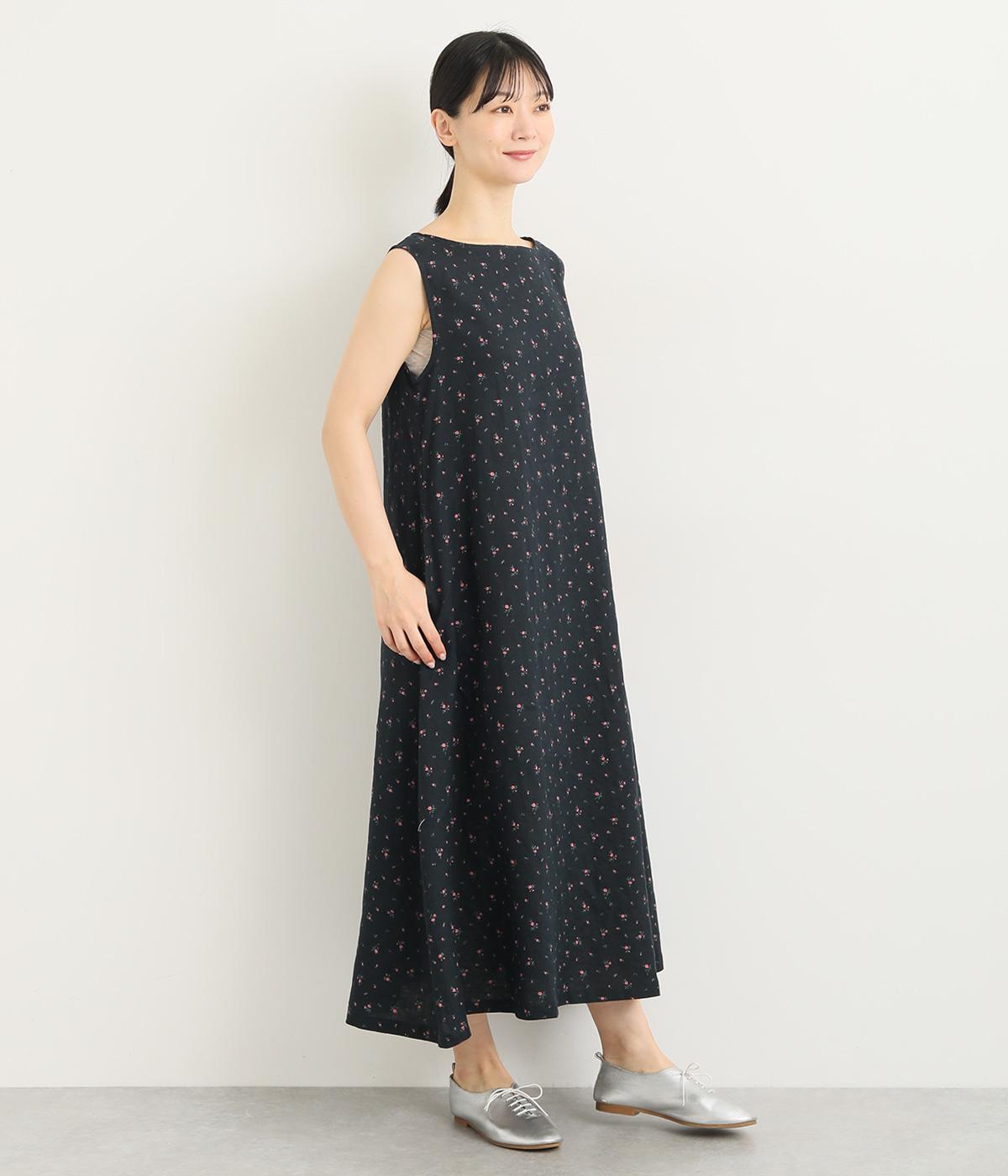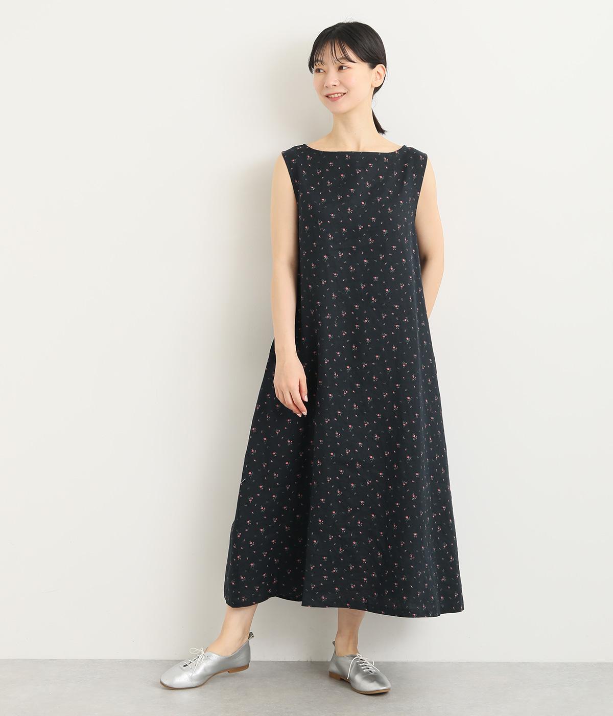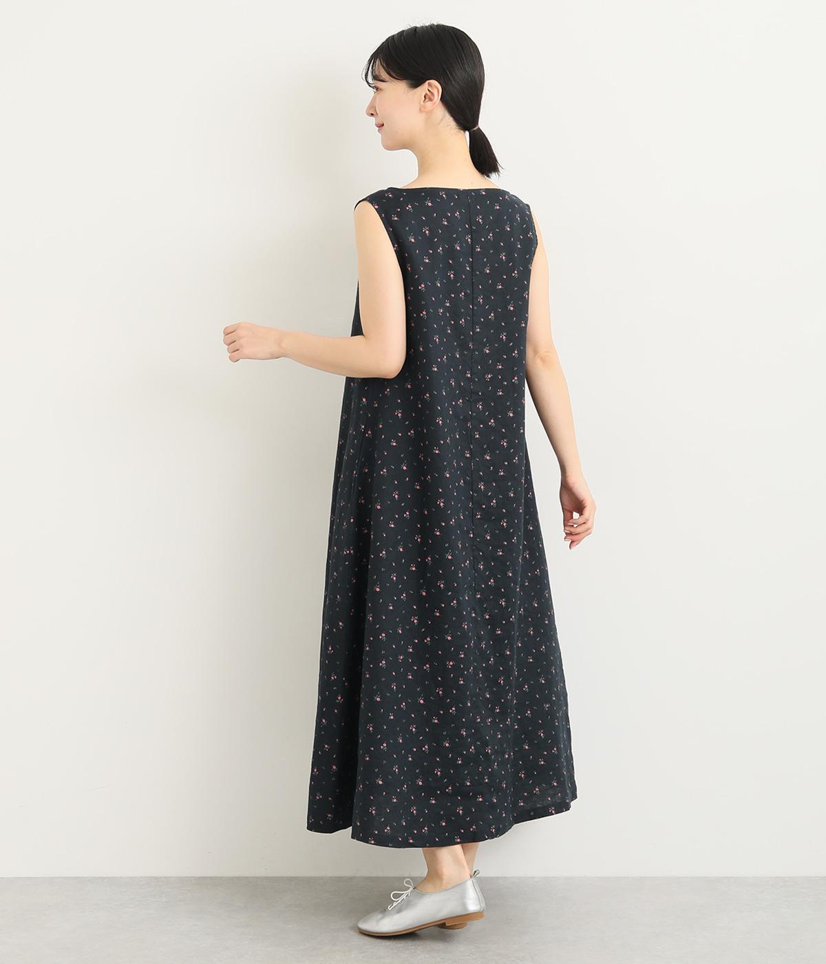 リネン小花プリントノースリーブワンピース