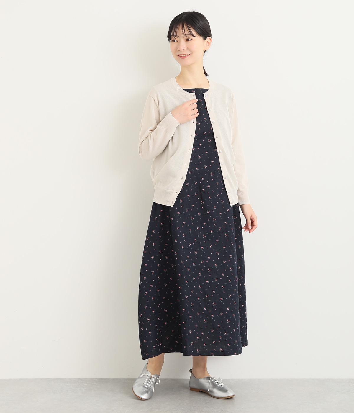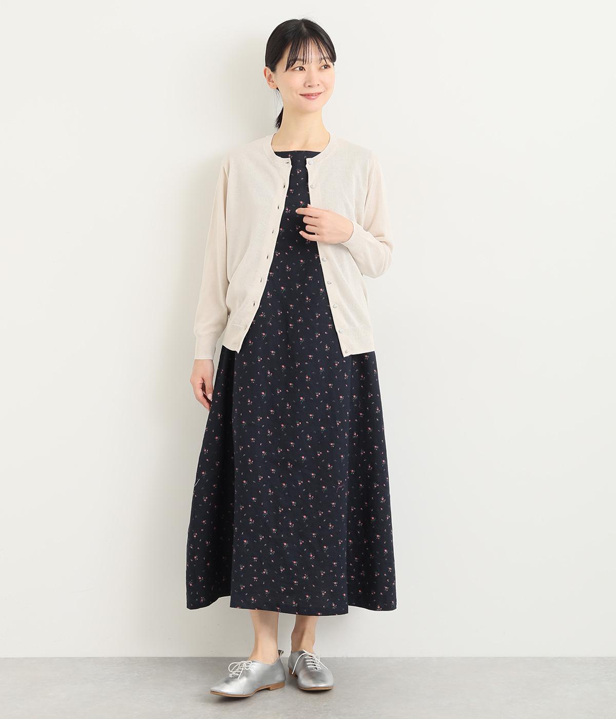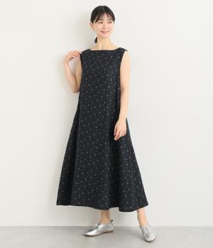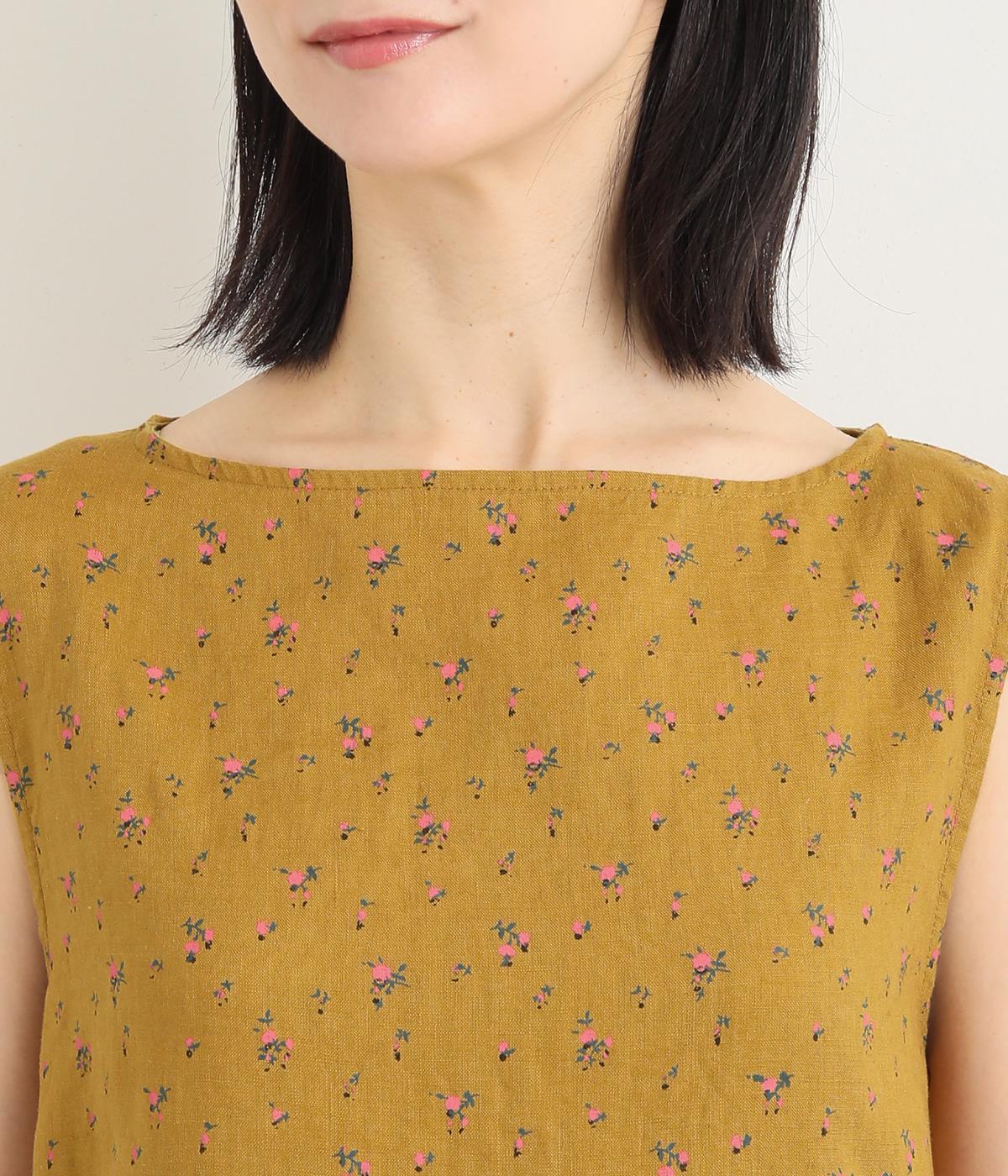 リネン小花プリントノースリーブワンピース