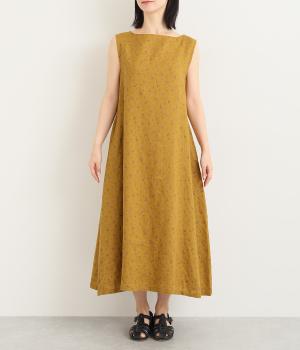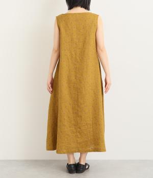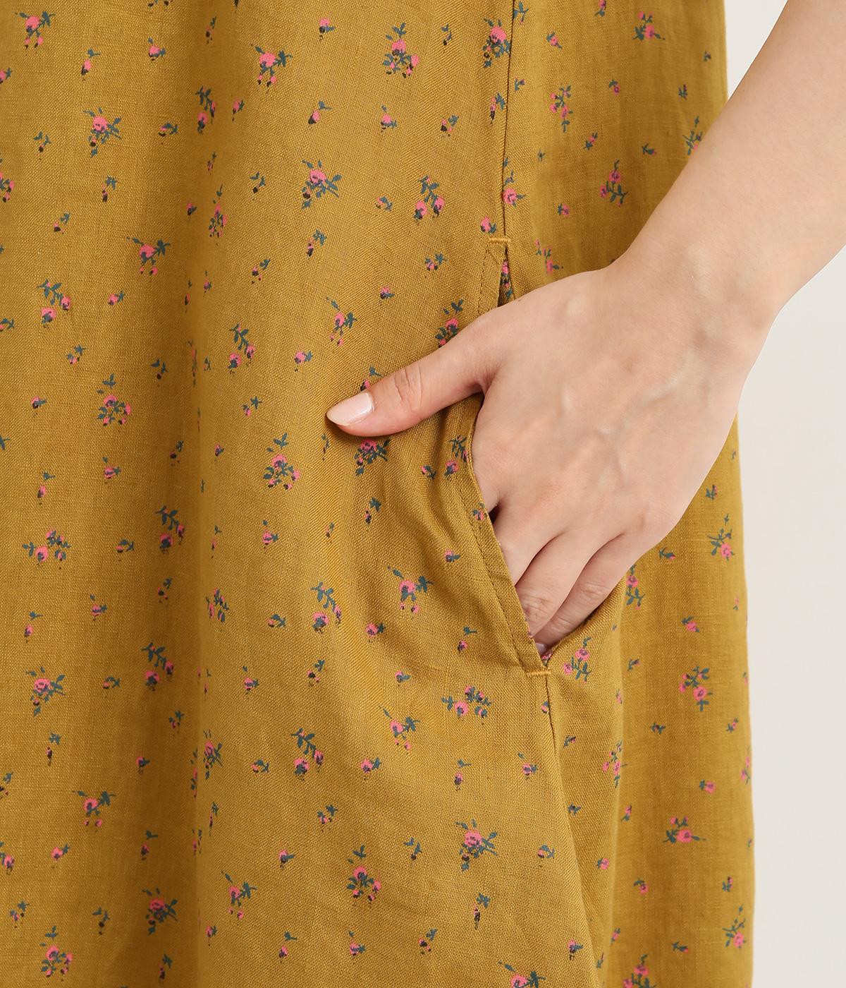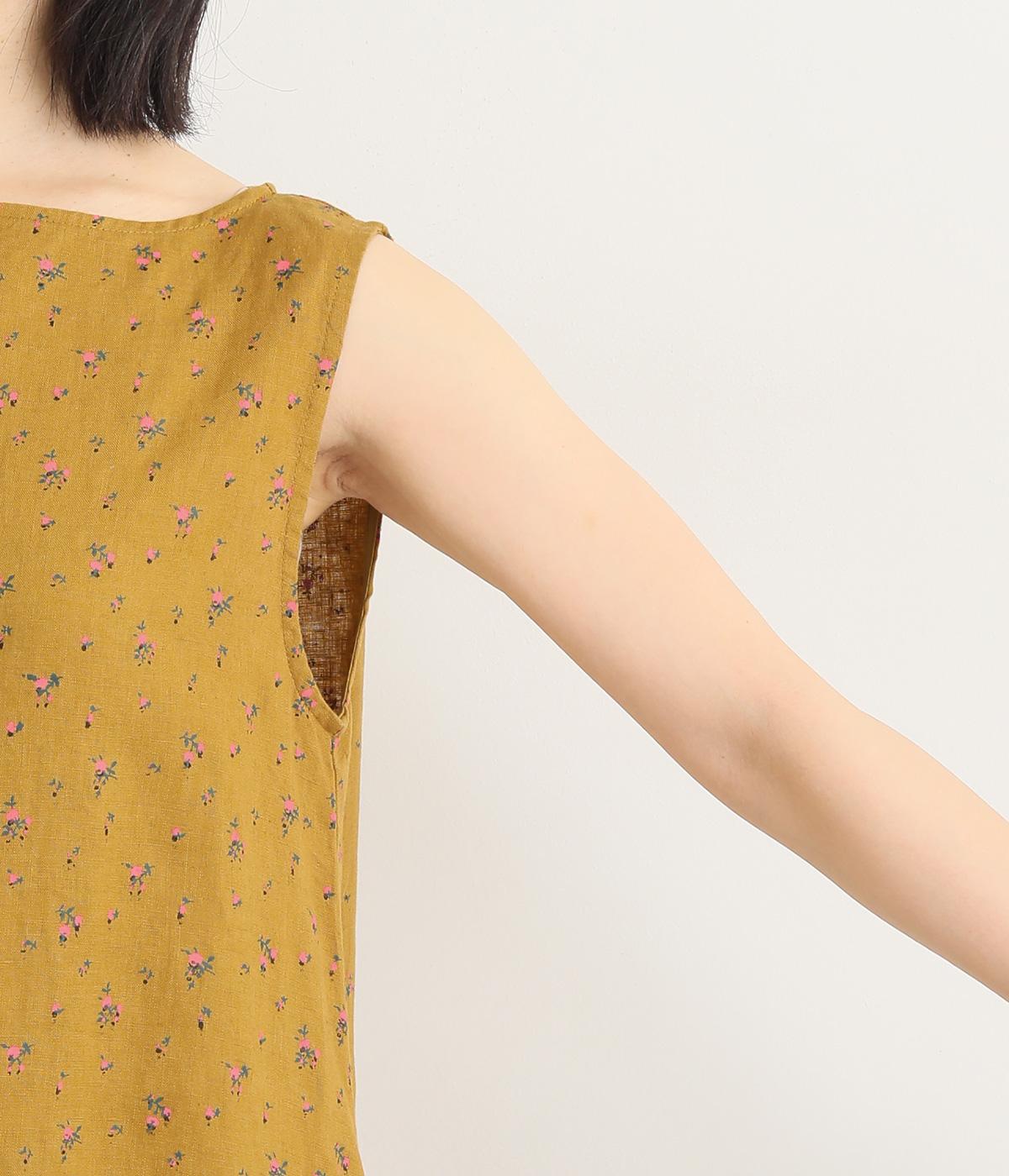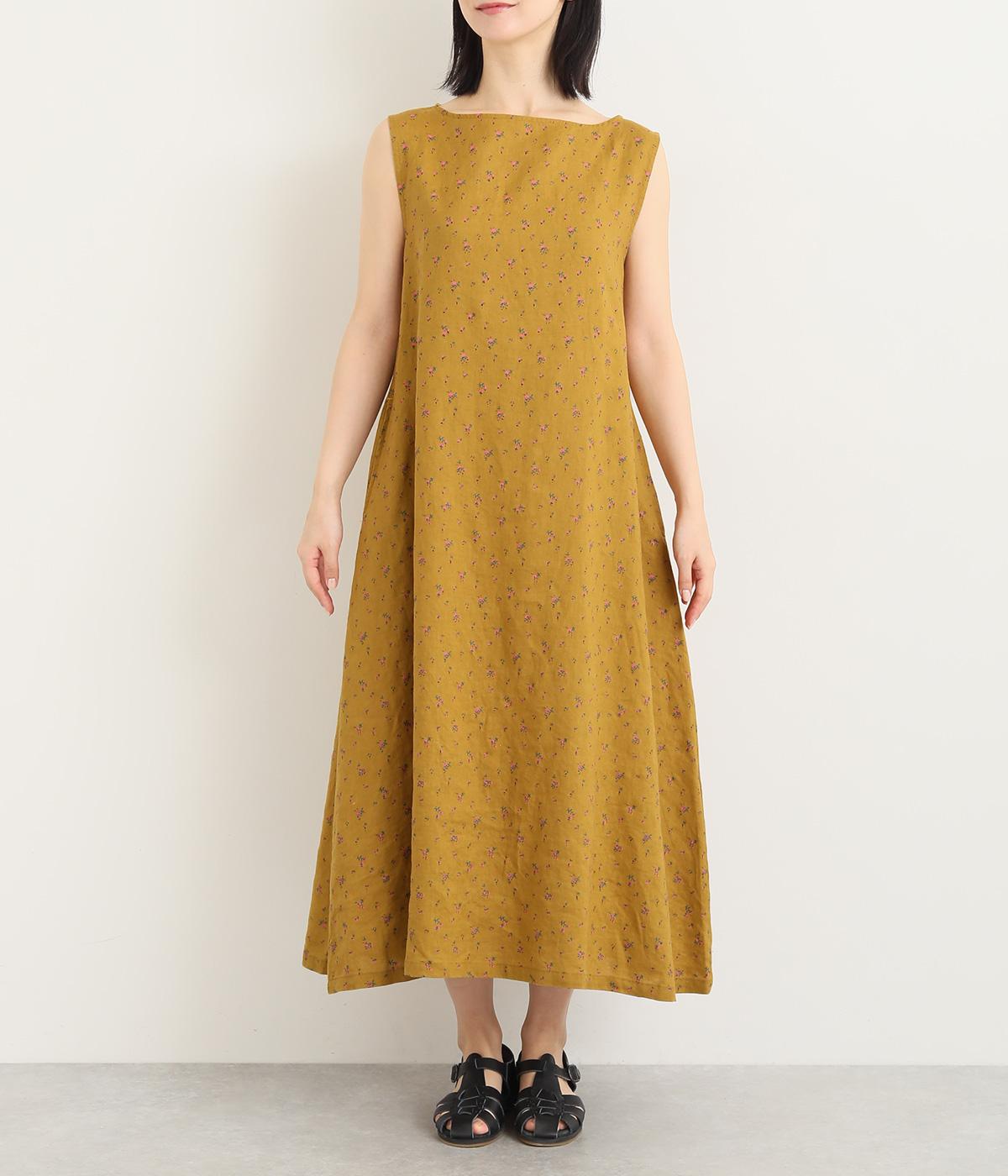 リネン小花プリントノースリーブワンピース(マスタード-M)