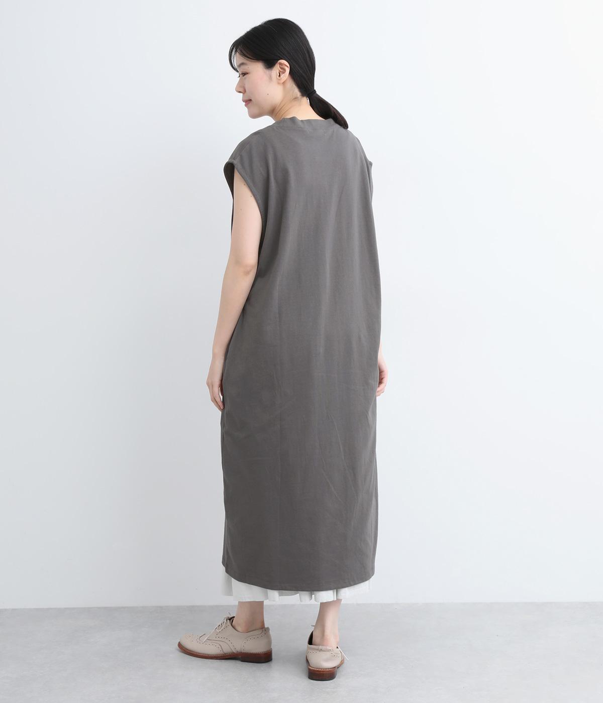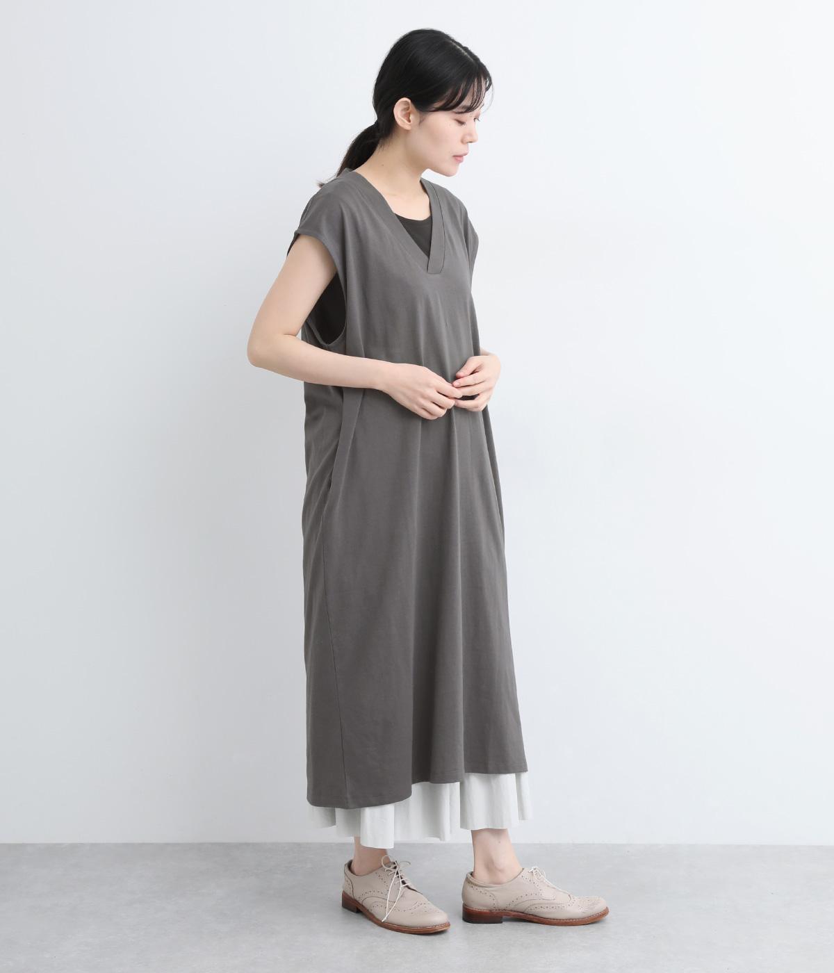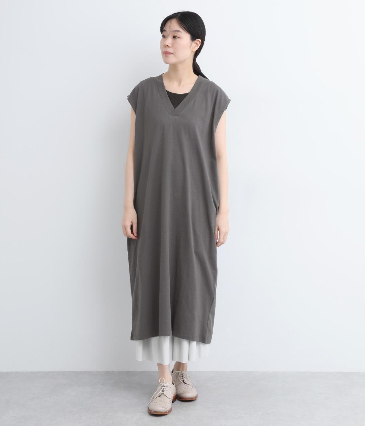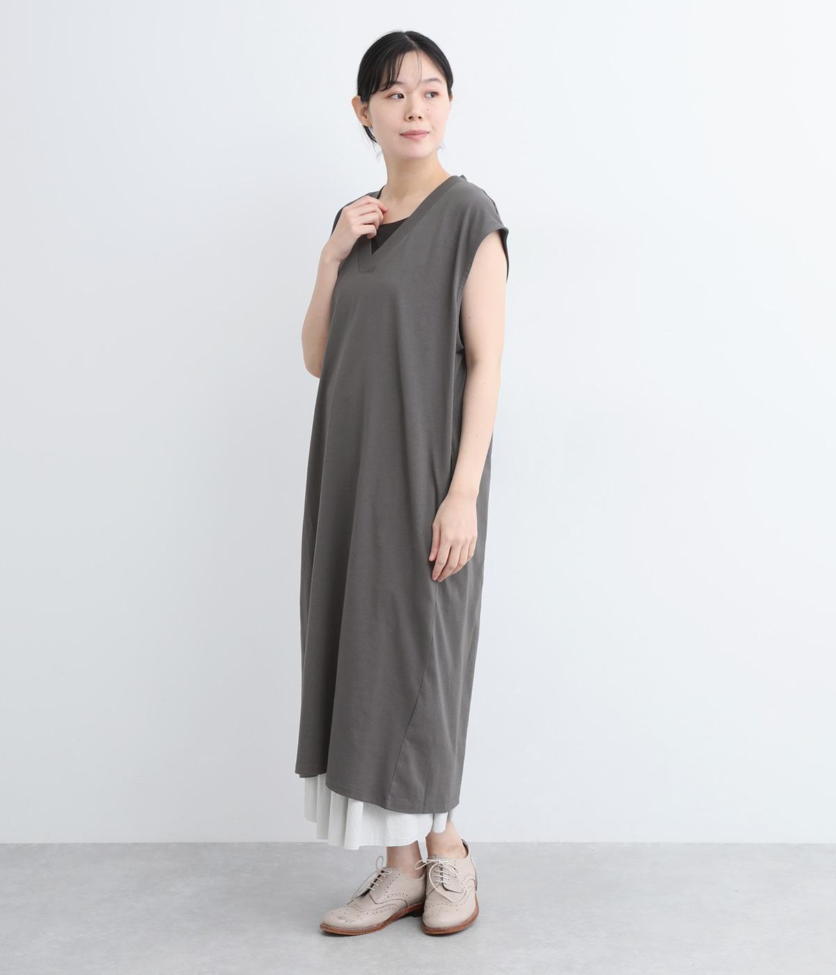 コットン天竺Vネックノースリーブワンピース(グレー-ONESIZE)