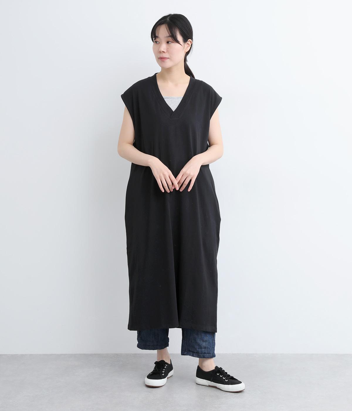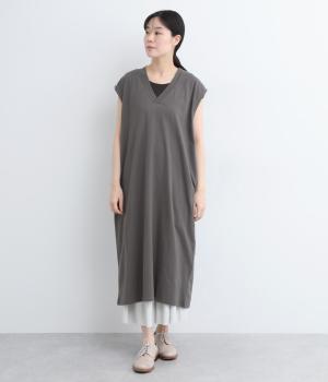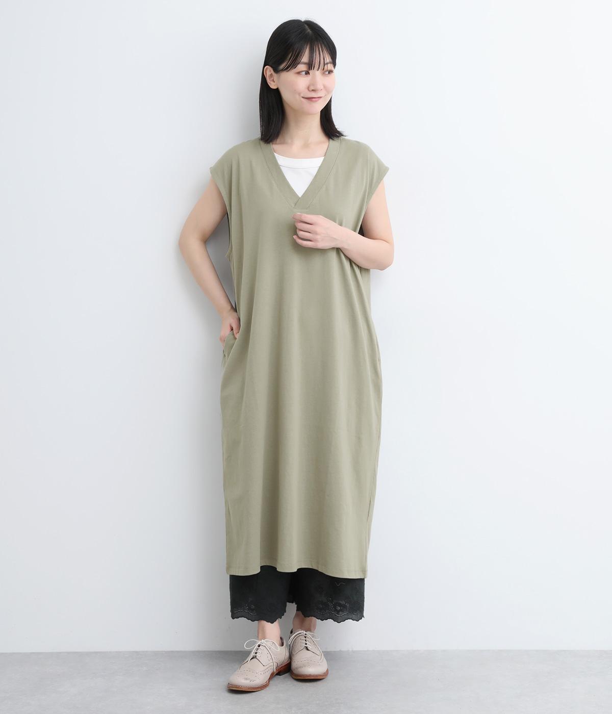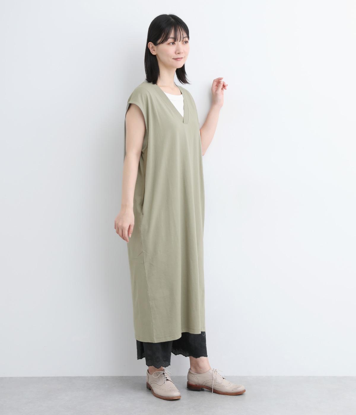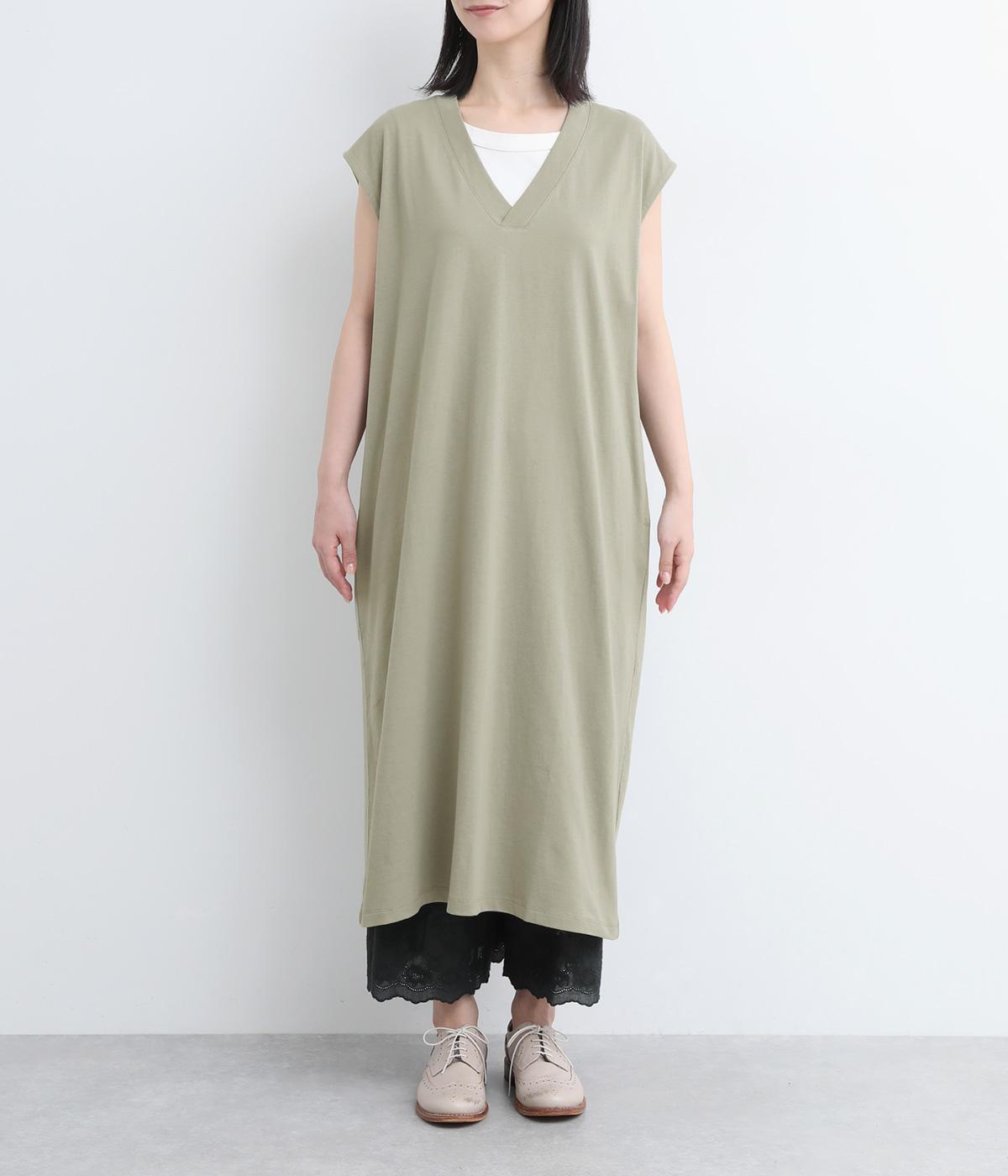 コットン天竺Vネックノースリーブワンピース