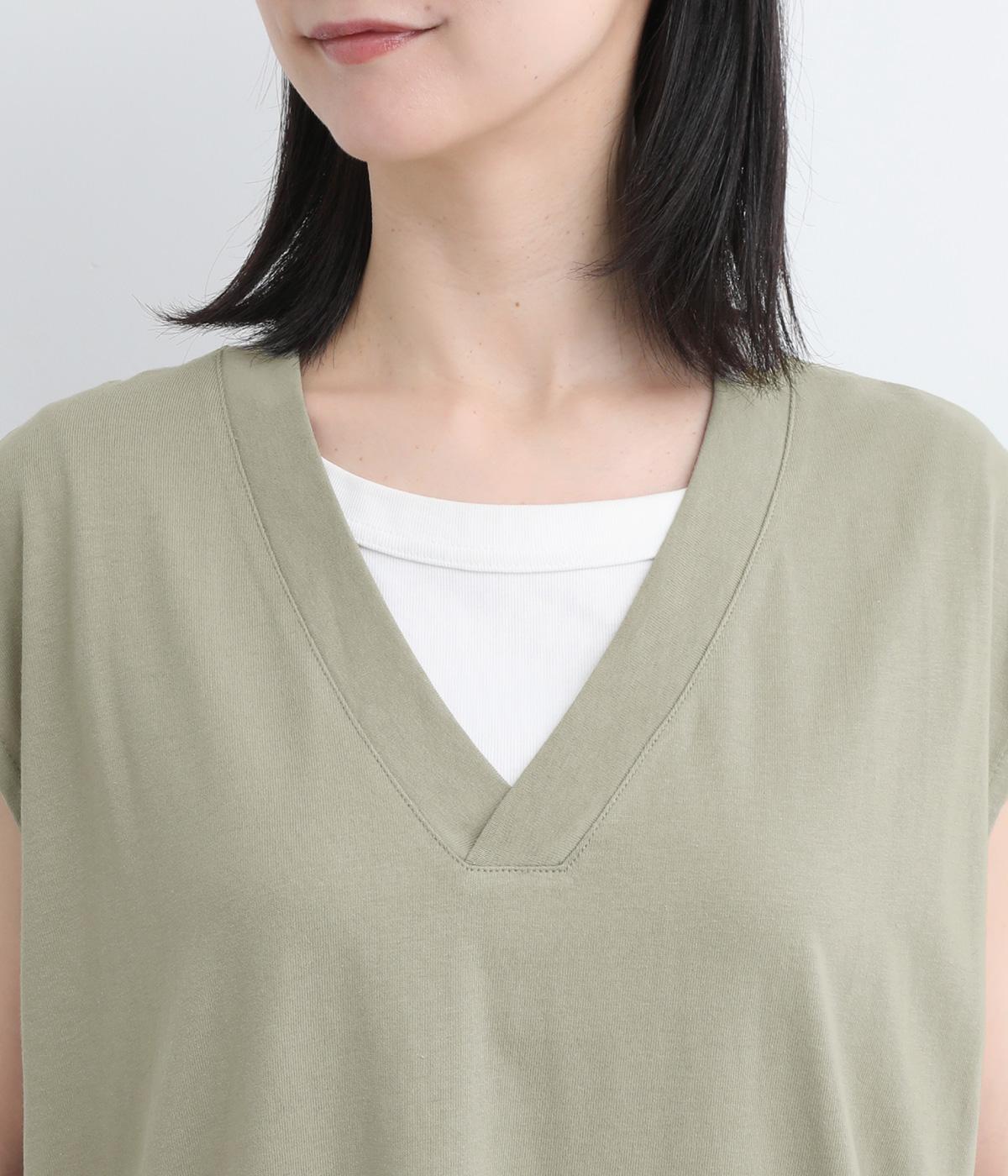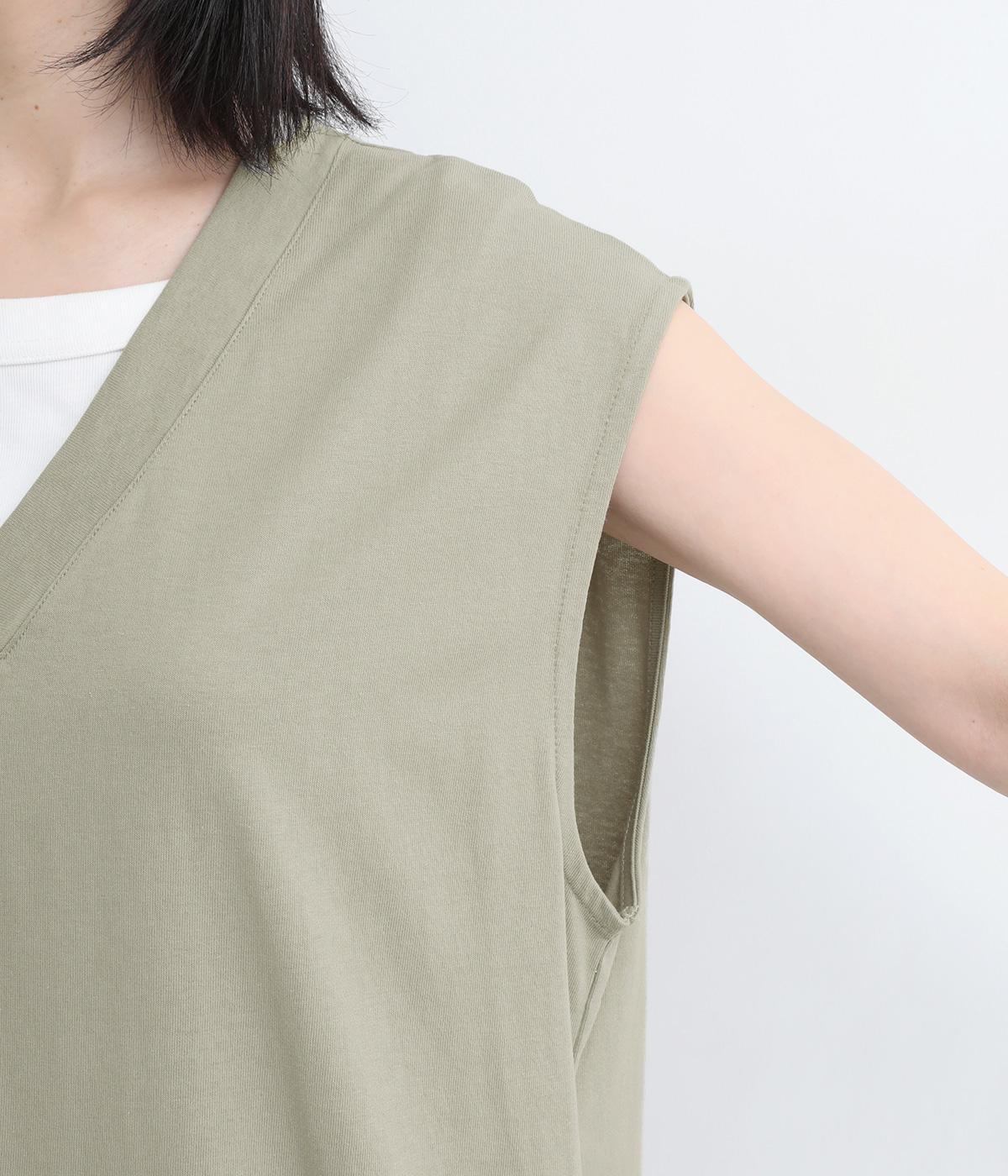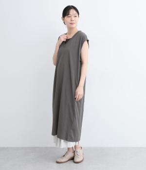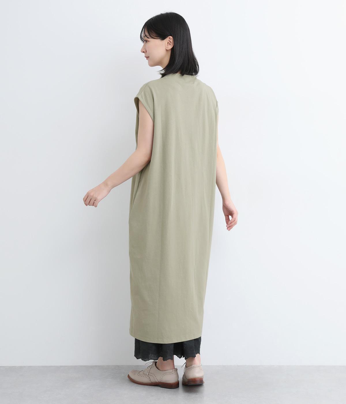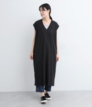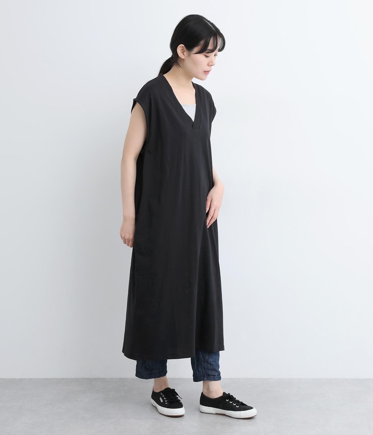 コットン天竺Vネックノースリーブワンピース