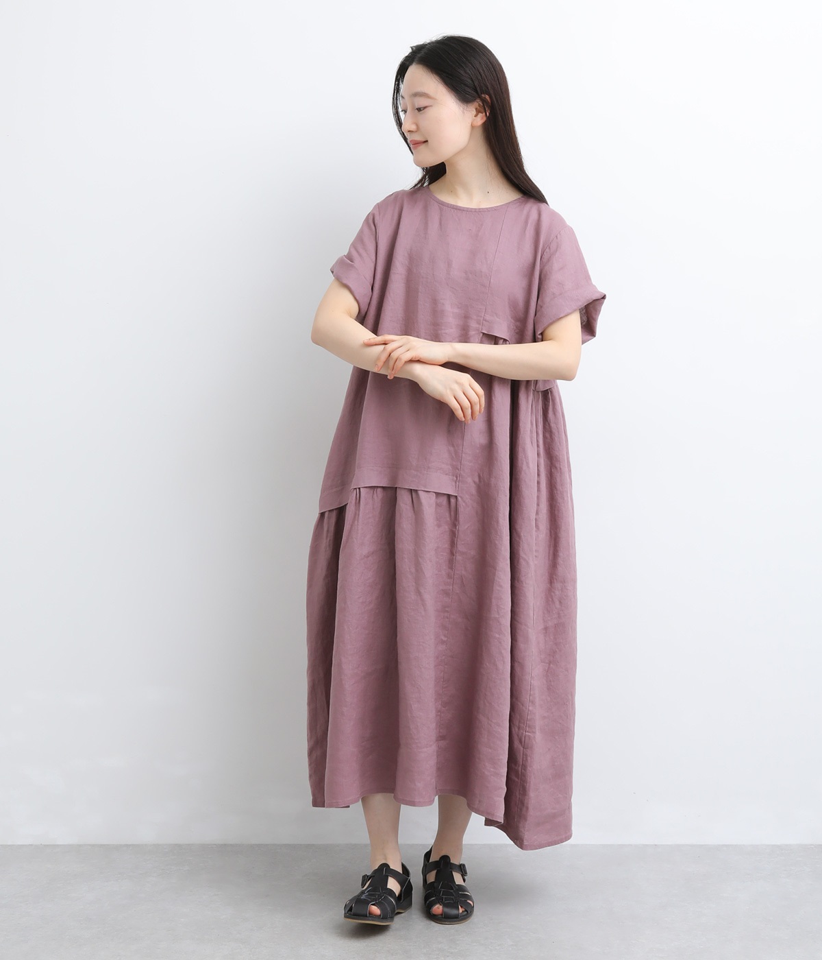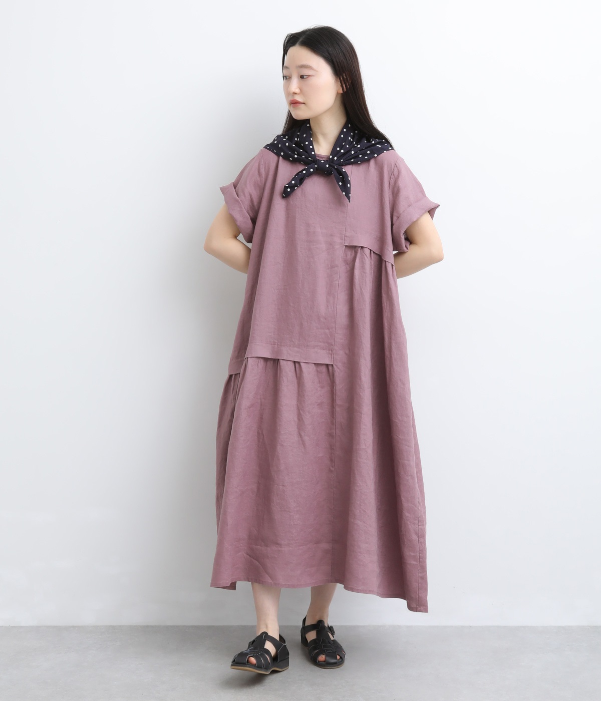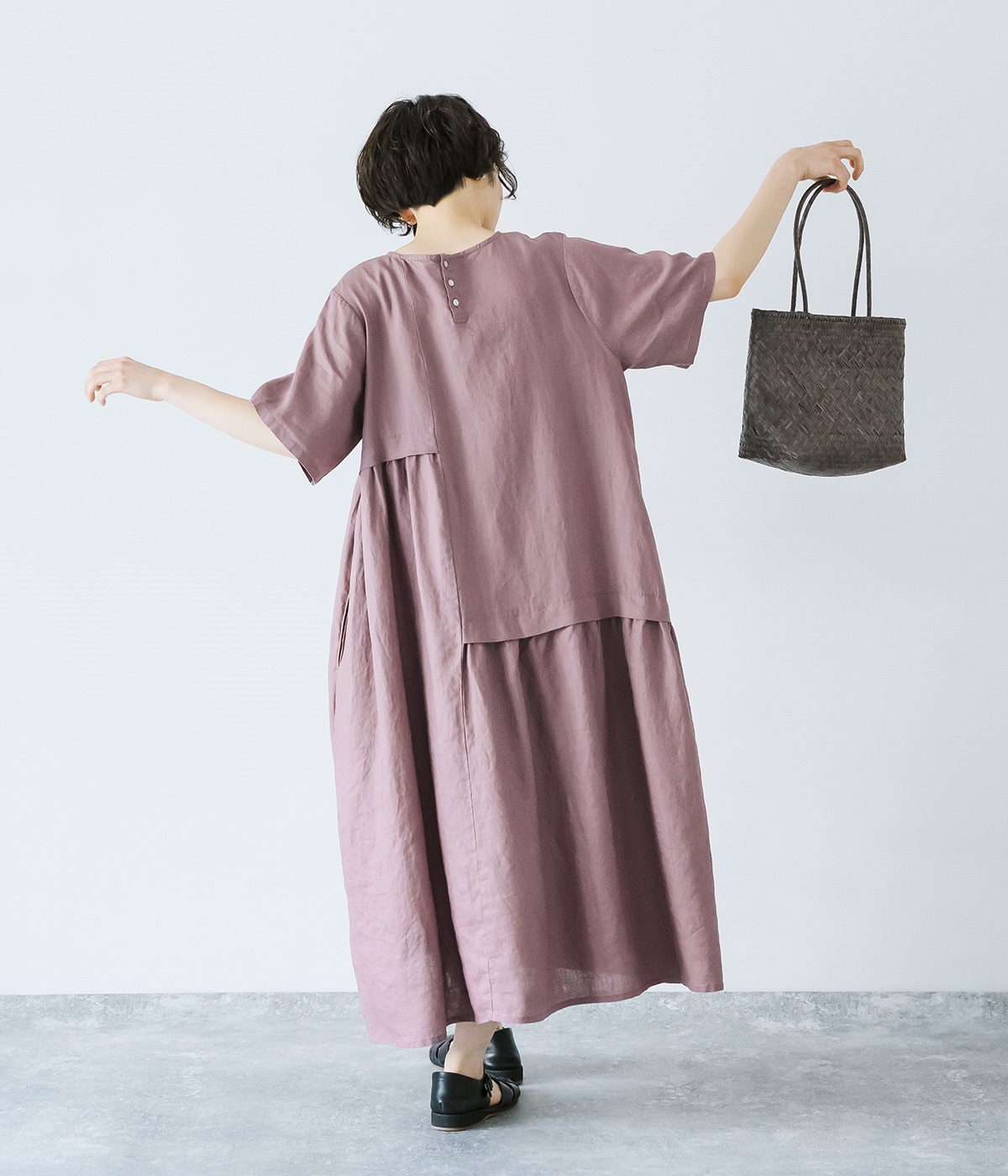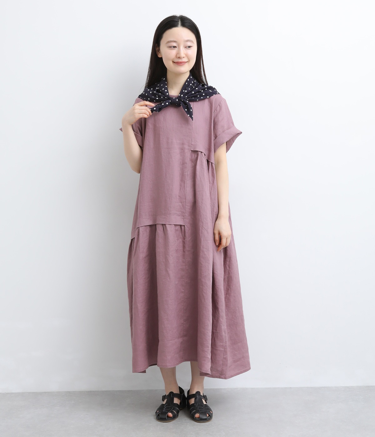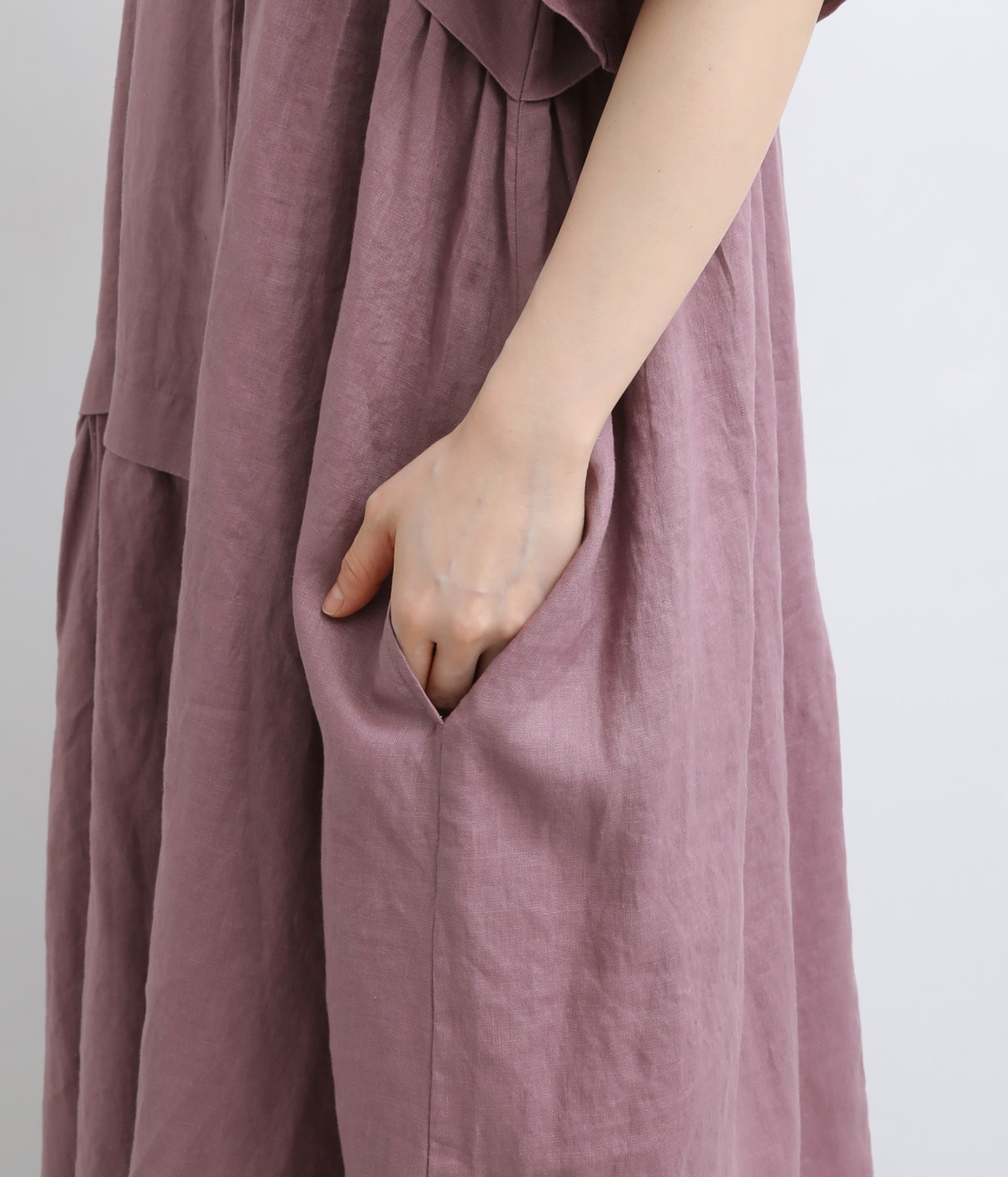 >。くすみのある絶妙な色合いが、上品な印象でコーディネートの差し色にもぴったりです。リネン100%素材を使用した、豊かな風合いも魅力的。