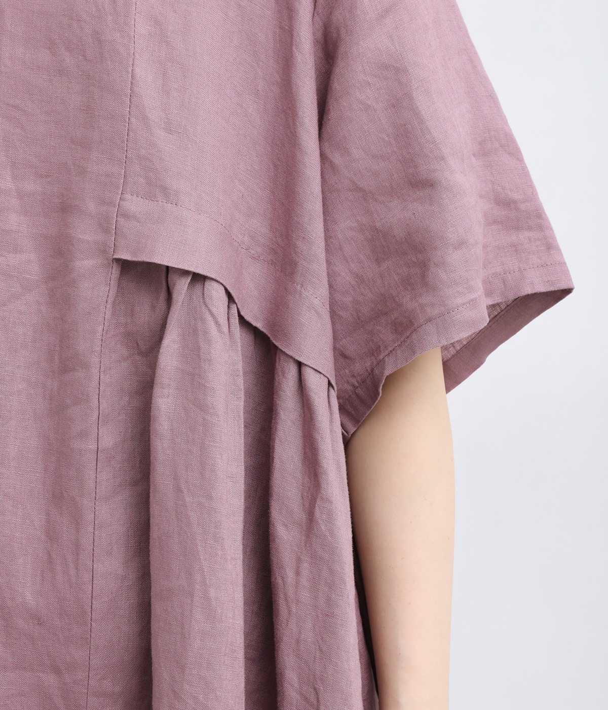 切り替えにギャザーを施した個性の光るディティールが、華やかさを引き立てます。どの角度から見ても抜かりのないデザインは、一枚でサマになるアイテムです。