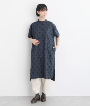 さり気ないドットジャカードで印象的に仕立てたコットン生地。ややしっかりめの風合いなので、シルエットをきれいにキープします。