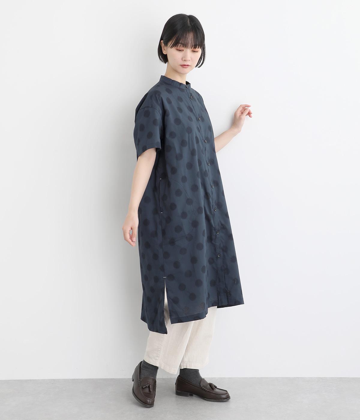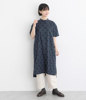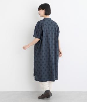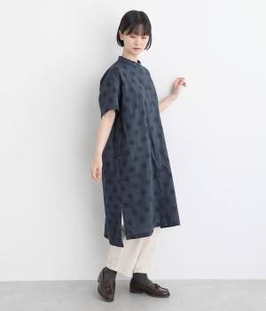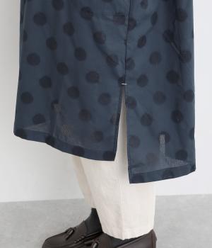 着丈に前後差をつけて長めのスリットを入れ、動きやすく仕上げました。襟は首元をカバーするように少し起こしたデザインに。丸みのあるサイドポケットが可愛らしさを演出します。ワンピースとしても羽織りとしても涼し気に着用できるので、デイリー使いに重宝。