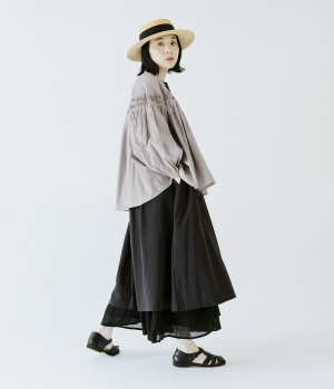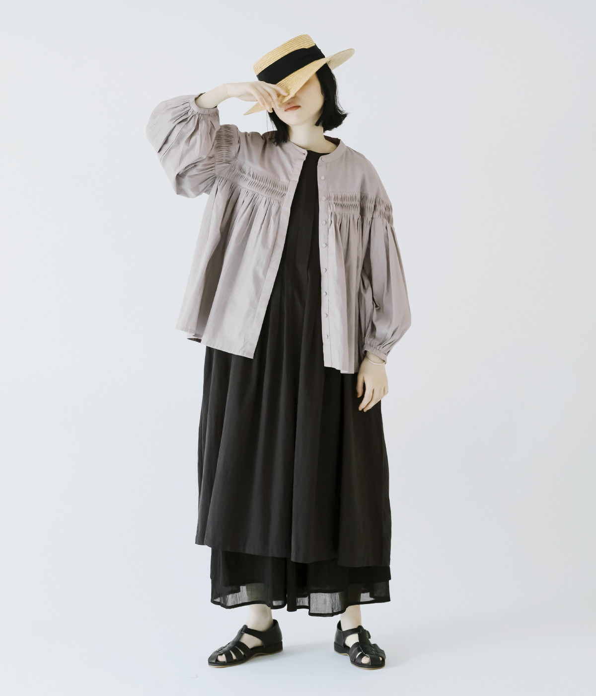 薄手で目の詰まったキャンブリック生地を使っています。さわやかに着こなせる肌当たりのいい綿麻素材。しなやかさを感じるドライな風合いで端境期から快適に合わせられます。
