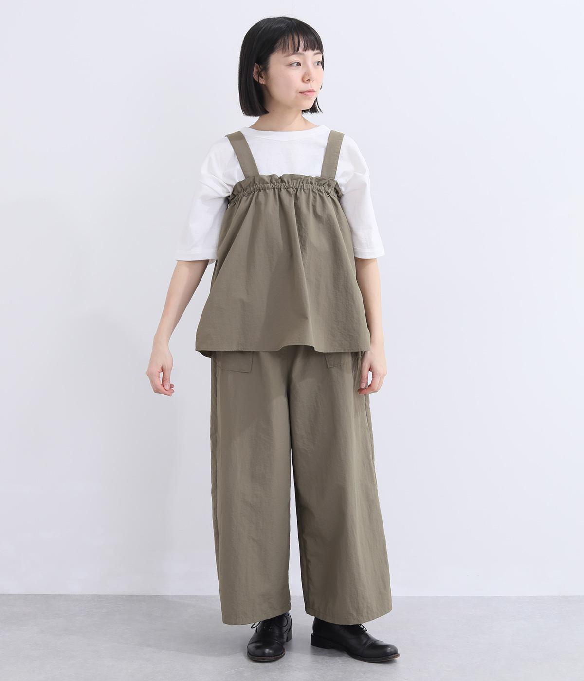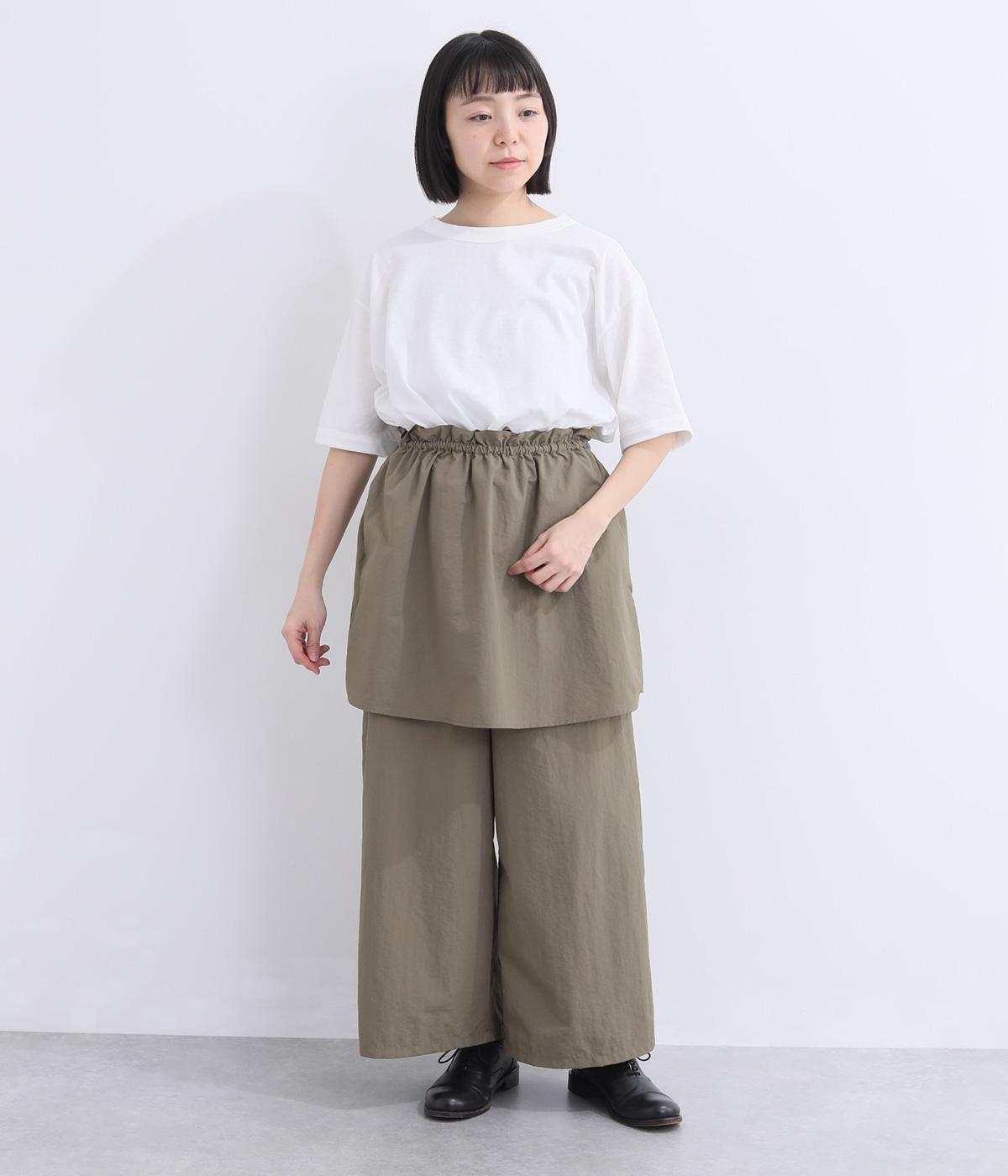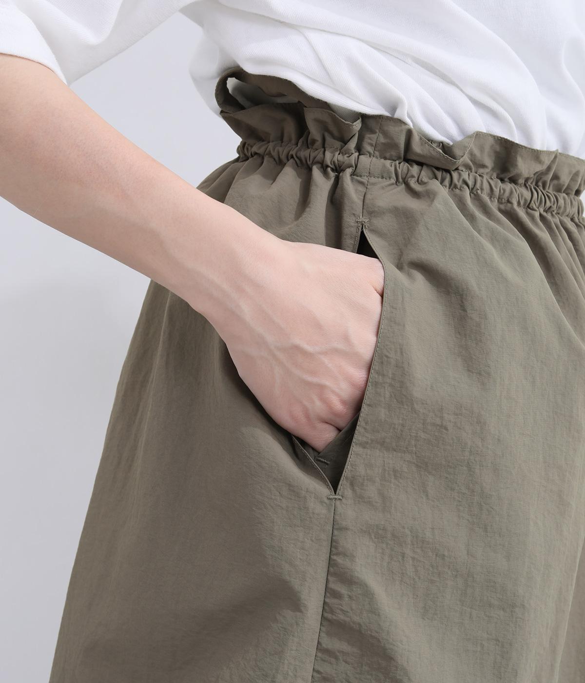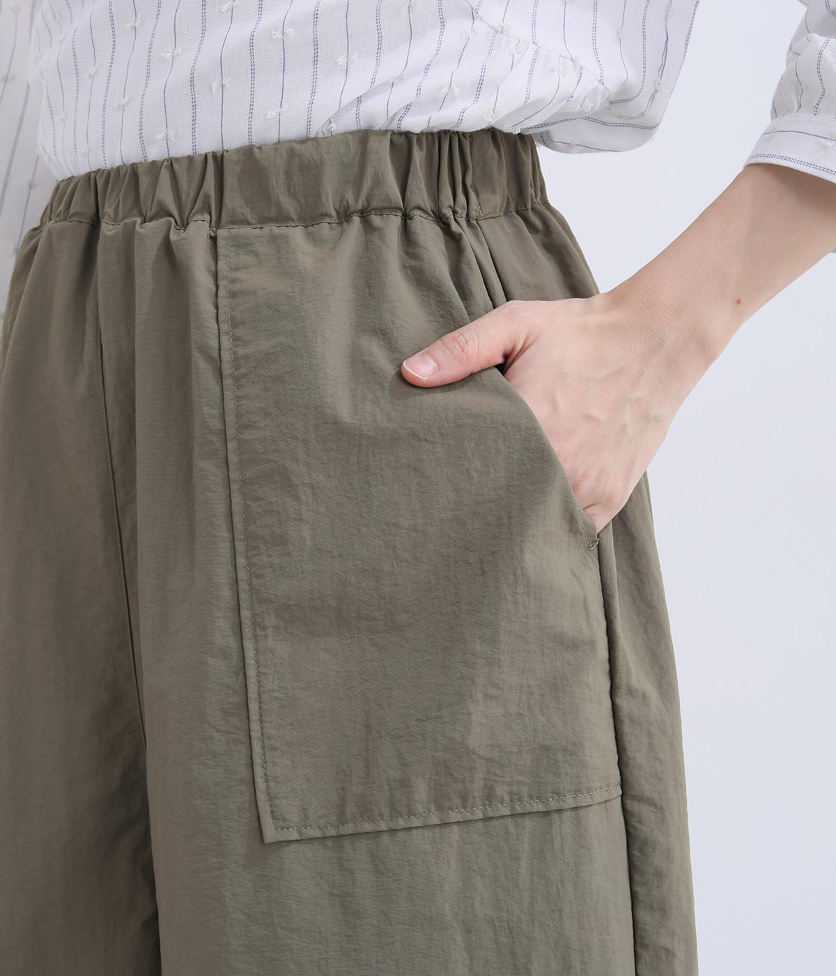 薄手でシャカシャカと軽やかなナイロン生地を使用しています。ほのかなシワ感が自然な表情を添え、軽快な穿き心地に仕上げました。日常にすっとなじむ素材です。