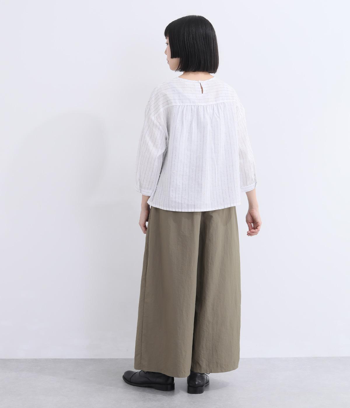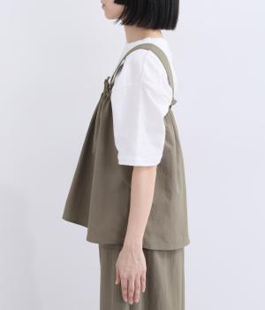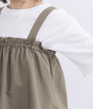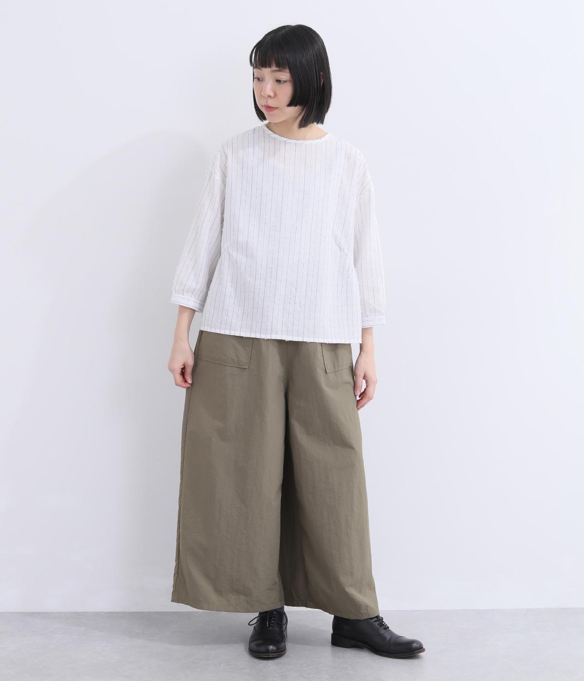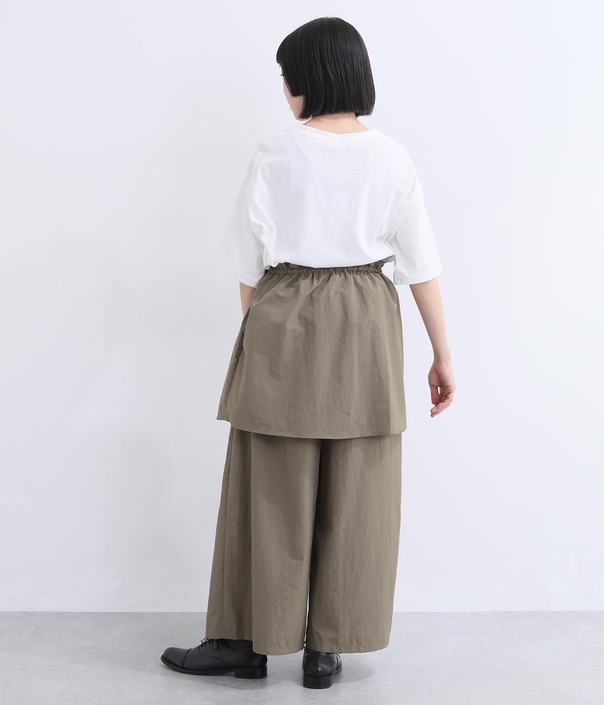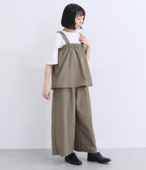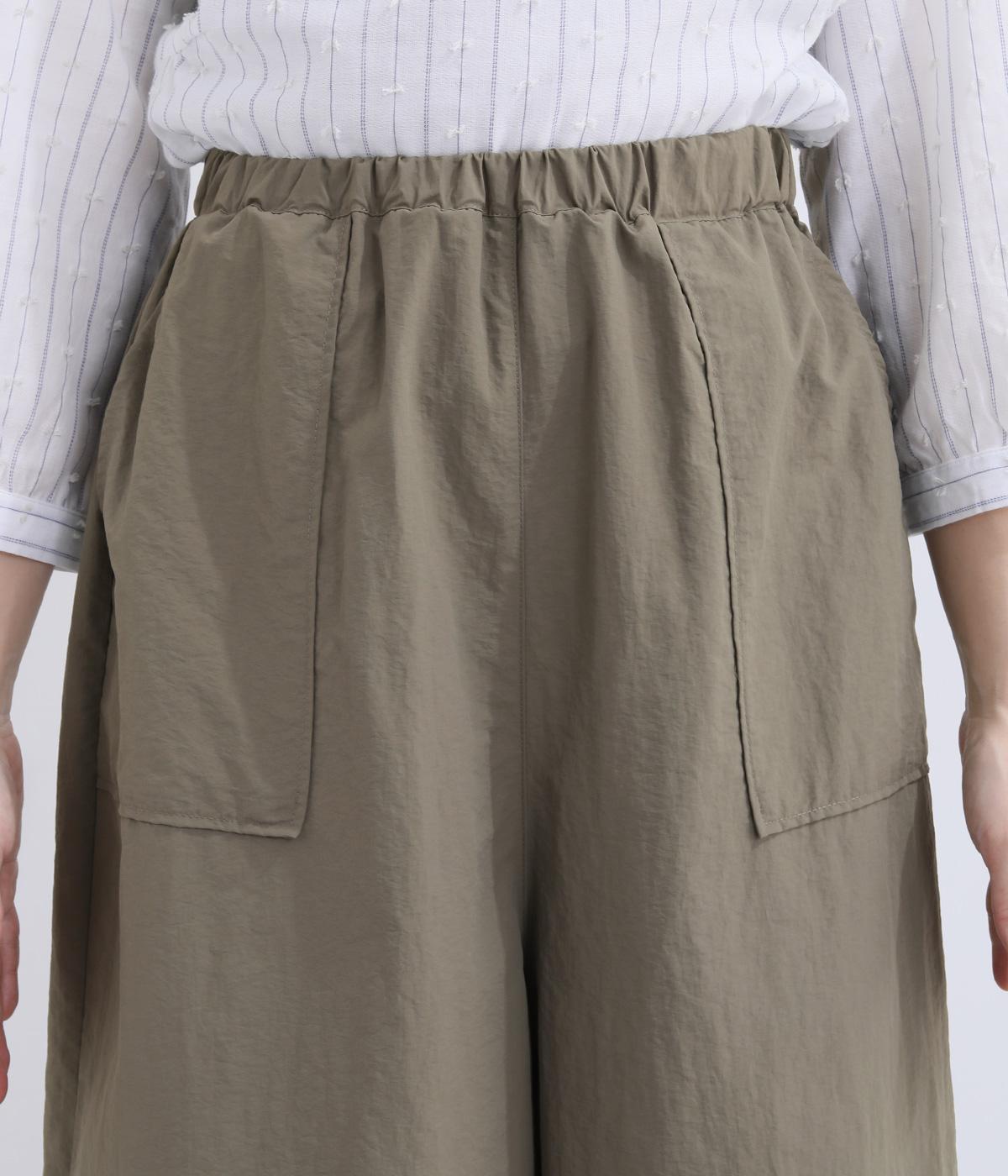 薄手でシャカシャカと軽やかなナイロン生地を使用しています。ほのかなシワ感が自然な表情を添え、軽快な穿き心地に仕上げました。日常にすっとなじむ素材です。
