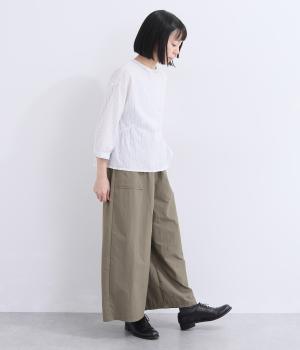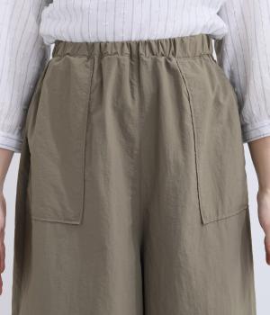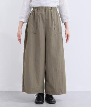カジュアルな素材感ながら、きれいめな装いにも自然となじむパンツです。ワークテイストの大きめポケットがほどよいアクセントを添えます。ウエストは総ゴム仕様で、リラックスした穿き心地に仕上げました。
