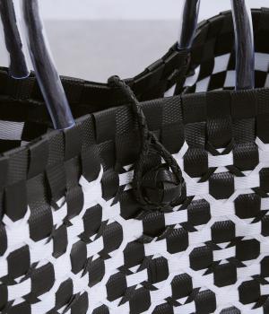 インドネシア語で市場を意味するパサール。バリの買い物バッグを華やかさのあるダイヤ柄で仕立てました。印象的な見た目と、見た目以上に収納力があり日常使いにも便利です。ボタン付きで中身の飛び出しを防ぎ、軽やかに持ち運べる仕上がりです。
