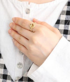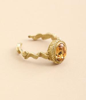 二つの音を交互に奏でる奏法であるトリルから着想を得た、波打つリボンが印象的なリングです。軽やかな旋律を思わせるフォルムに、繊細な陰影ラインをあしらいました。中央にはシックなブラウンのカットガラスを配し、上品なきらめきを添えています。