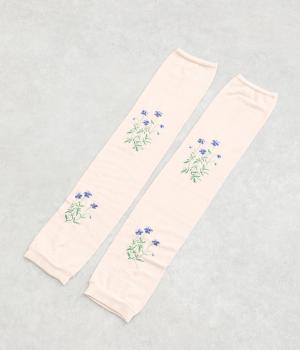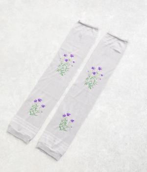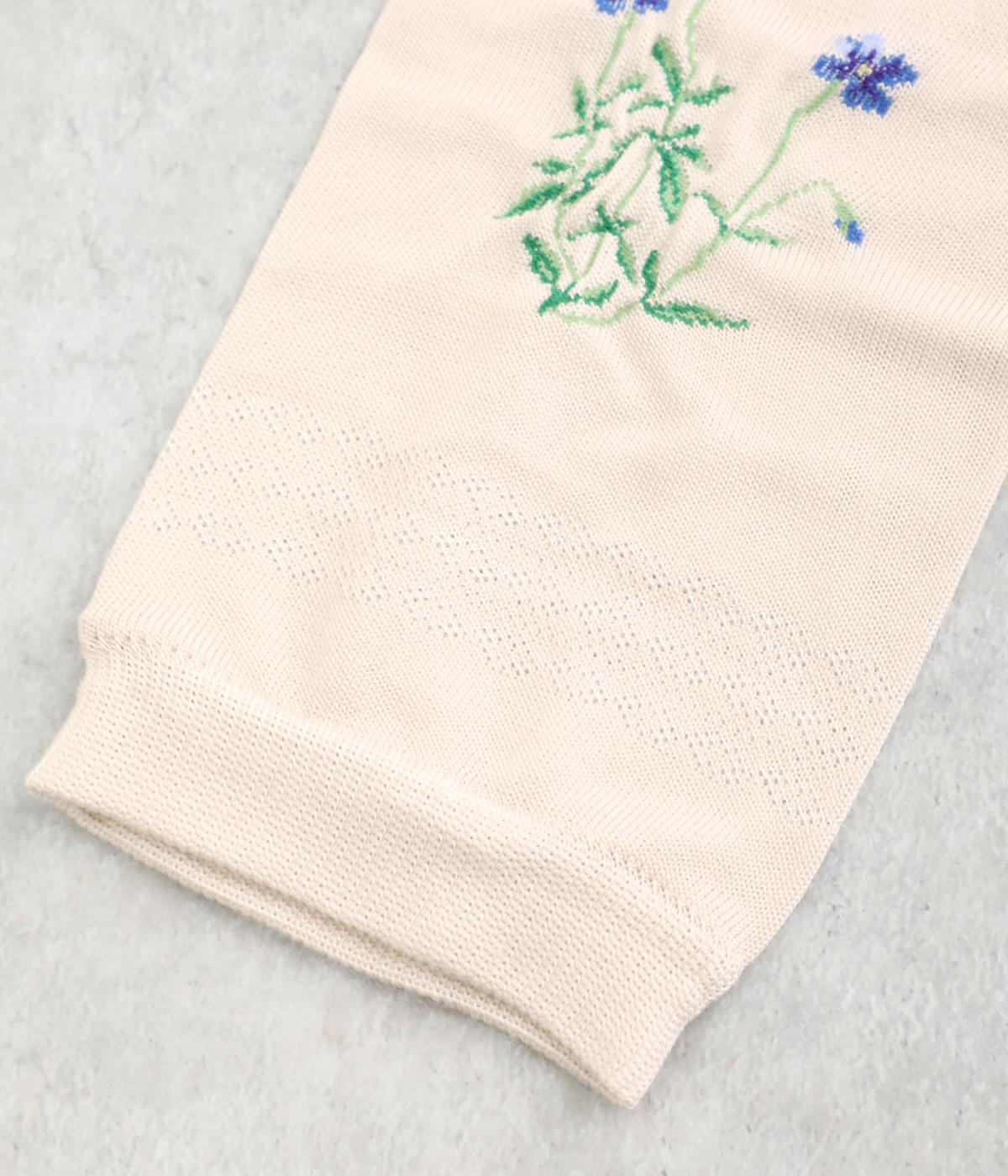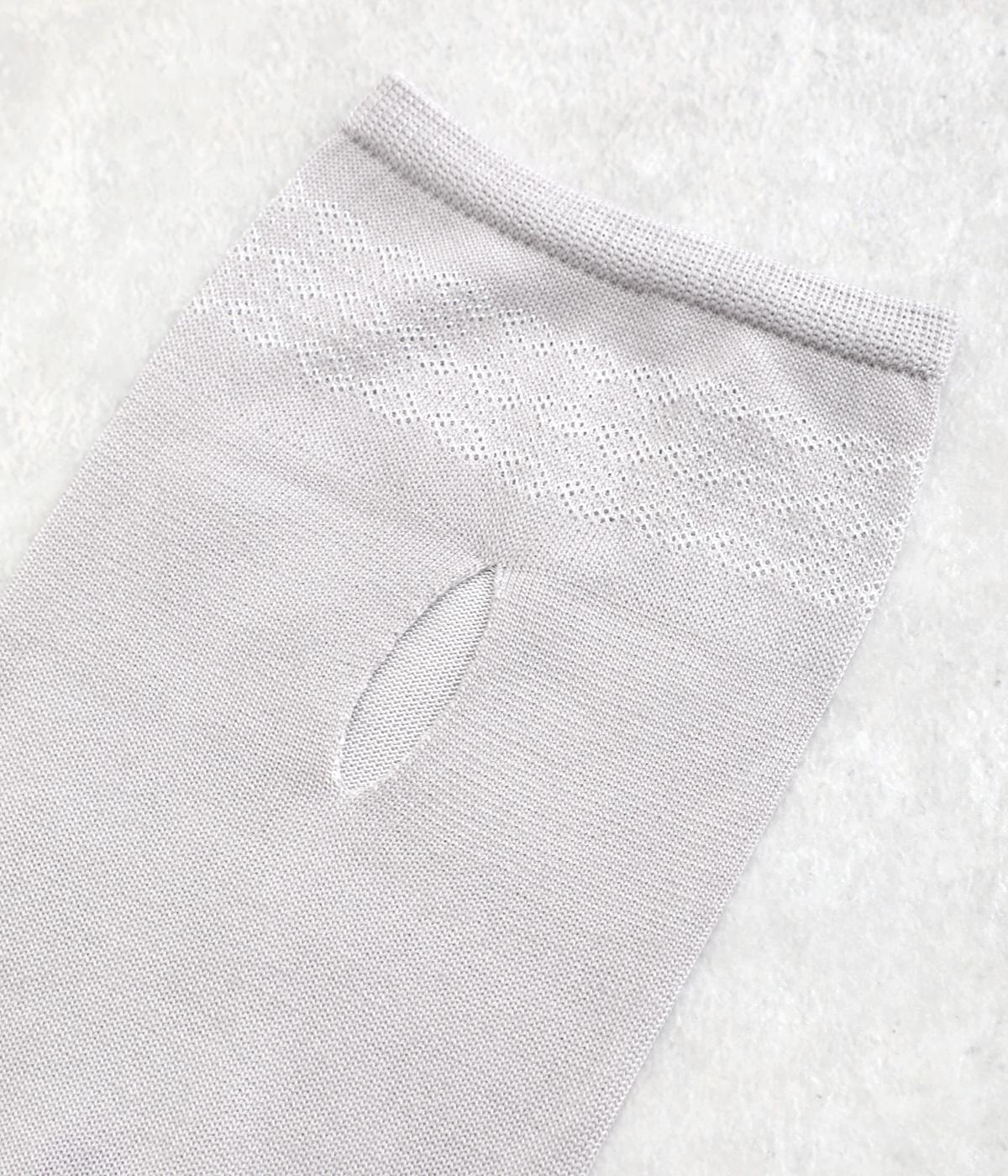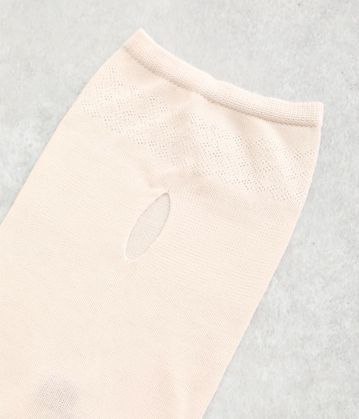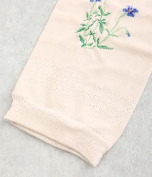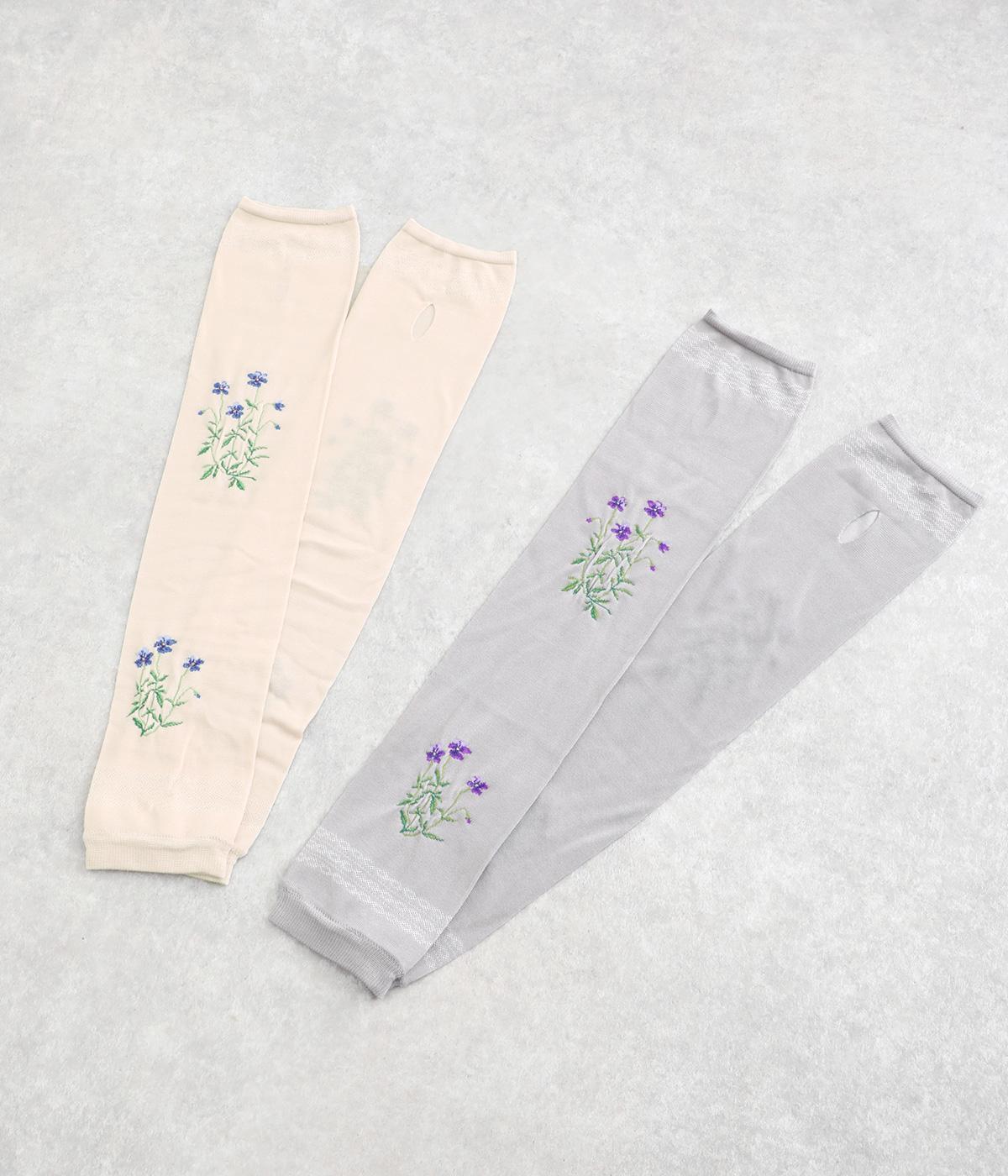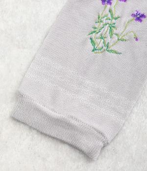 ビオラ柄がやわらかな彩りを添えるアームカバー。手元にはダイヤ柄の透かし模様をあしらい、軽やかな抜け感をプラスしました。ひんやりとした素材で暑い季節も快適に、二の腕までやさしくカバーします。