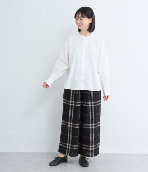 さらりとしたドライタッチな質感が心地よいコットンリネン生地を使用しています。使い勝手のいい薄めの中厚手生地で、レイヤードするなど長く着まわせます。