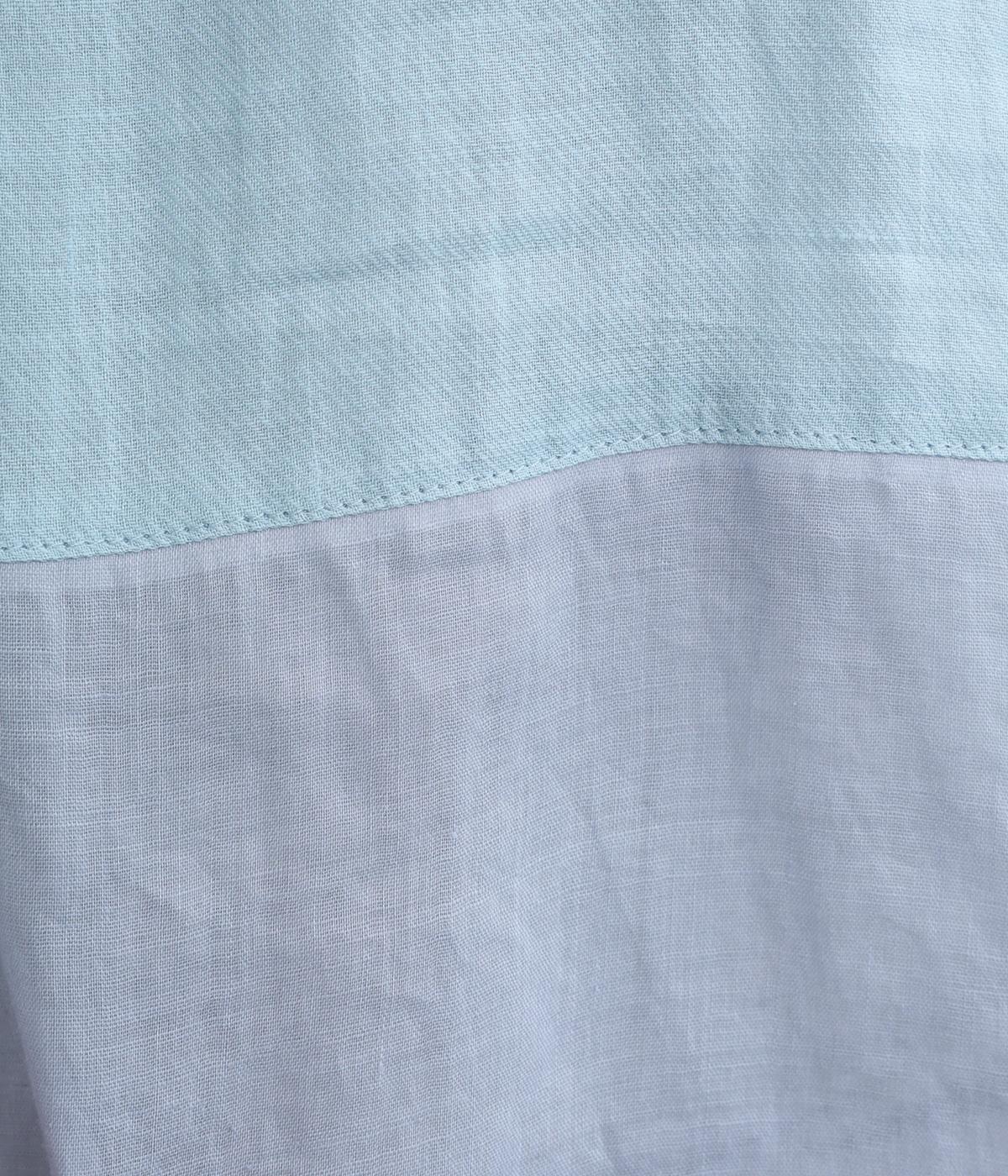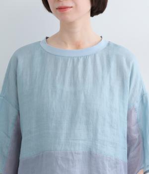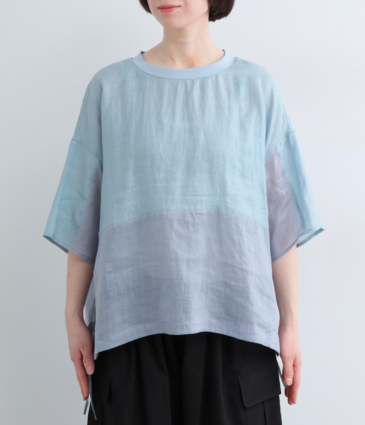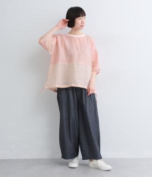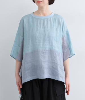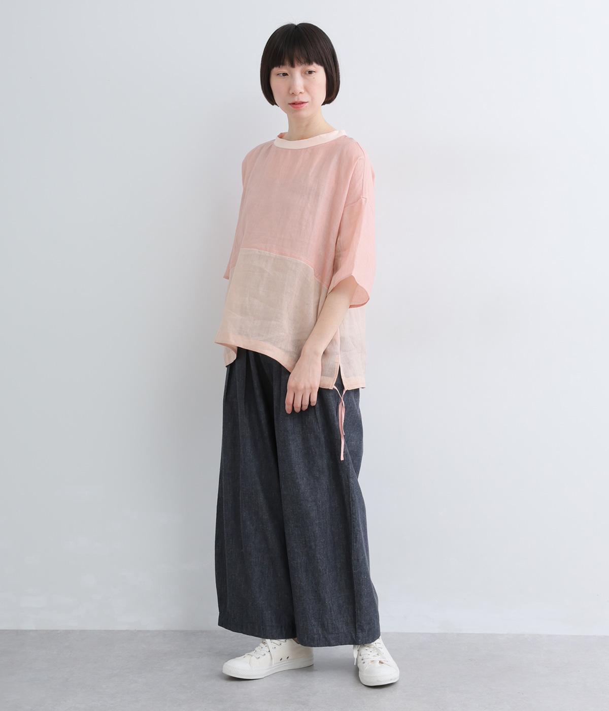 ドライでコシのある質感が特徴的なラミーツイル生地を使用しています。わずかにグラデーションをきかせた切り替えコンビがさり気なく表情をプラス。