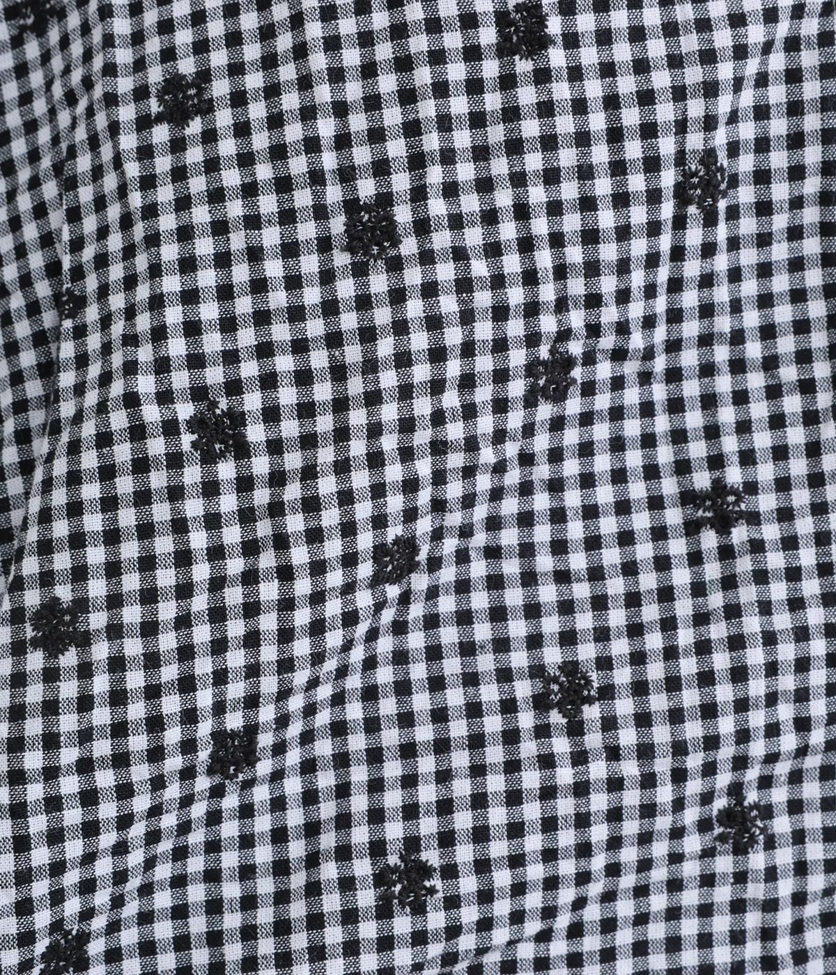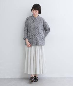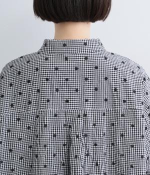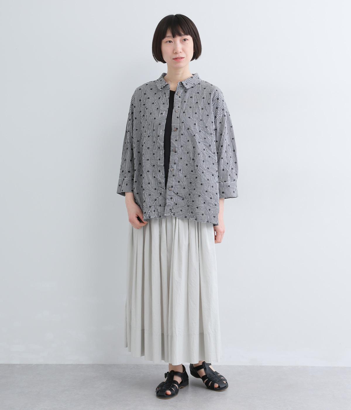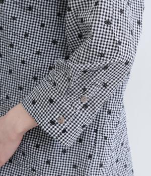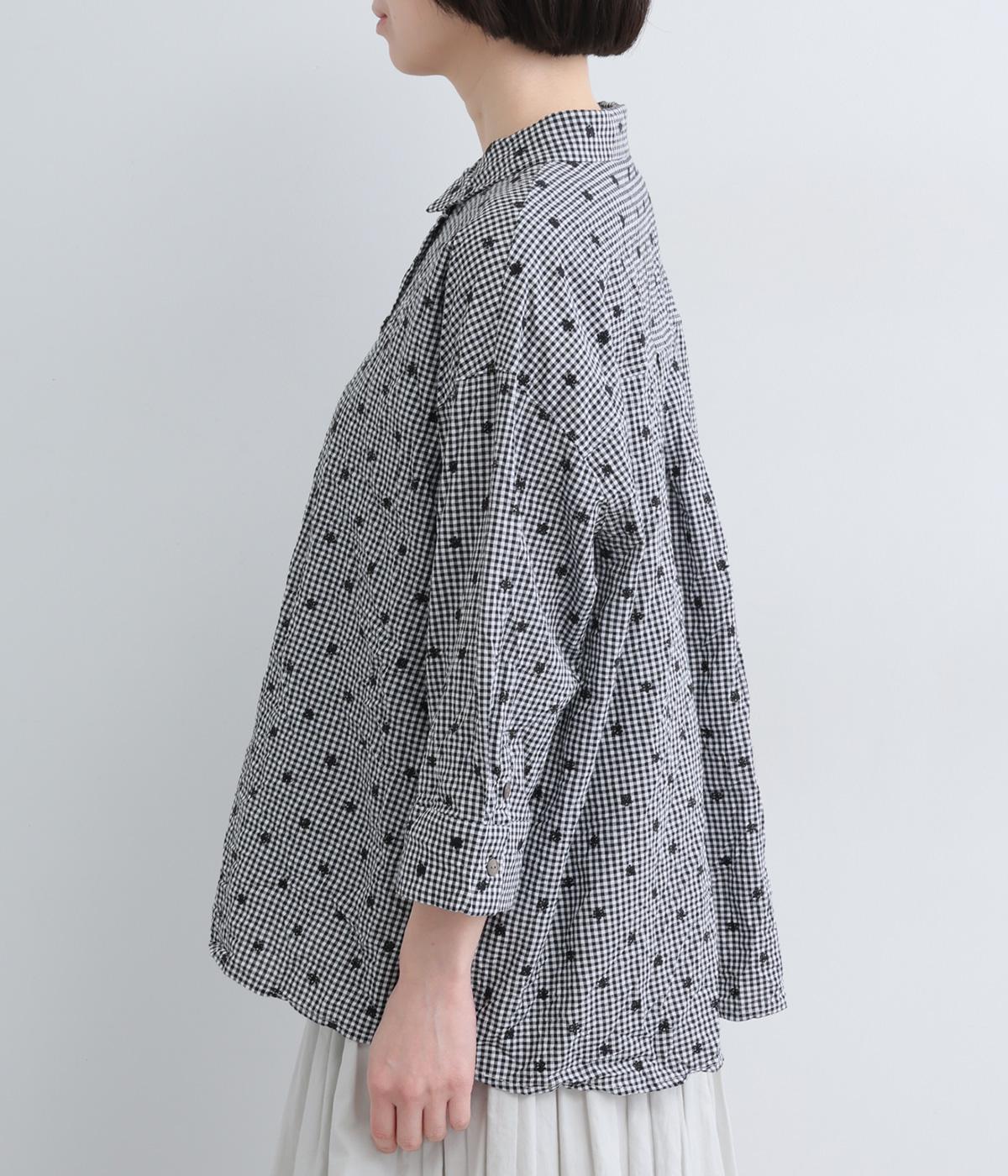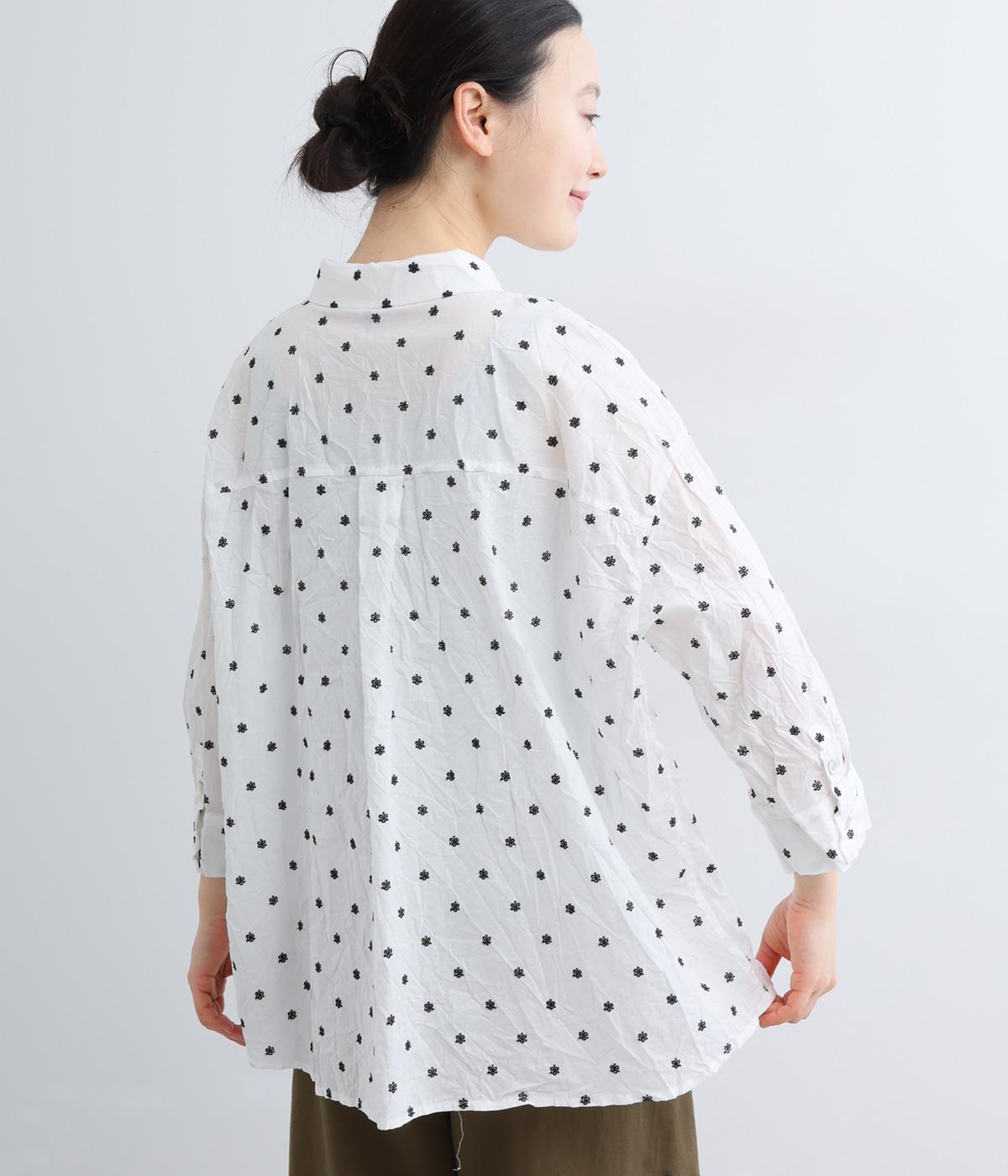 ナチュラル感が魅力のコットン生地に刺しゅうを加えてより着映え力を高めた一枚。ベーシックな襟つきシャツもワッシャー加工によっていつもとはちがった表情を魅せます。手首をすっきり見せた7分袖は折り返しても◎。きらりと光るシェルボタンがポイントに。
