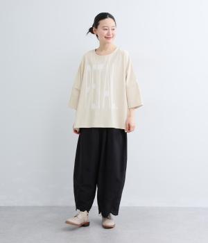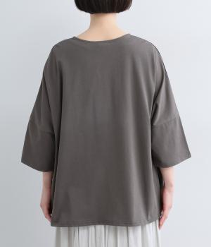 接触冷感のコットン天竺生地を使用しています。やわらかな風合いのコットンにひんやりしたタッチが重なり、汗ばむ季節でも快適に着用できる生地感です。