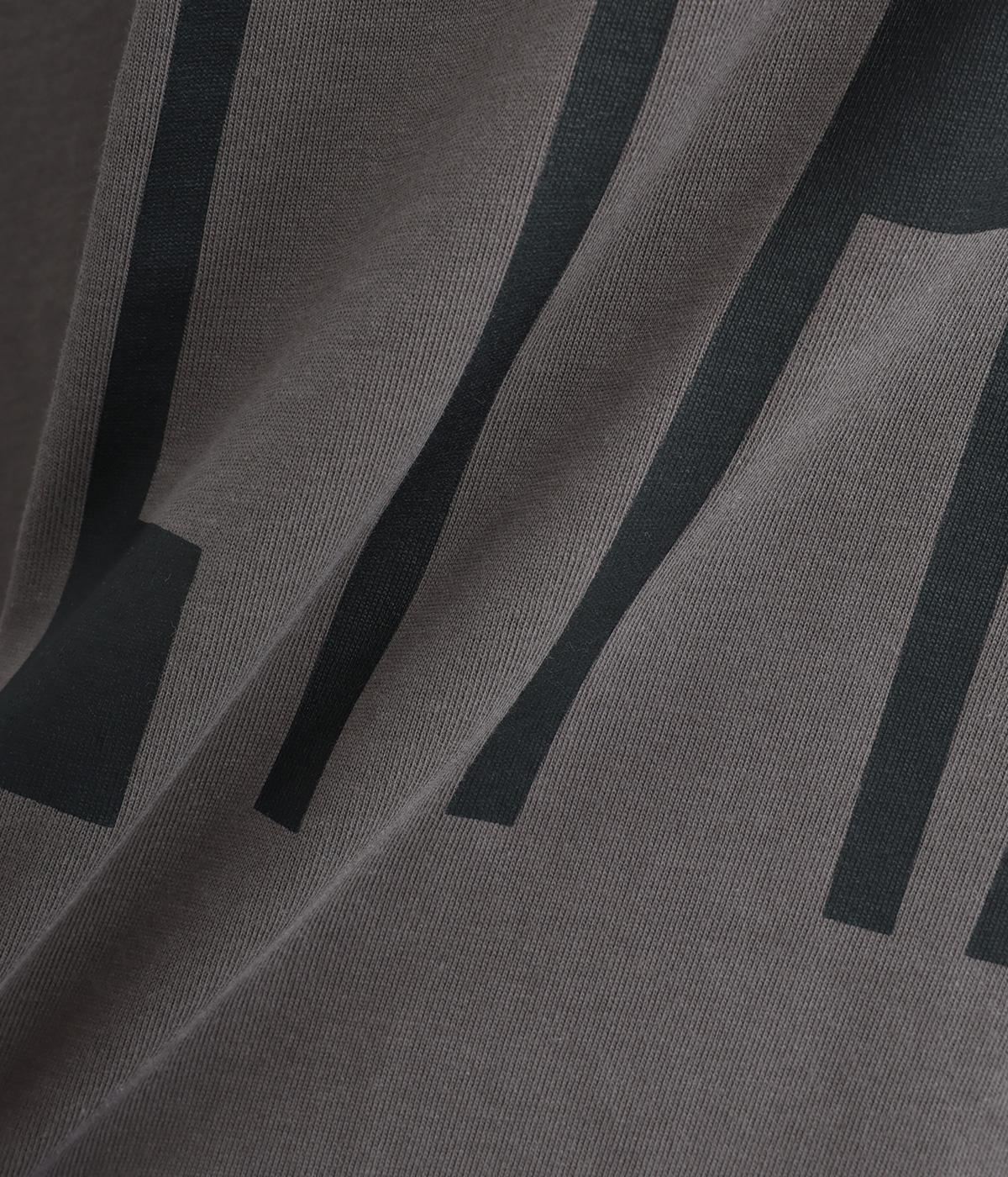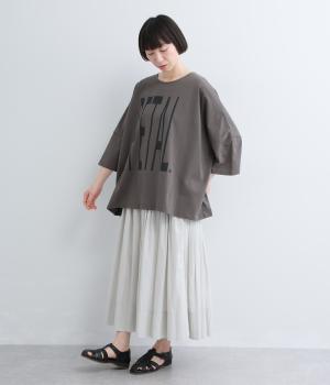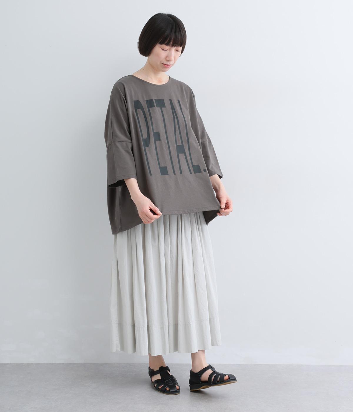 体のラインを拾いにくいゆったりとしたオーバーサイズのTシャツ。インパクトのある大きなプリントはグラデーションを意識した配色で、ラフだけど手抜きに見えない大人な雰囲気に仕上げました。