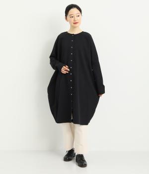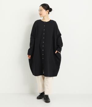 自然な立体感やさり気ないドレープが存在感を発揮するチュニックワンピース。ボタンあきを前後でたのしめる2way仕立てで羽織り使いも◎。アイキャッチになりながらもデザインはシンプルで着まわしもききます。袖口は折り返すのもおすすめ。