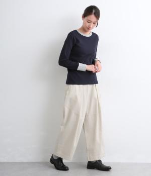着用初期からはきやすいやわらかく軽やかなデニム生地を使用。ナチュラルとネイビーは染料を使用していないので色移りの心配がなく、サックスはインディゴ染めならではの経年変化がたのしめます。