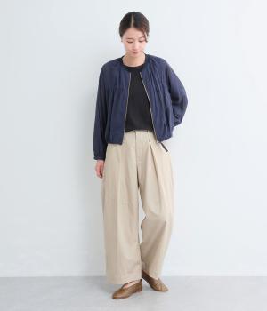 吸水性や吸湿性に優れたセルロースとコットンとの混紡生地を使用。やわらかくなめらかなタッチが心地よく、ほのかな光沢が品のよい印象を与えます。