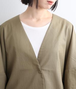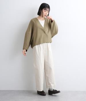 再生繊維とコットンの混紡糸を使用した、ほどよい光沢感と上品な質感が魅力の素材です。さらりとしたやさしい肌ざわりで快適な着心地。
