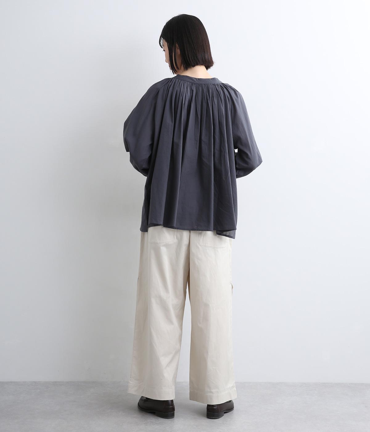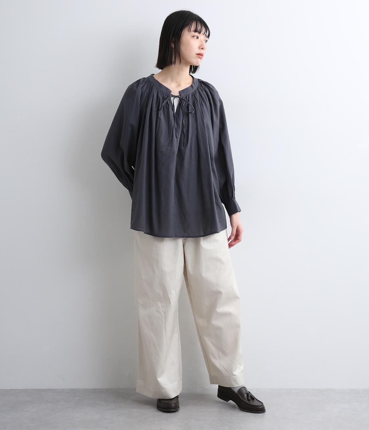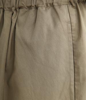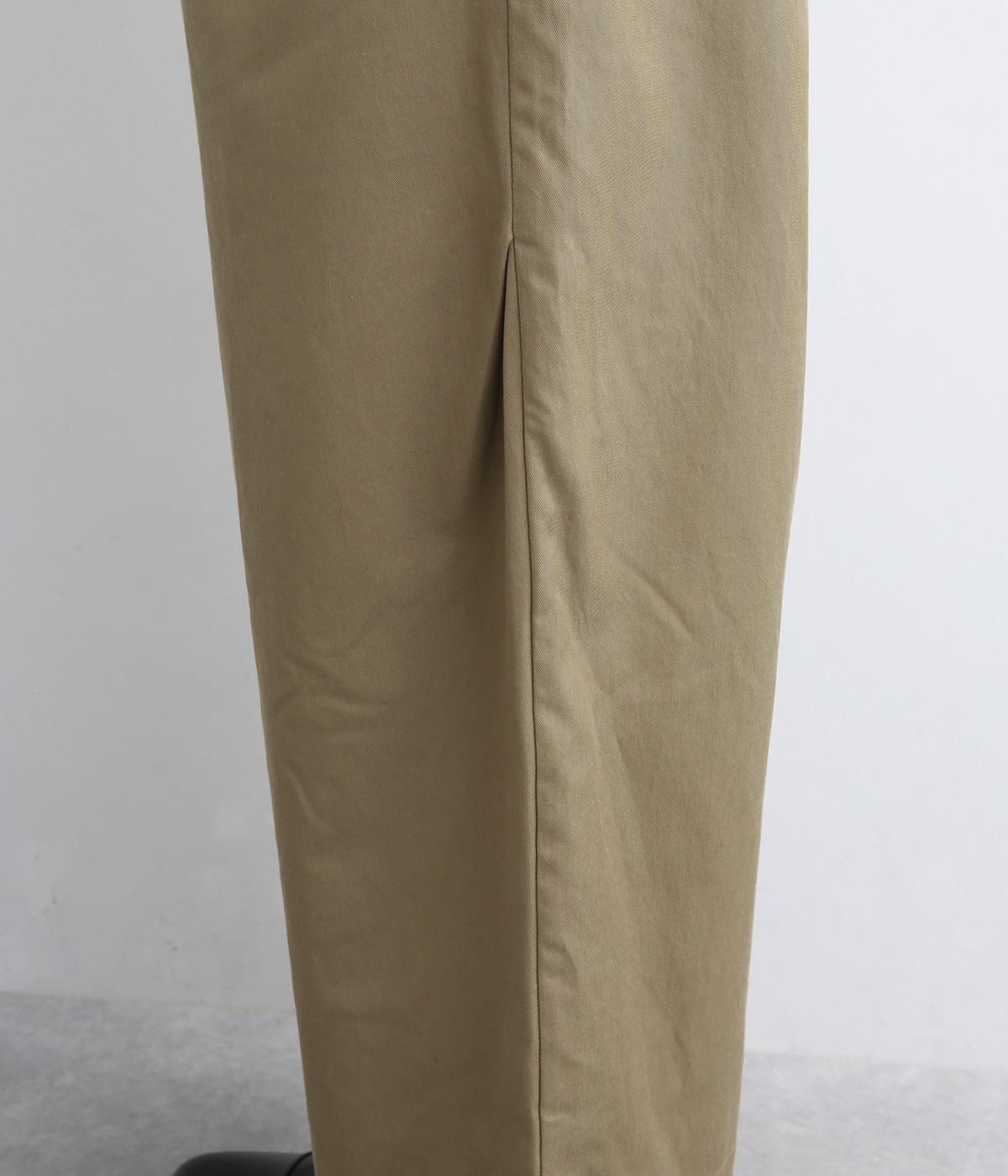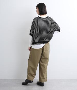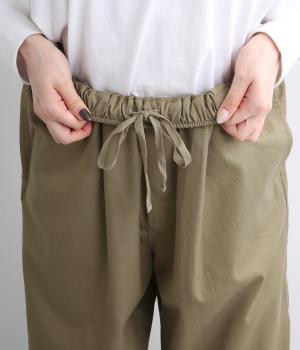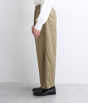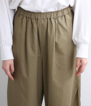 サイドシームの膝部分にタックを入れて、立体感を出したシルエットがポイントのパンツです。きれいめな素材のため、普段使いからお出かけシーンまで幅広く対応。ウエストはゴムと内紐が通っていて楽に着用できます。
