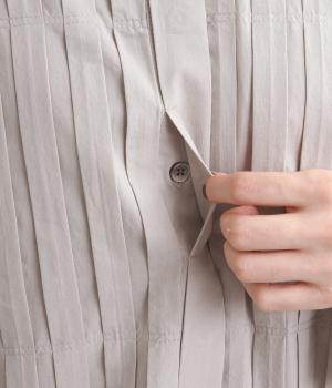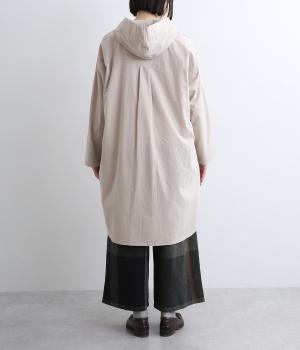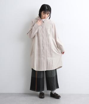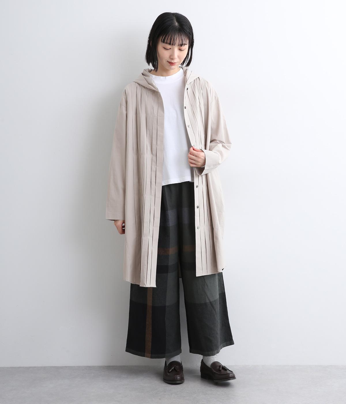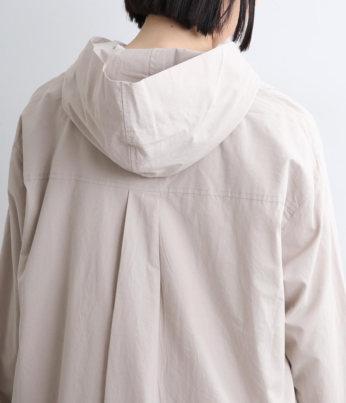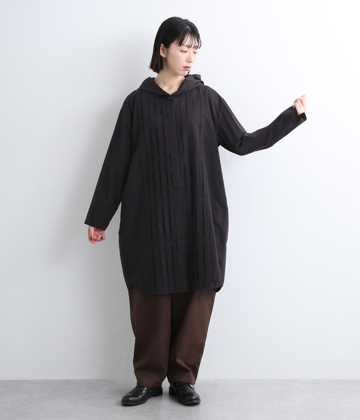 フロントにタックを入れて立体感を出したディティールがポイントのシャツです。前ボタンあきで羽織りとしても重宝する一枚。フードつきは大人カジュアルなライトアウター感覚で着用できるアイテムに。