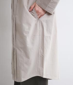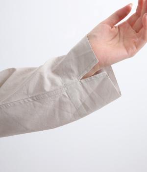 ハリのあるコットンブロード素材を使用しています。ほんのりと光沢のある表面感が上品な雰囲気をかもし出します。ドライタッチでやわらかな質感も魅力です。