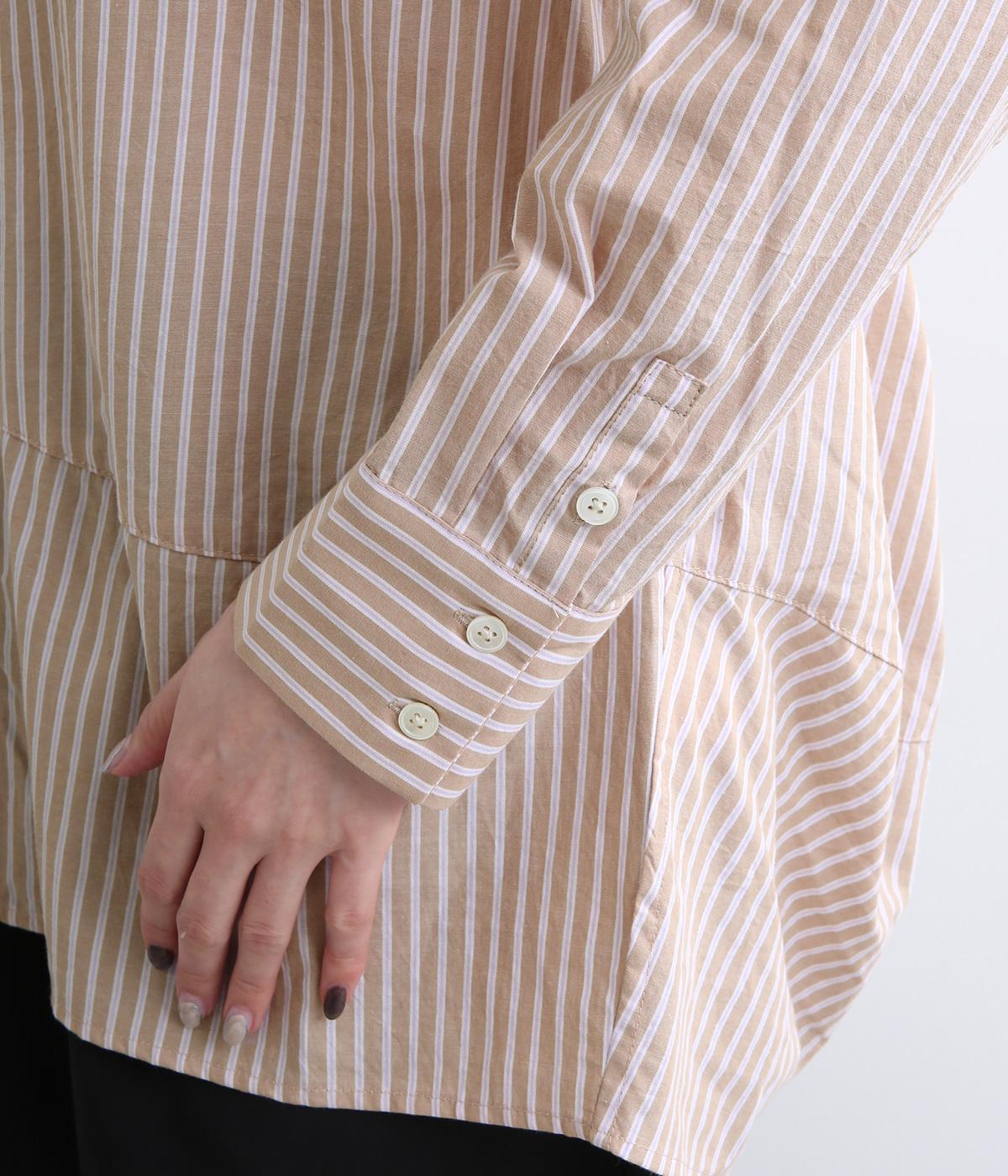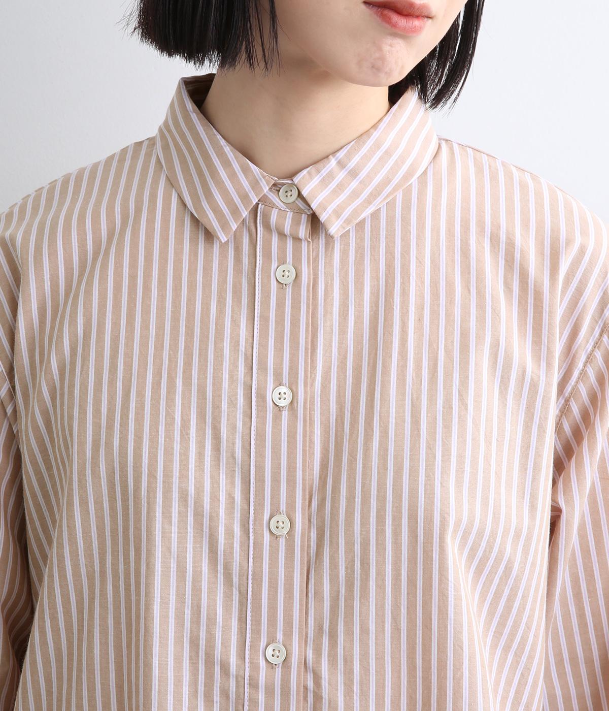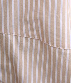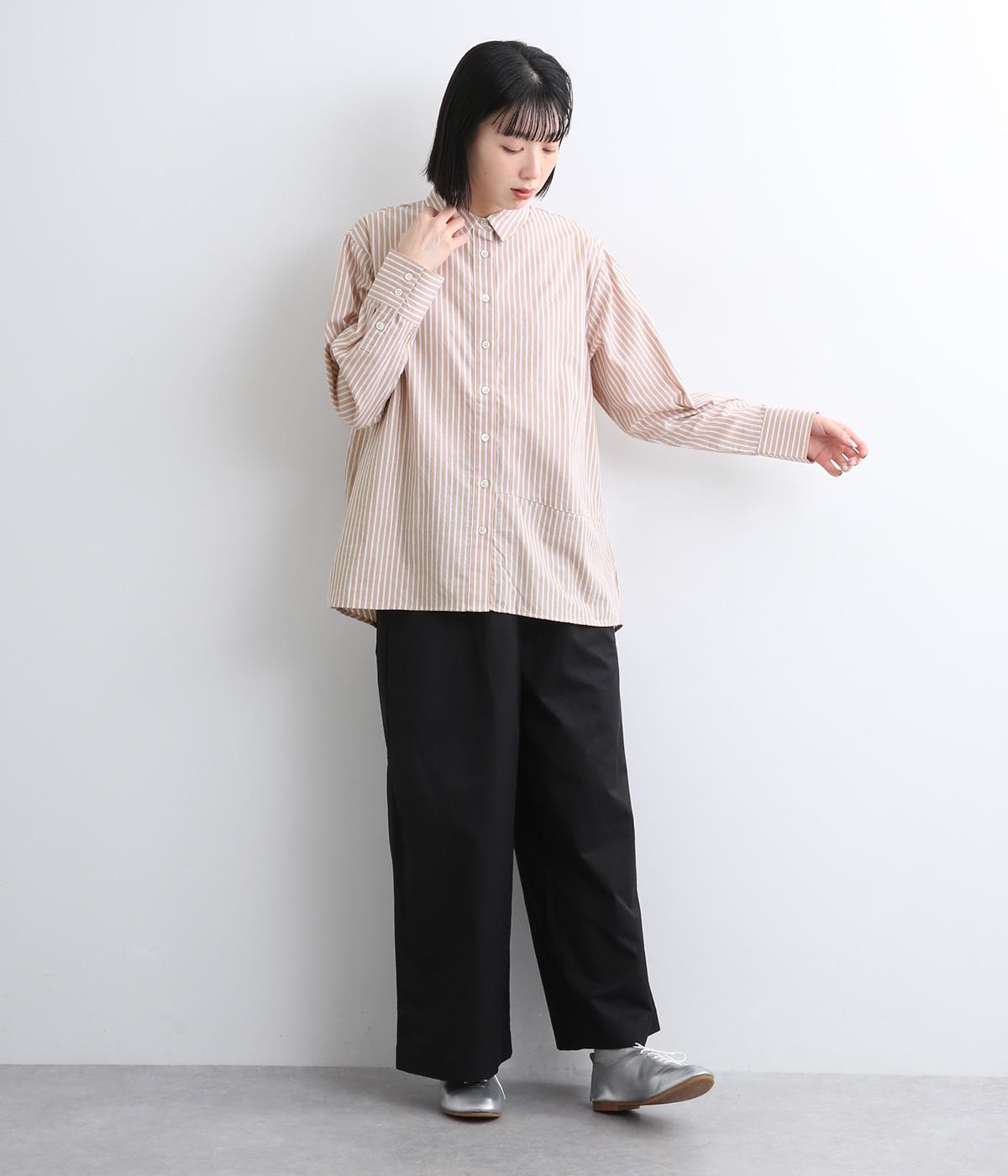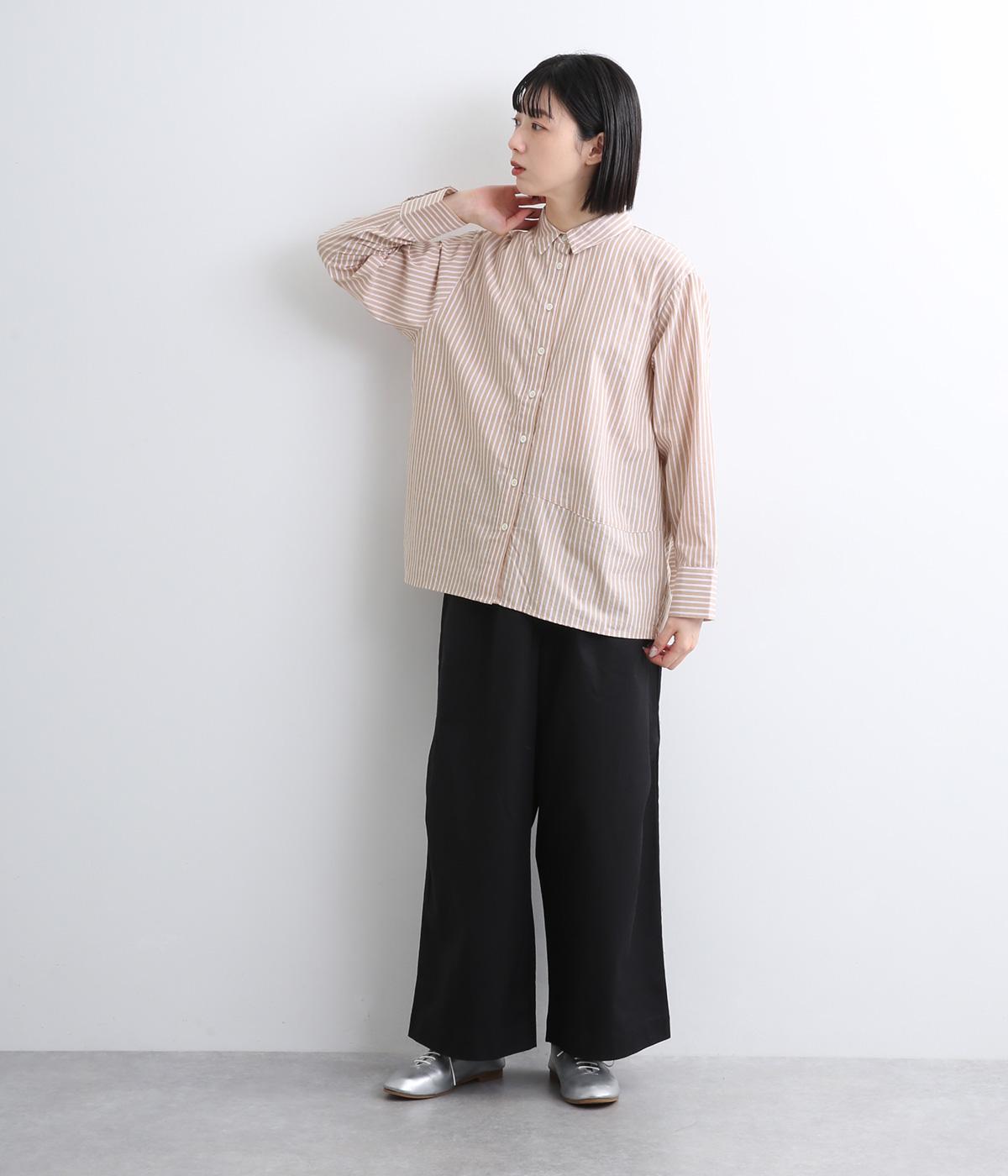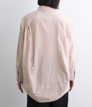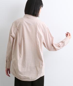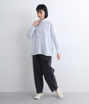 しなやかで肌ざわりのよい、ストライプ柄のコットン素材を使用しました。厚手すぎず、軽やかな着心地がロングシーズン着まわしできるポイントに。