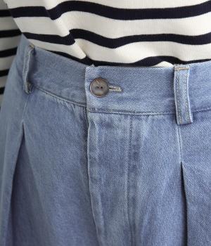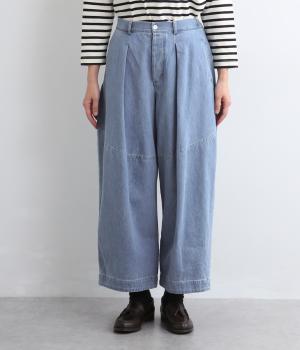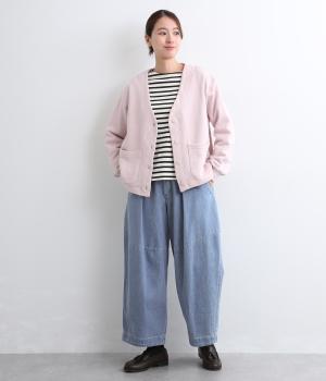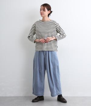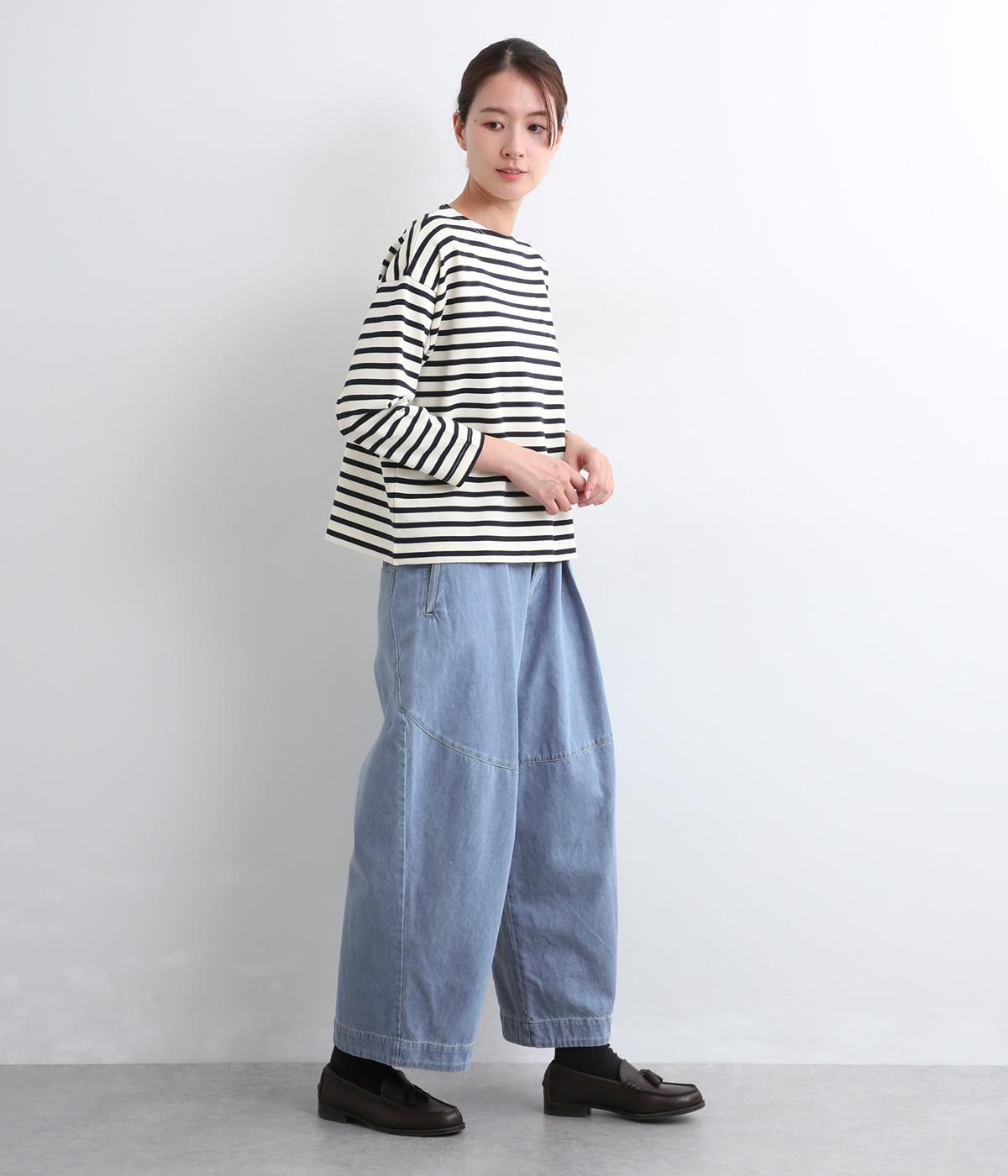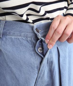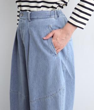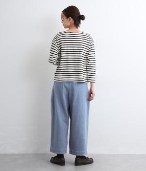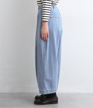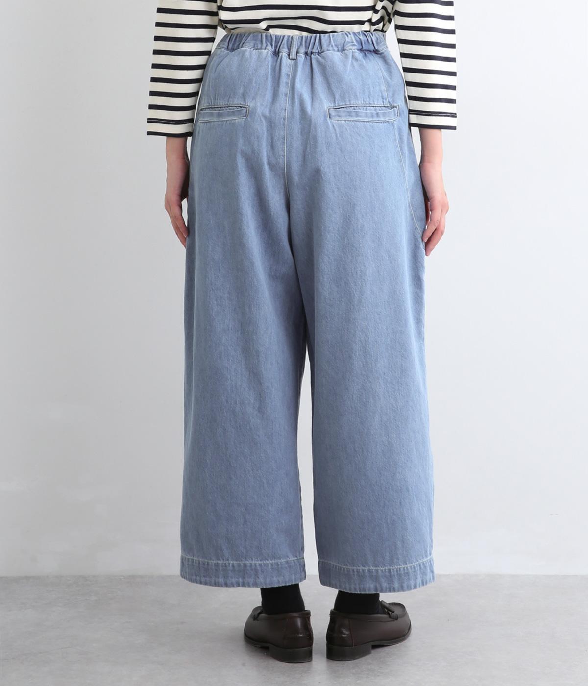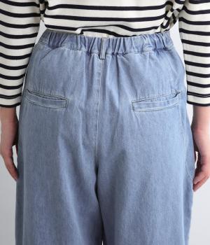 着用初期からはきやすいやわらかく軽やかなデニム生地を使用。ナチュラルとネイビーは染料を使用していないので色移りの心配がなく、サックスはインディゴ染めならではの経年変化がたのしめます。