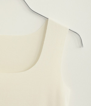 一枚持っていると季節を問わず重宝する人気のスクエアネックタンクトップです。フライス素材ならではの伸びの良さがあり、ほどよくフィットしたきれいなシルエットが◎。裁ち切りの襟ぐりや袖口で上に着用する洋服にひびかず、すっきりときれいに着用できます。ボトムインしやすい長め丈とベーシックなカラーもうれしいポイント。
