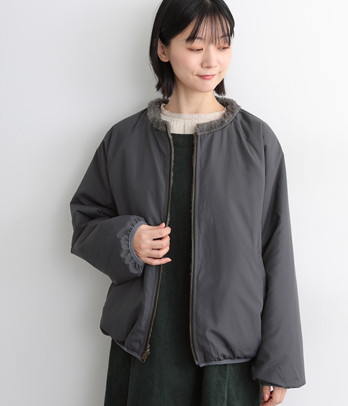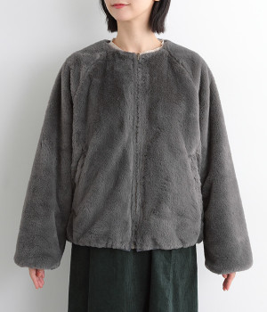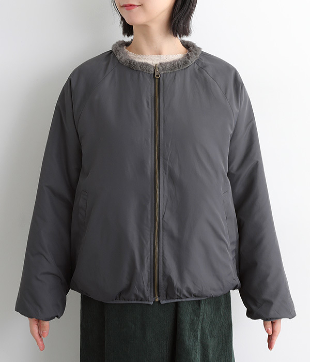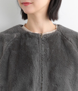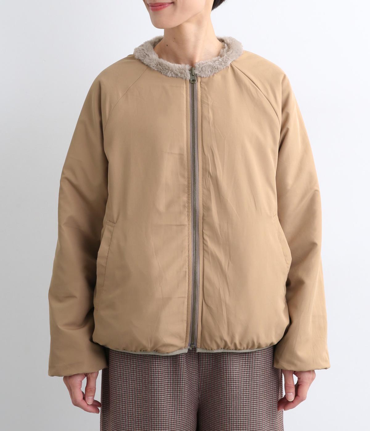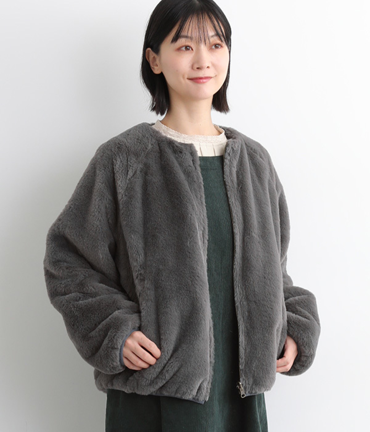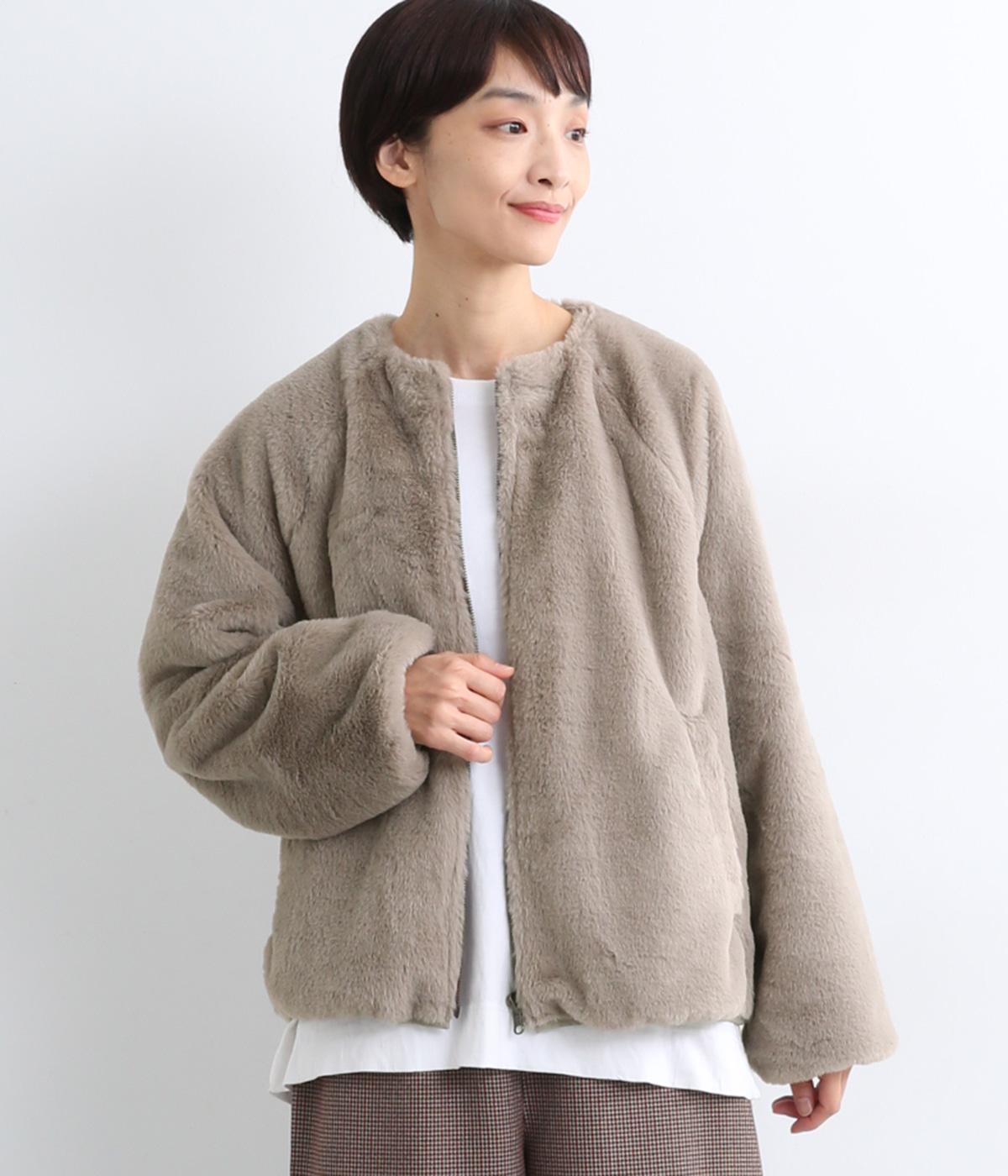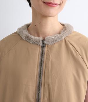 あたたかみのあるファー素材と、大人らしいフラットな生地を気分に合わせてたのしめるリバーシブル仕様のブルゾン。さらりとした生地面を表にして着用するとネックからファーが覗きます。どちらの面にも便利なポケットをつけました。