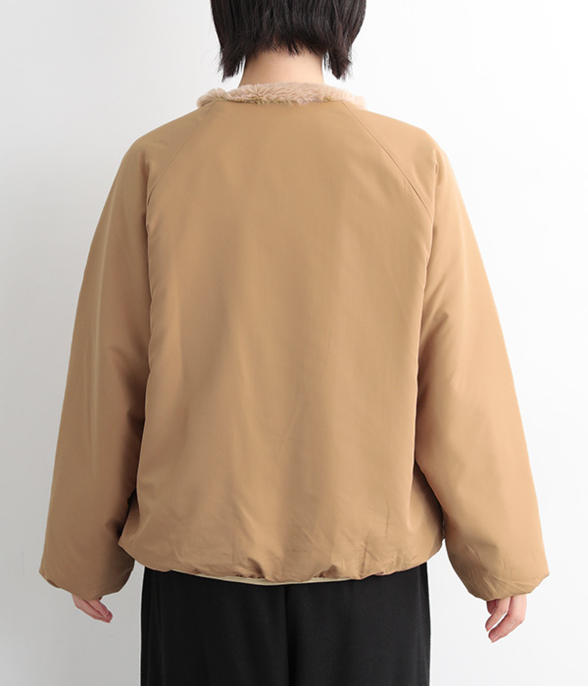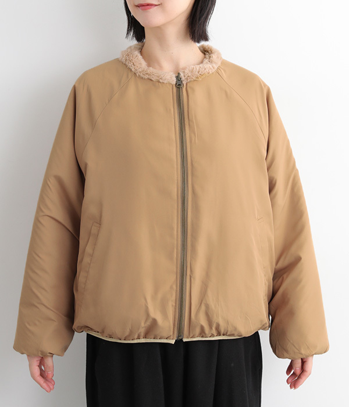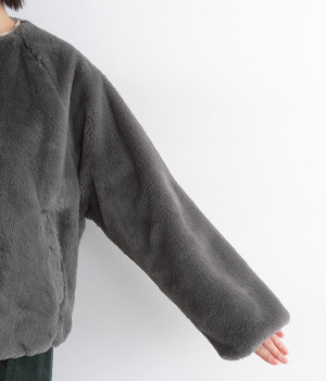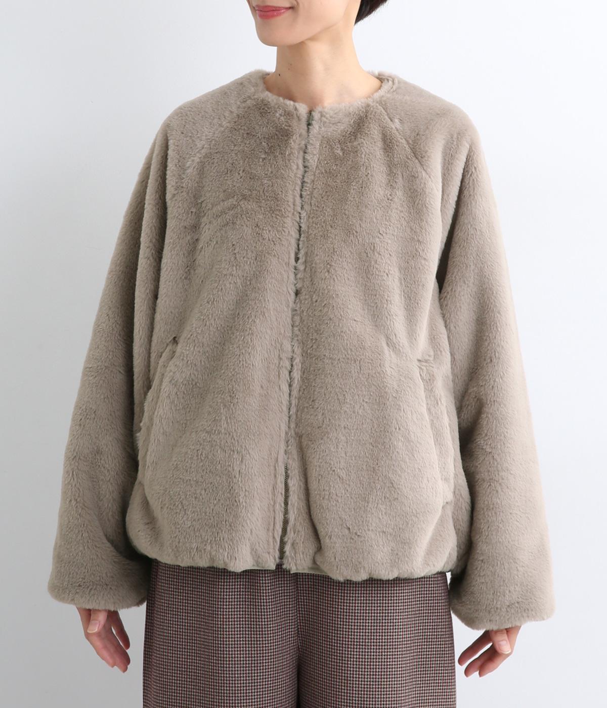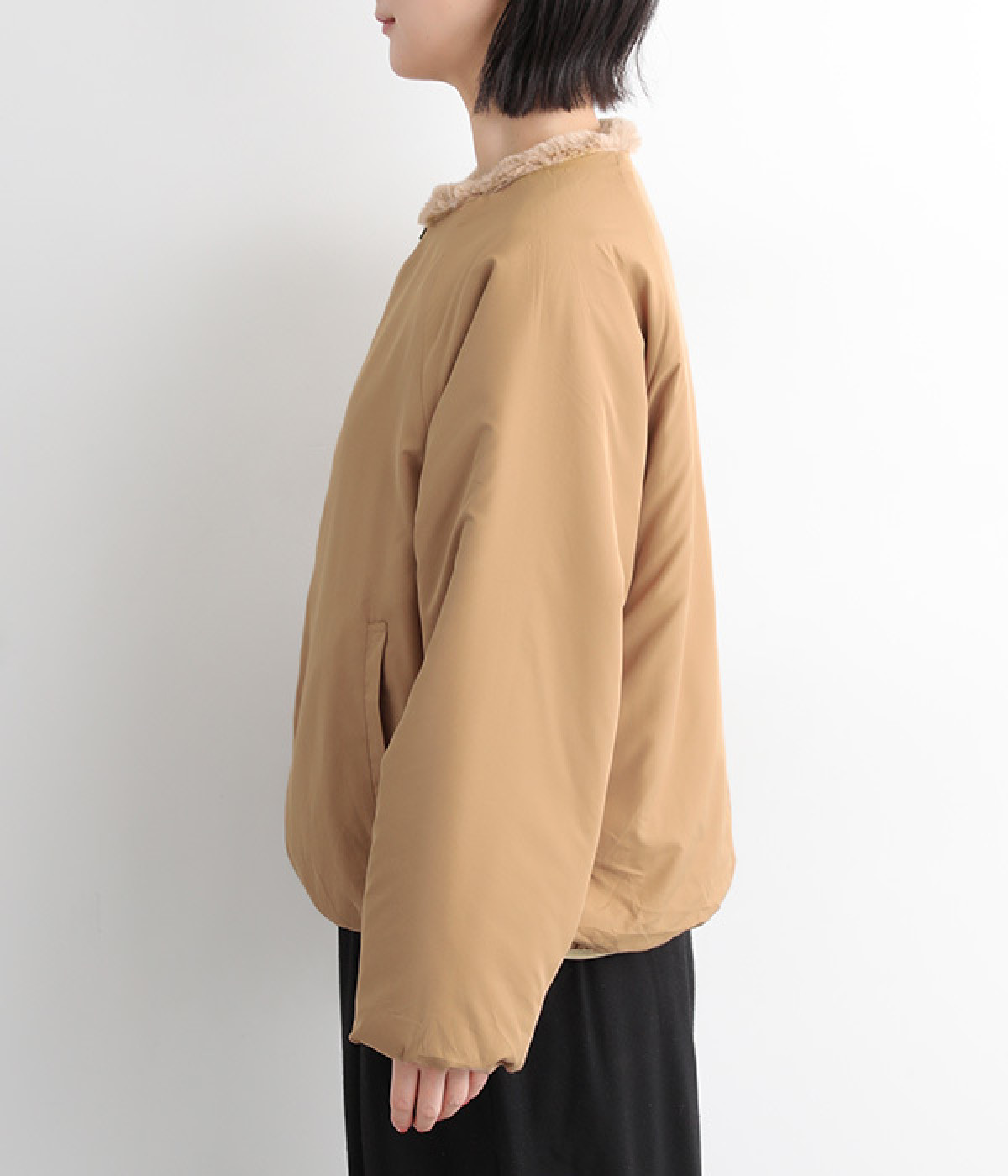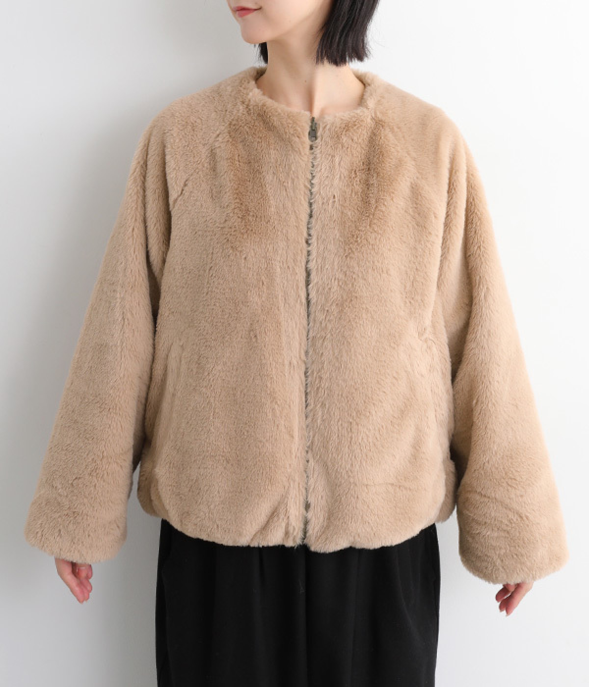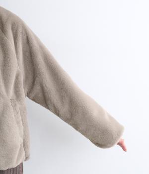 あたたかみのあるファー素材と、大人らしいフラットな生地を気分に合わせてたのしめるリバーシブル仕様のブルゾン。さらりとした生地面を表にして着用するとネックからファーが覗きます。どちらの面にも便利なポケットをつけました。