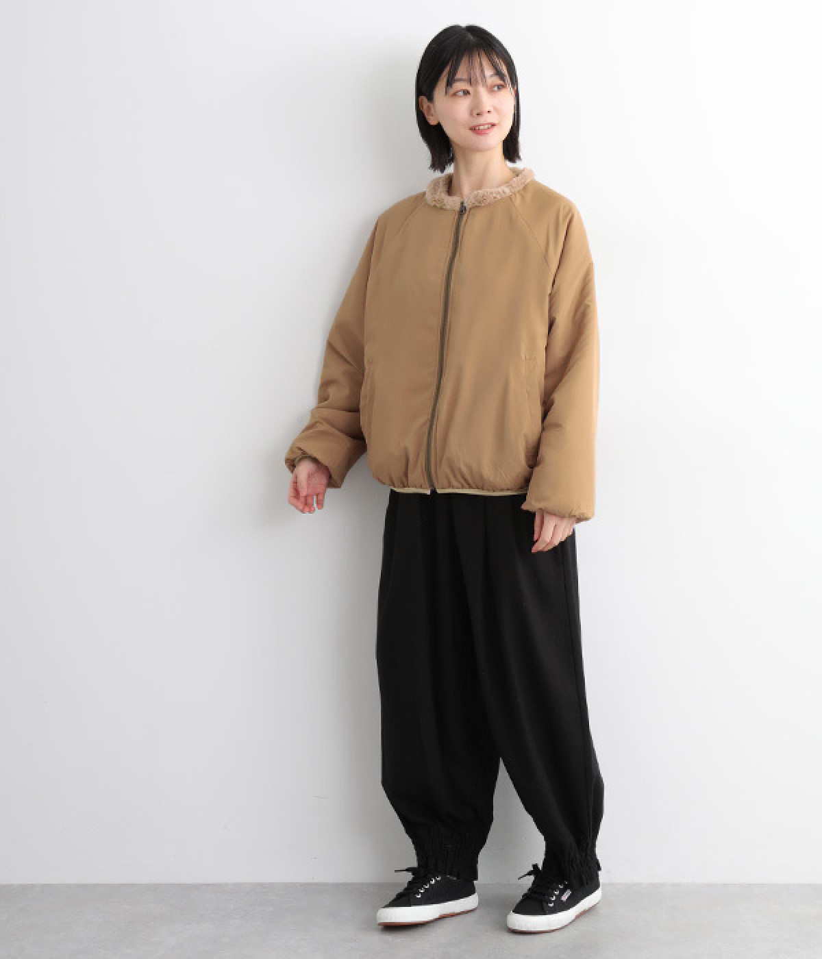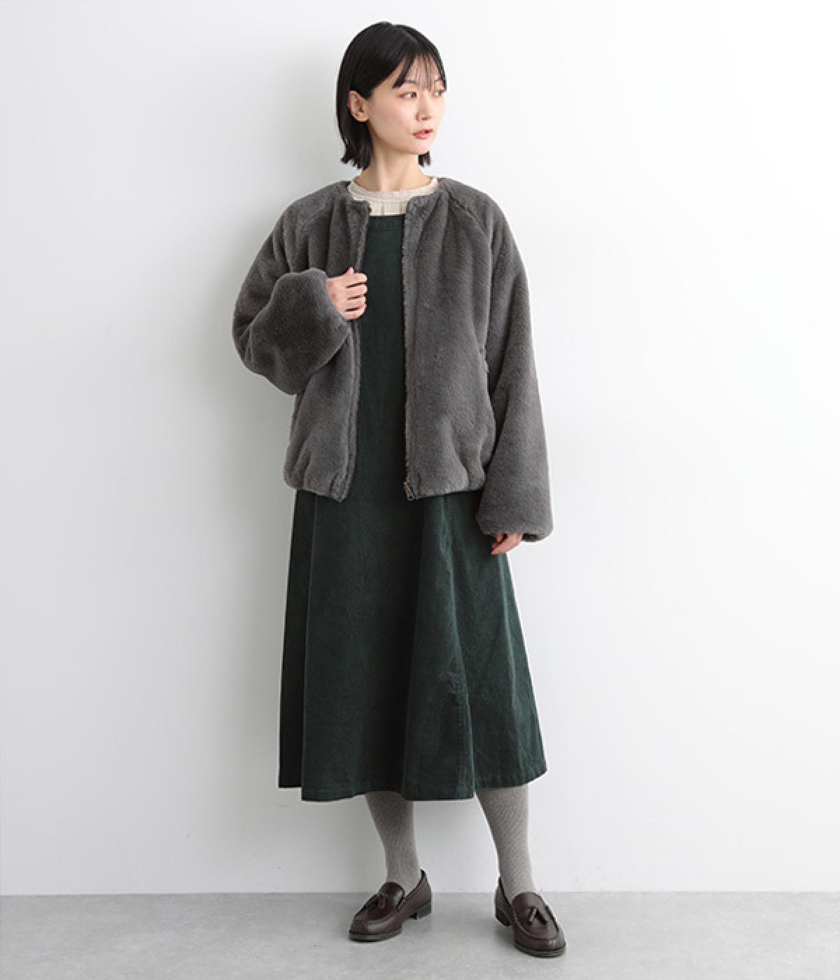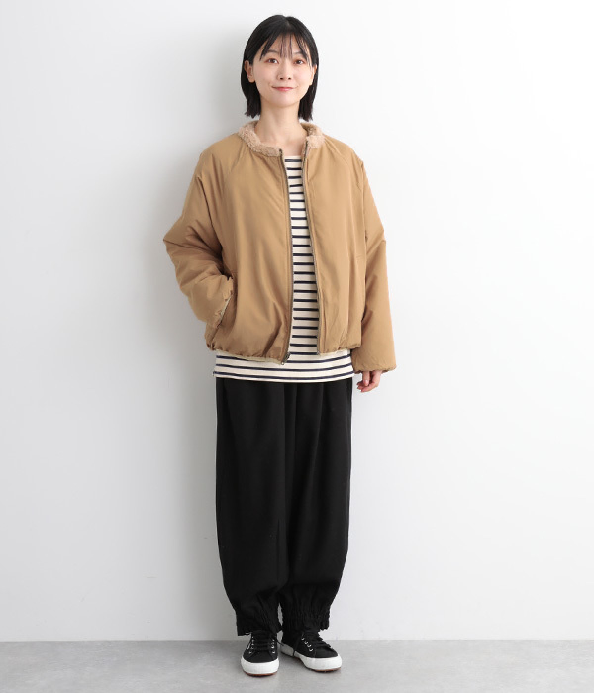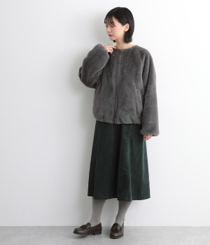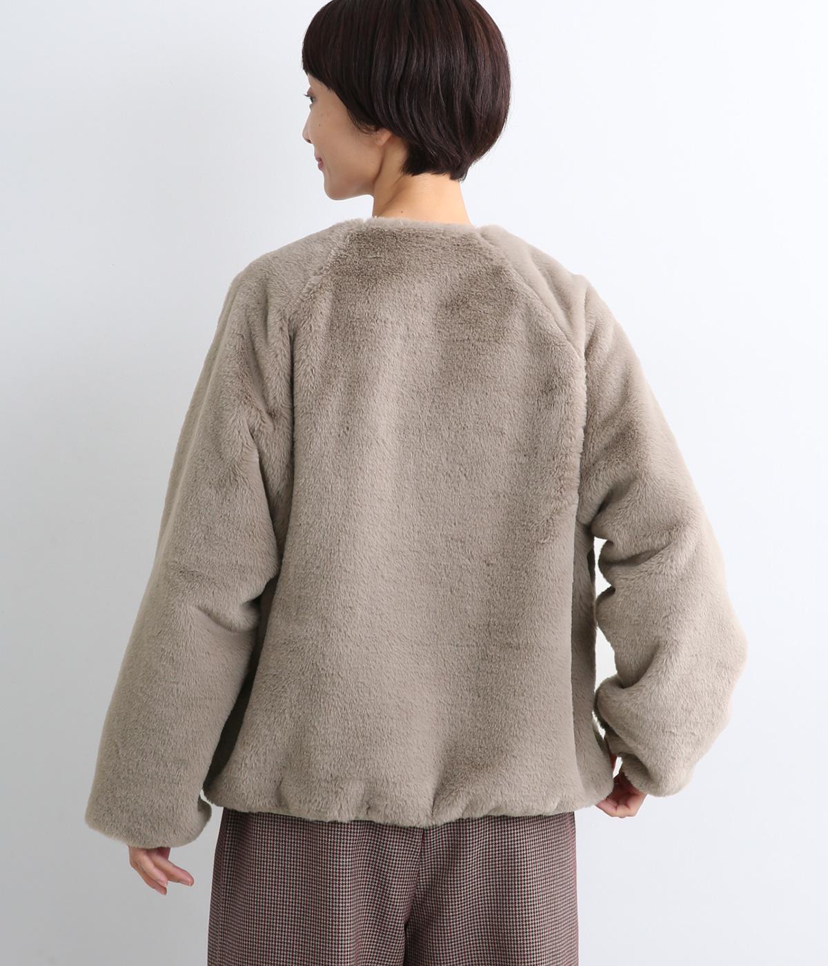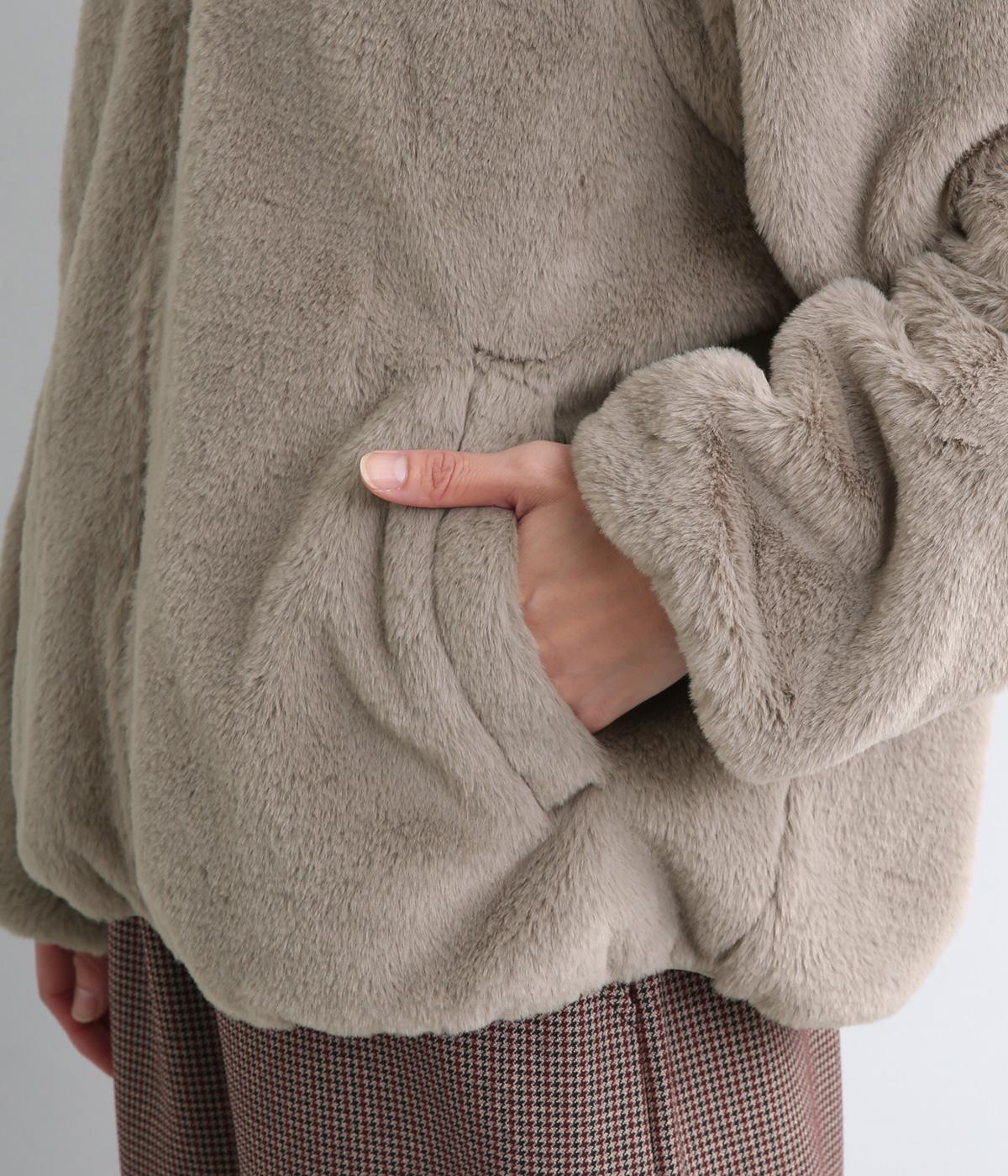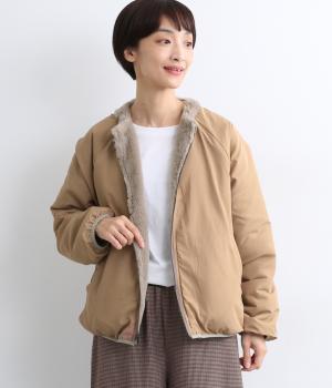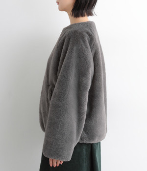 あたたかみのあるファー素材と、大人らしいフラットな生地を気分に合わせてたのしめるリバーシブル仕様のブルゾン。さらりとした生地面を表にして着用するとネックからファーが覗きます。どちらの面にも便利なポケットをつけました。